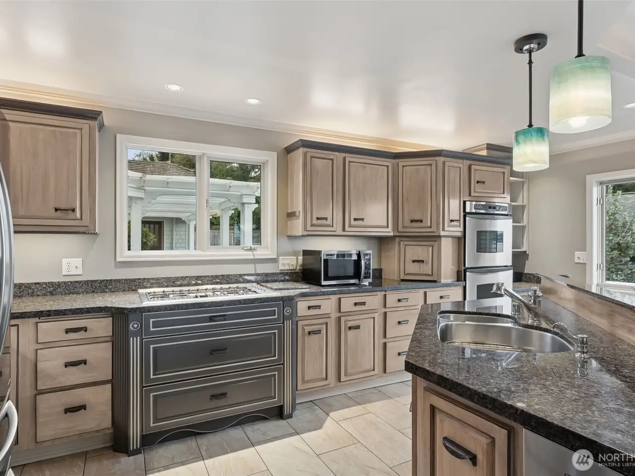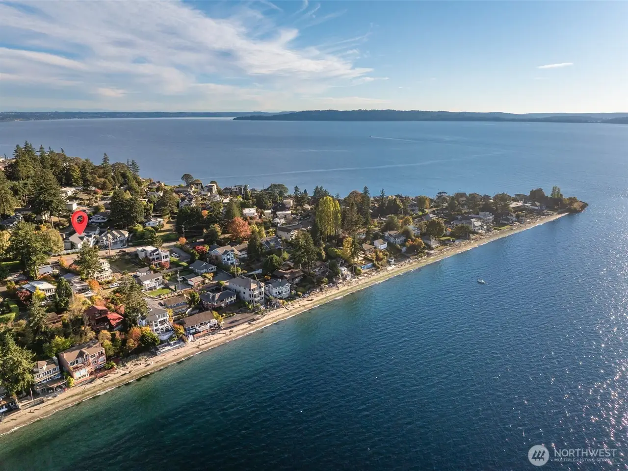 Set just off Maplewild Ave, this Three Tree Point home offers breathtaking views of Puget Sound & the Olympic Mountains. A perfect blend of traditional architecture & modern design, home features beautifully updated kitchen & baths, a huge living room ideal for entertaining, tall ceilings & a big statement fireplace. Enjoy stunning views from every west-facing room. Primary suite has a full bath, walk-in closet, & French doors that open to a private patio w/ views. Loft/ bonus room. Lower level: family room wired for surround, shop/ tool area, large laundry room w/ folding station, ample storage, & half bath. Generac Generator. Fully fenced, well-manicured yard. Detached 3-car garage w/ separate garden room & half bath. Welcome home!