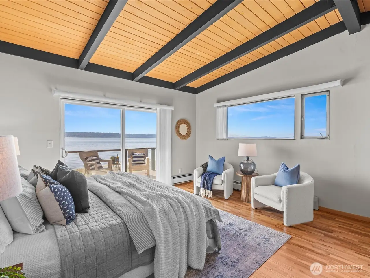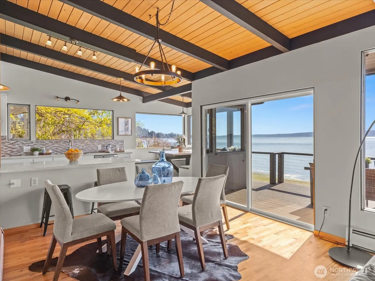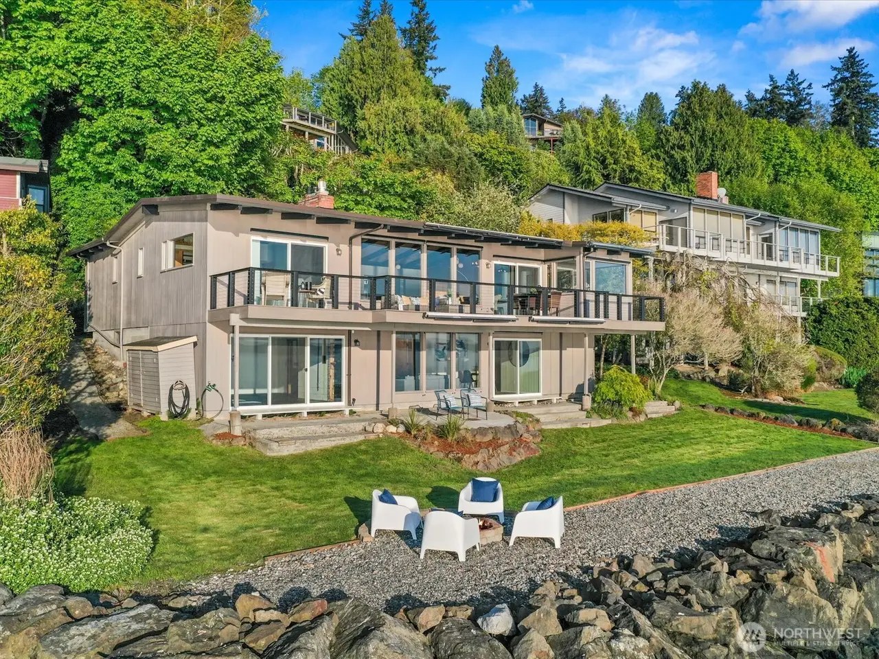 Tucked away in Seahurst, this waterfront haven offers over 180 of sweeping Puget Sound views and rare privacy on a coveted point. Unlike many homes in this area, you can drive up to your front door - no tram required. The beautifully updated kitchen features high-end appliances--double ovens, gas stove, built-in microwave--and cozy in-kitchen seating to enjoy sunrise with your coffee. Upstairs glows with refinished Red Oak floors and fresh paint, while the primary bath includes a heated mirror in the shower. Entertain on the main-level deck with front-row seats to orcas and seals. There's room for up to five vehicles, plus generator wiring and an outdoor shower--pure Northwest coastal luxury. 4th bedroom downstairs is non-conforming.