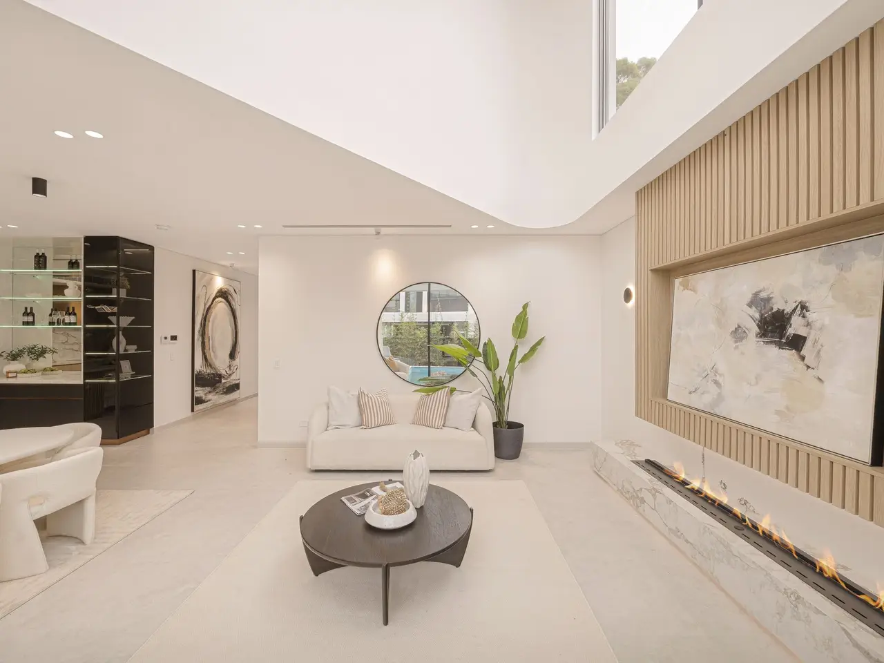 Fusing Scandinavian elegance with architectural precision, this bespoke residence promises a lifestyle of luxury, space and effortless in/outdoor entertaining. Its curated interiors reveal a sequence of living areas, a gourmet kitchen and expansive glazing that invites natural light across both levels. Set on a quiet street just 1km from Burwood Station and Burwood Plaza, the home is surrounded by elite schools, lush parklands and vibrant dining options. - Architecturally designed & custom built with high-end finishes throughout - A custom fireplace warms the expansive lounge/dining space that flows seamlessly outdoors - Expansive covered alfresco with a built-in BBQ overlooks the resort-style swimming pool - Fluted and marble kitchen, high-end integrated appliances, and a walk-in pantry, internal laundry - Five bedrooms with built-ins, four ensuites, master boasts a dual ensuite, freestanding tub and a walk-in wardrobe - Designer bathrooms with floor-to-ceiling tiles, bespoke luxury fittings and frameless glass - Three bedrooms feature built-in vanity desk storage and mirrors, ducted air-conditioning throughout - Interiors reveal a Scandinavian aesthetic with timbers, skylights and neutral hues throughout - Architectural façade framed by a landscaped garden and striking glass inclusions - Double automatic garage offers internal access plus driveway parking - Located within 1km of Burwood Station, elite schools and Burwood Plaza