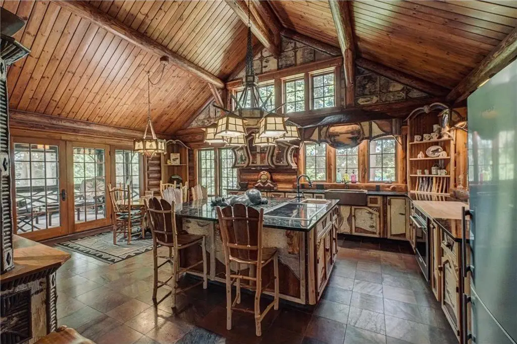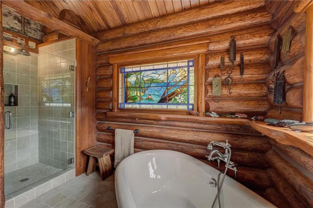 Adirondack-style log estate on a private peninsula with nearly 2,300 ft of frontage on 200-acre Buffalo Lake, a quiet lake in NW Wisconsin surrounded by the Chequamegon Forest. Inspired by the historic Great Camps, this 3-4BR/3.5BA retreat blends rustic elegance with exceptional craftsmanship-hand-peeled logs, birch bark accents, and custom natural finishes throughout. Designed with a dramatic great room, en-suite bedrooms, lakeside screen porch, and panoramic views that bring the outdoors in. The 16-acre lot offers sunset views, rare privacy, and a gentle slope to sandy, swimmable frontage. Wander the perennial landscape and unwind at the gazebo on the point. Oversized 2-car garage includes finished bonus space and bath-ideal for studio, office, or hobby use. A two-level shed offers generous storage for gear, toys, or workshop needs. A distinctive legacy property blending timeless design and understated luxury in a truly serene Northwoods setting.