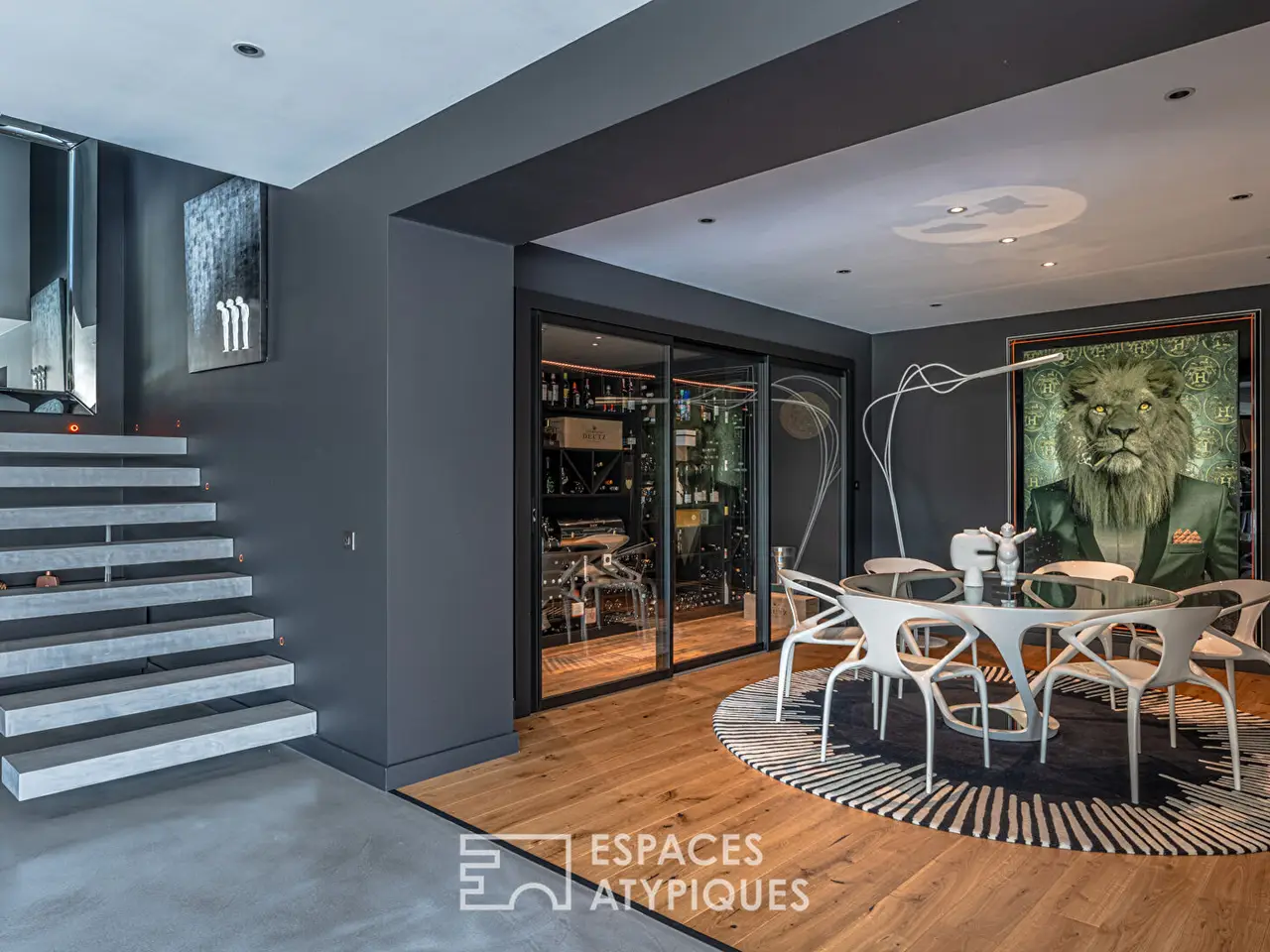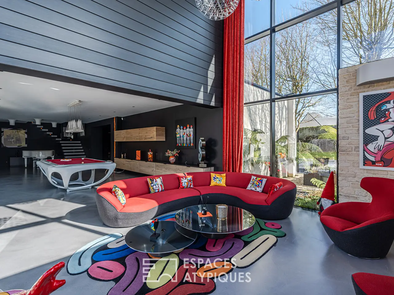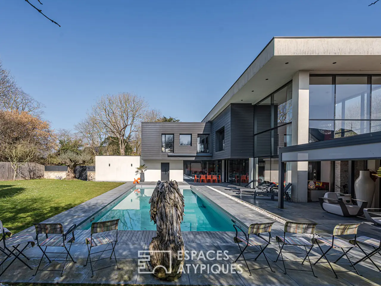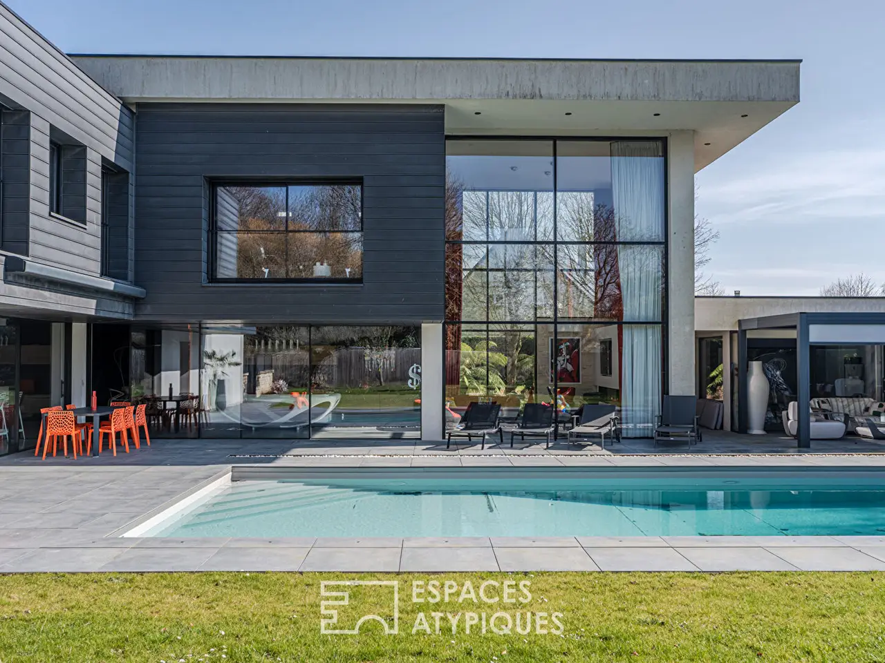 It is less than 10 minutes from Caen, on a wooded and landscaped plot of 1444 sqm that this superb Californian villa of 310 sqm built in 2016 is located. A beautiful entrance with storage, opens onto a sumptuous and bright living room of more than 100 sqm, with a designer fireplace, a beautiful high ceiling and large matte black bay windows. In its extension opens a fully equipped and functional kitchen with a central island and an exceptional view of the south-facing swimming pool. Also on the ground floor, a dining room, a superb closed wine cellar as well as a 27 sqm cinema room, A beautiful polished concrete staircase leads us to three beautiful bedrooms, one of which has its dressing room, its bathroom and a view of the swimming pool. A beautiful bathroom, an office space with beautiful storage cupboards complete this level. In the extension, a studio with its shower room and toilet. This exceptional place also offers two garages that can accommodate three vehicles and a laundry room. Its exceptional volumes, daily brightness, a beautiful ceiling height, its 5 X 13 swimming pool and its quiet grounds make this property a unique and magical place with its added Japanese space. Photos and complete file on certified request. ENERGY CLASS: B / CLIMATE CLASS: C Estimated average amount of annual energy expenditure for standard use, established from energy prices on January 1, 2024: EUR1,431. Information on the risks to which this property is exposed is available on the Georisques website: www.georisques.gouv.fr Cherryl Tirapu 06.08.30.44.38, commercial agent EI - RSAC 524 684 859 CaenREF. 9936Additional information* 7 rooms* 4 bedrooms* 1 bathroom* 2 shower rooms* Floor : 1* 1 floor in the building* Outdoor space : 1444 SQM* Property tax : 2 447 €Energy Performance CertificatePrimary energy consumptionb : 79 kWh/m2.yearHigh performance housing*A*79kWh/m2.year14*kg CO2/m2.yearB*C*D*E*F*GExtremely poor housing performance* Of which greenhouse gas emissionsc : 14 kg CO2/m2.yearLow CO2 emissions*A*B*14kg CO2/m2.yearC*D*E*F*GVery high CO2 emissionsAgency feesThe fees include VAT and are payable by the vendorMediatorMediation Franchise-Consommateurswww.mediation-franchise.com29 Boulevard de Courcelles 75008 ParisInformation on the risks to which this property is exposed is available on the Geohazards website : www.georisques.gouv.fr