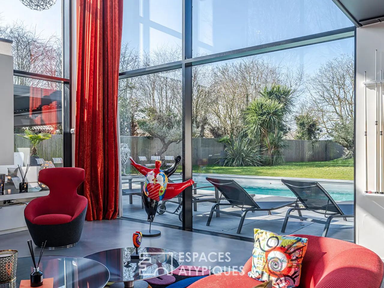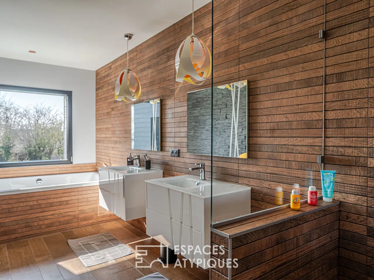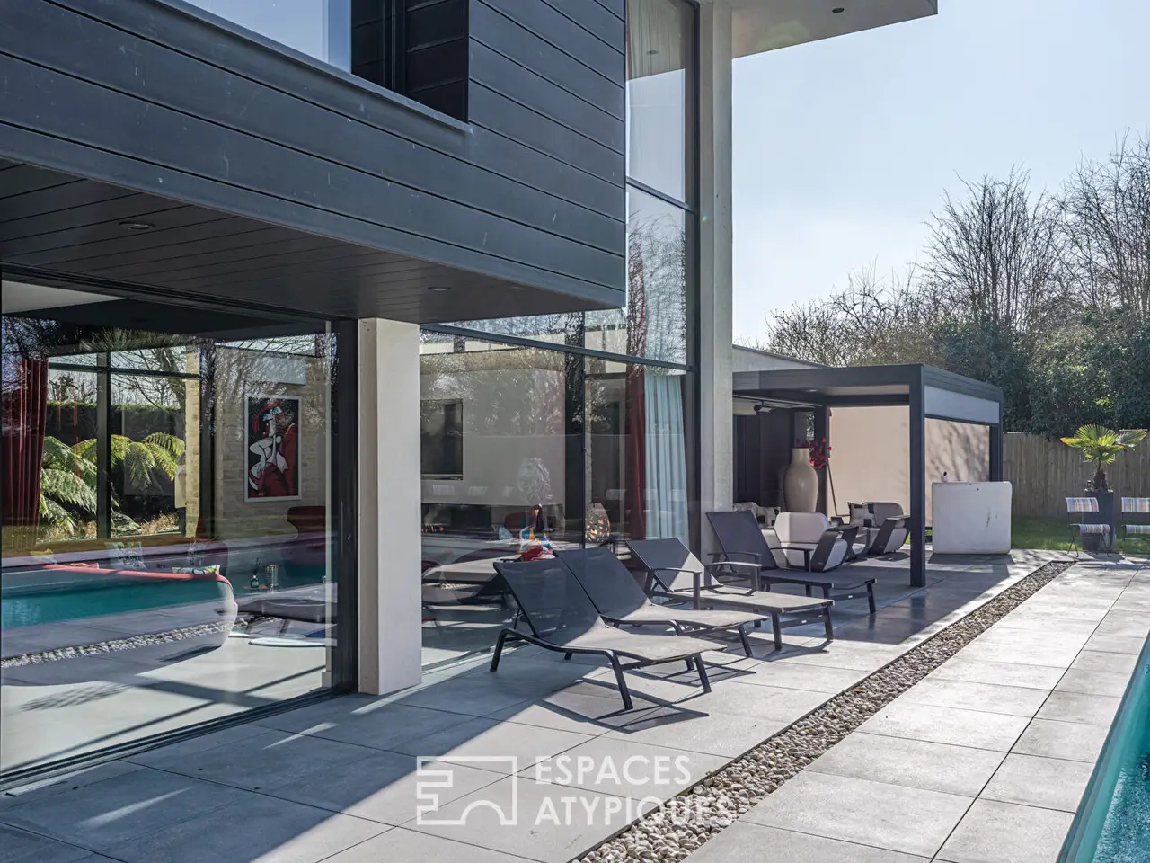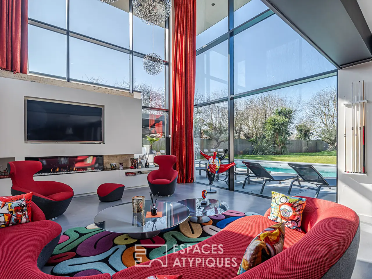 It is less than 10 minutes from Caen, on a wooded and landscaped plot of 1444 sqm that this superb Californian villa of 310 sqm built in 2016 is located. A beautiful entrance with storage, opens onto a sumptuous and bright living room of more than 100 sqm, with a designer fireplace, a beautiful high ceiling and large matte black bay windows. In its extension opens a fully equipped and functional kitchen with a central island and an exceptional view of the south-facing swimming pool. Also on the ground floor, a dining room, a superb closed wine cellar as well as a 27 sqm cinema room, A beautiful polished concrete staircase leads us to three beautiful bedrooms, one of which has its dressing room, its bathroom and a view of the swimming pool. A beautiful bathroom, an office space with beautiful storage cupboards complete this level. In the extension, a studio with its shower room and toilet. This exceptional place also offers two garages that can accommodate three vehicles and a laundry room. Its exceptional volumes, daily brightness, a beautiful ceiling height, its 5 X 13 swimming pool and its quiet grounds make this property a unique and magical place with its added Japanese space. Photos and complete file on certified request. ENERGY CLASS: B / CLIMATE CLASS: C Estimated average amount of annual energy expenditure for standard use, established from energy prices on January 1, 2024: EUR1,431. Information on the risks to which this property is exposed is available on the Georisques website: www.georisques.gouv.fr Cherryl Tirapu 06.08.30.44.38, commercial agent EI - RSAC 524 684 859 CaenREF. 9936Additional information* 7 rooms* 4 bedrooms* 1 bathroom* 2 shower rooms* Floor : 1* 1 floor in the building* Outdoor space : 1444 SQM* Property tax : 2 447 €Energy Performance CertificatePrimary energy consumptionb : 79 kWh/m2.yearHigh performance housing*A*79kWh/m2.year14*kg CO2/m2.yearB*C*D*E*F*GExtremely poor housing performance* Of which greenhouse gas emissionsc : 14 kg CO2/m2.yearLow CO2 emissions*A*B*14kg CO2/m2.yearC*D*E*F*GVery high CO2 emissionsAgency feesThe fees include VAT and are payable by the vendorMediatorMediation Franchise-Consommateurswww.mediation-franchise.com29 Boulevard de Courcelles 75008 ParisInformation on the risks to which this property is exposed is available on the Geohazards website : www.georisques.gouv.fr