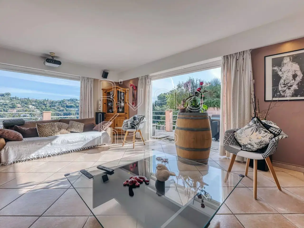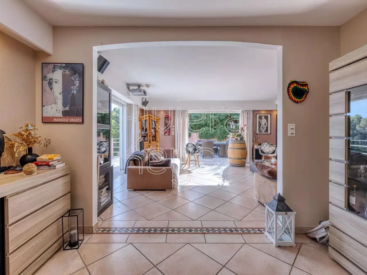 Located in the sought-after Caucours district, this 266 m² Provençal-style villa sits on a beautiful, landscaped 5,607 m² plot, completely private and perfectly sun-exposed. Its peaceful, green surroundings and high-end features make it a rare property.The main villa offers a spacious living/dining area with a semi-open kitchen opening onto a 110 m² terrace. It includes a master suite with dressing room, bathroom with whirlpool bathtub, and private terrace.Upstairs, 2 additional bedrooms, a shower room, and a separate WC complete the sleeping area.For relaxation, the property features two heated pools – one outdoor (11 m x 5 m) and one indoor – as well as a jacuzzi. A pool house with shower and WC complements this wellness area.An independent 2-room apartment completes the estate. It includes a living room with open kitchen, bedroom with dressing, and a shower room with WC.Additional amenities include a large garage, numerous parking spaces, central vacuum system, and solar panels.