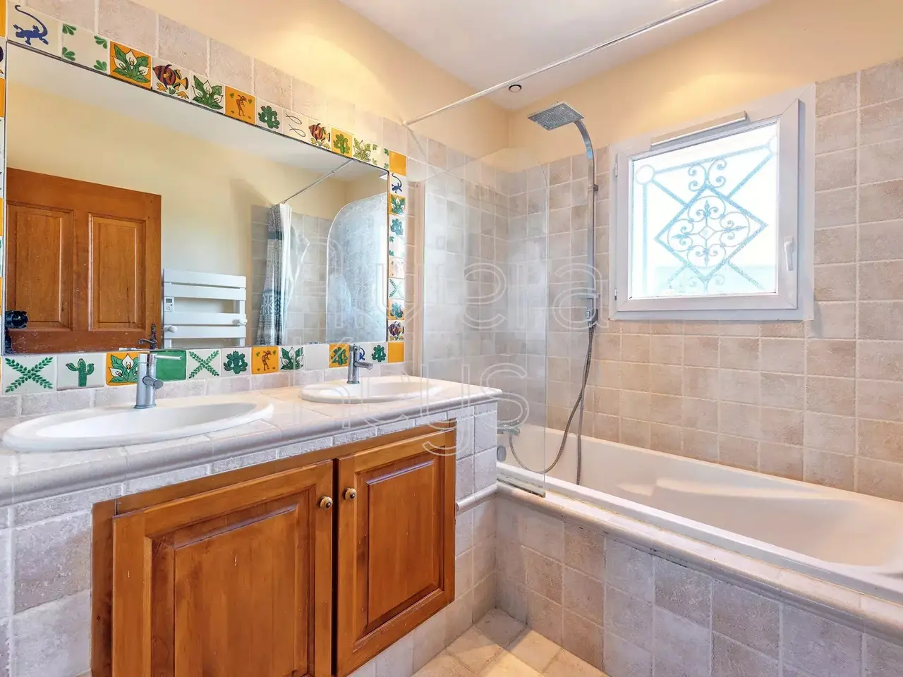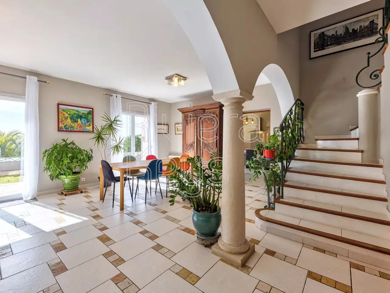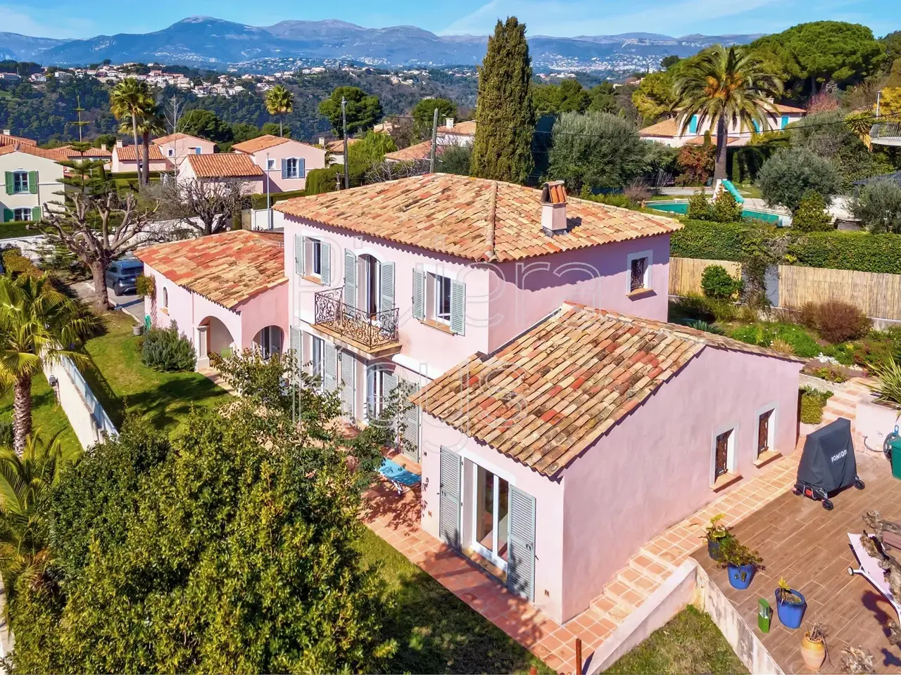 Located on the heights of Cagnes-sur-Mer, in the sought-after area of Les Colettes, this spacious villa offers breathtaking sea views. Nestled in a peaceful residential setting, it was built in 2005 and features: On the ground floor: a dining room with a living area, a bedroom, an office, a toilet, a bathroom with toilet, a pantry, a hall, a kitchen, a terrace, and a double garage. Upstairs: 3 bedrooms, a games room, a bathroom, a separate toilet, and a balcony. The property sits on a 1,020 m² plot with a landscaped garden and a jacuzzi.