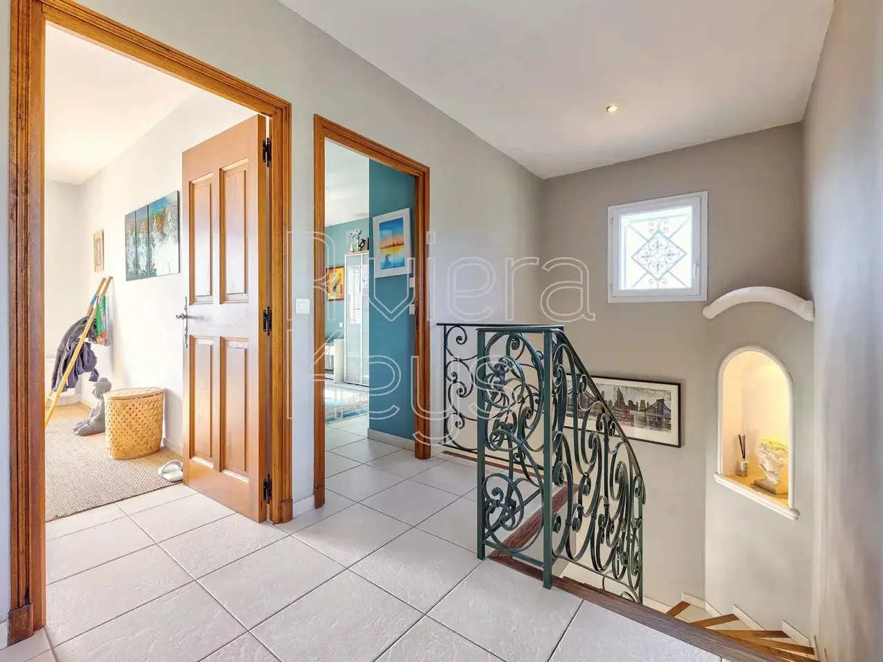 Located on the heights of Cagnes-sur-Mer, in the sought-after area of Les Colettes, this spacious villa offers breathtaking sea views. Nestled in a peaceful residential setting, it was built in 2005 and features: On the ground floor: a dining room with a living area, a bedroom, an office, a toilet, a bathroom with toilet, a pantry, a hall, a kitchen, a terrace, and a double garage. Upstairs: 3 bedrooms, a games room, a bathroom, a separate toilet, and a balcony. The property sits on a 1,020 m² plot with a landscaped garden and a jacuzzi.