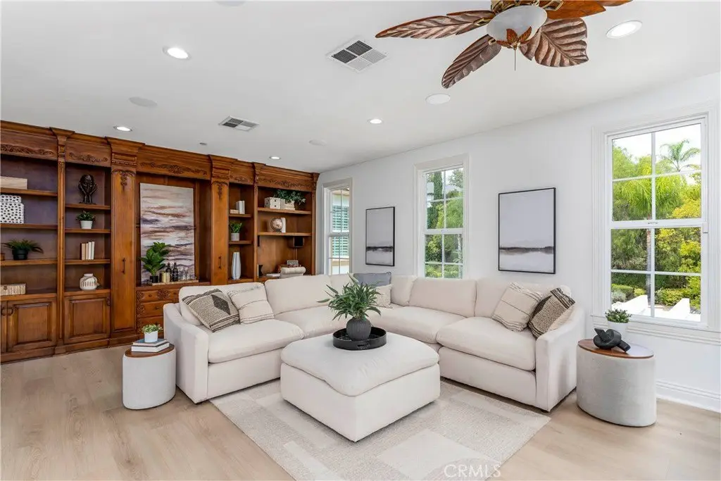Welcome to Mont Calabasas, one of the most exclusive gated communities in Calabasas. This elegant estate greets you with a private courtyard featuring a tranquil water fountain and a pergola-covered sitting area, setting the tone for refined living. Inside, a grand foyer with soaring ceilings and a dramatic circular staircase bathed in natural light makes an immediate impression. The home has been updated with new flooring and fresh interior paint throughout. Formal living and dining rooms, each with a fireplace, provide timeless settings for entertaining. A spacious family room with a fireplace opens seamlessly to the chef’s kitchen, appointed with a center island, granite counters, new double ovens, microwave, wine refrigerator, and a built-in 48-inch stainless steel refrigerator. A breakfast nook and island seating complete the space. The nearly half-acre grounds are a private resort, offering a sparkling pool, spa, water features, multiple outdoor seating areas, and a built-in BBQ for alfresco dining. Designed for both comfort and function, the floor plan includes one bedroom and a dedicated office downstairs, plus four bedrooms and an additional upstairs family room. The luxurious primary suite is a private retreat with a sitting area, fitness room, spa-like bath with dual vanities, oversized walk-in closets, and balconies overlooking the park-like grounds. Additional highlights include a whole-house water treatment system and thoughtful upgrades throughout. This residence blends timeless elegance with modern amenities, delivering the ultimate Calabasas lifestyle.