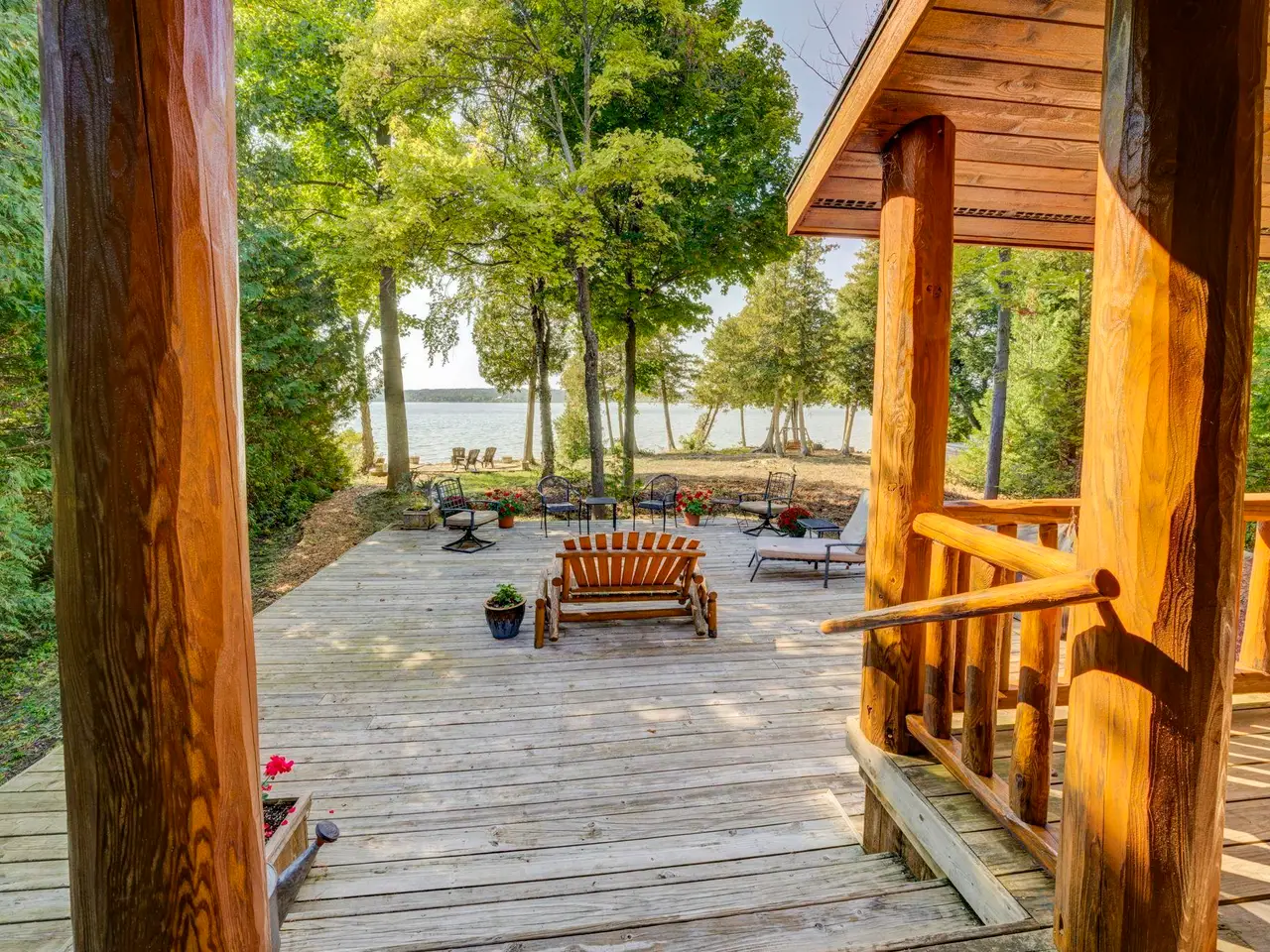 Discover a hidden treasure on South Lake Leelanau, featuring a contemporary log cottage with stunning views of 150 feet of secluded waterfront. This beautifully designed getaway offers a serene atmosphere that captivates you every moment. Nestled at the end of a private drive shared with just two other homes, the tranquility here is remarkable. If you have been seeking a captivating location at the center of all the enjoyable experiences that Leelanau County has to offer, you must visit this property. Experience the ambiance that speaks directly to your heart. Showings will commence on Saturday, September 27. Don't miss out on this unique opportunity.