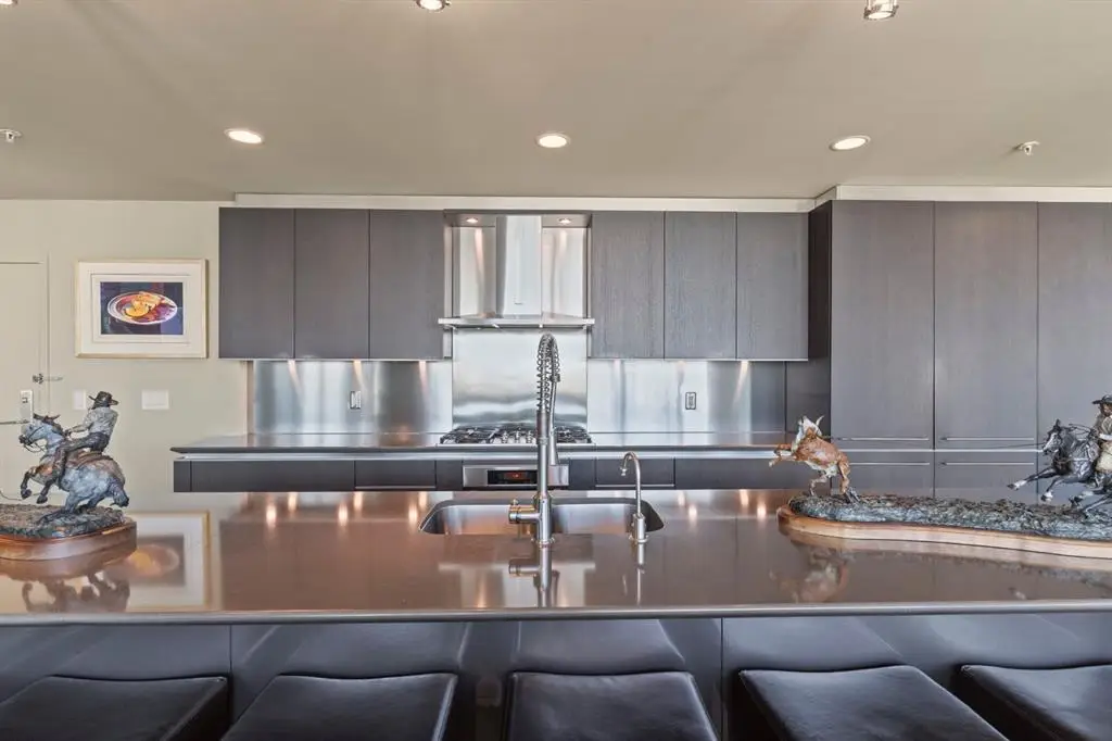 Experience luxury living in this MASSIVE residence in the highly sought after Arriva building. Enjoy complete exclusivity with your own private high-speed elevator. Floor-to-ceiling windows draw in natural light and provide panoramic views of the city and Bow river. This executive home with a sprawling floor plan makes it ideal for entertaining and hosting gatherings. The state-of-the- art kitchen features a full Miele luxury appliance package, and an expansive island that seamlessly opens to the dining room with direct access to one of three balconies where you can take in the iconic views of downtown. Adjacent to the kitchen is an intimate family room with built in cabinetry a warm fireplace and another private balcony. On the opposite side of the kitchen and dining is generous living room providing ample space for gathering and more spectacular views! A private office with built in storage and a powder room are tucked in and away. The primary is a true sanctuary with unmatched views, a balcony overlooking the serene river, an expansive walk-in closet with built ins. This is complete with a spa inspired 5PC ensuite and access to your own home gym, or space for a private dressing room or yoga space. The secondary bedroom has a custom murphy bed, walk in closet, and its own 4PC ensuite providing a private retreat for family or guests. Experience this perfect blend of luxury and privacy. The Arriva building offers 24-hour security and concierge services, two guest suites, a rooftop garden, an owner’s lounge, central A/C, and secure access. Exceptional executive living located in the vibrant Beltline area, steps from Stampede grounds, the new rink, river pathways, restaurants, cafés, central library and LRT access. View the virtual tour or schedule your private showing today!