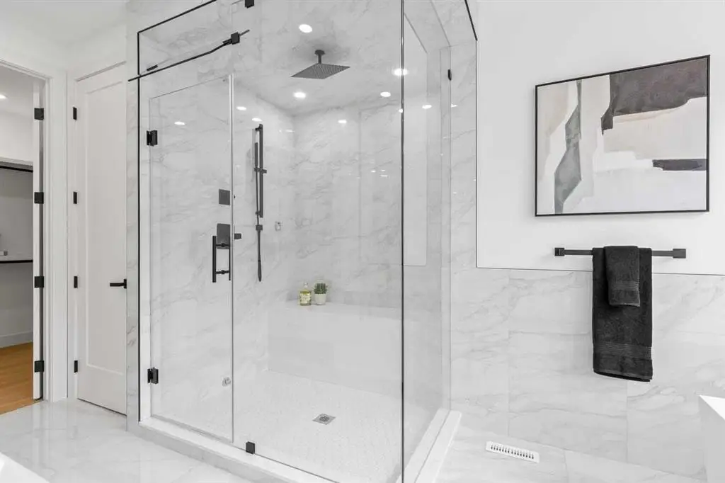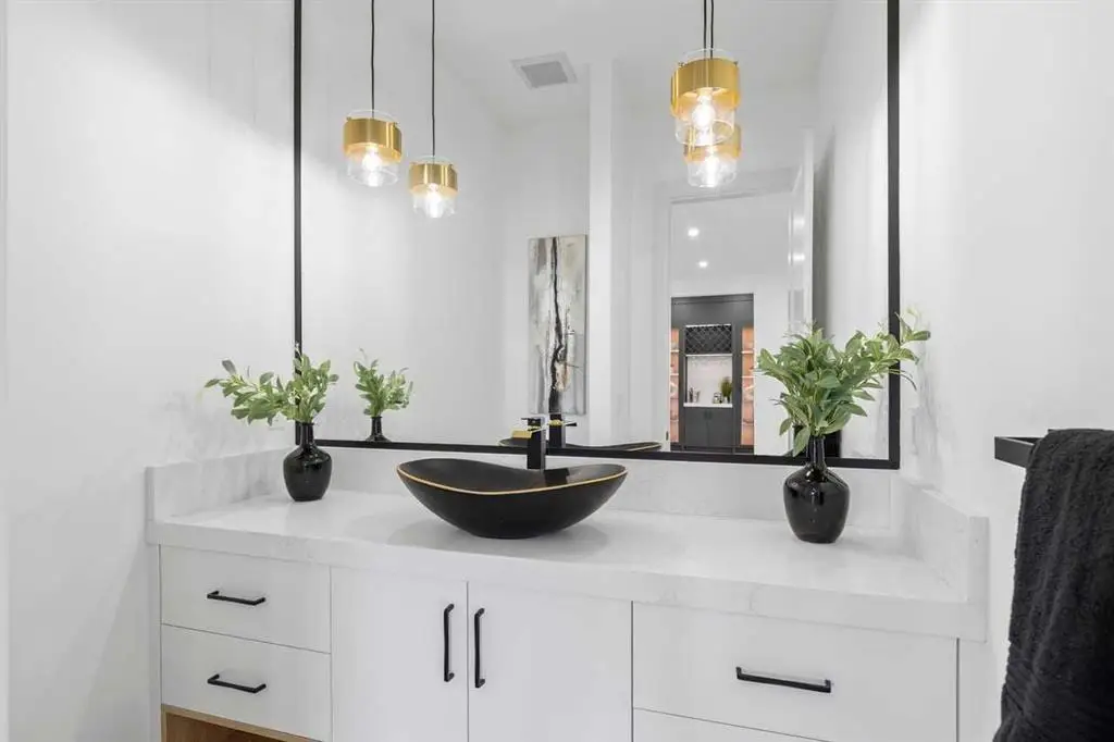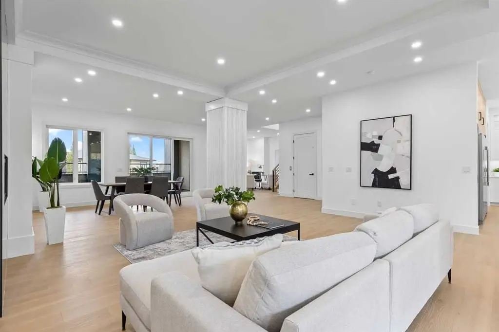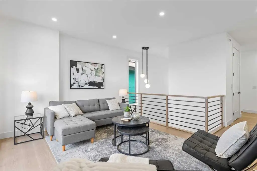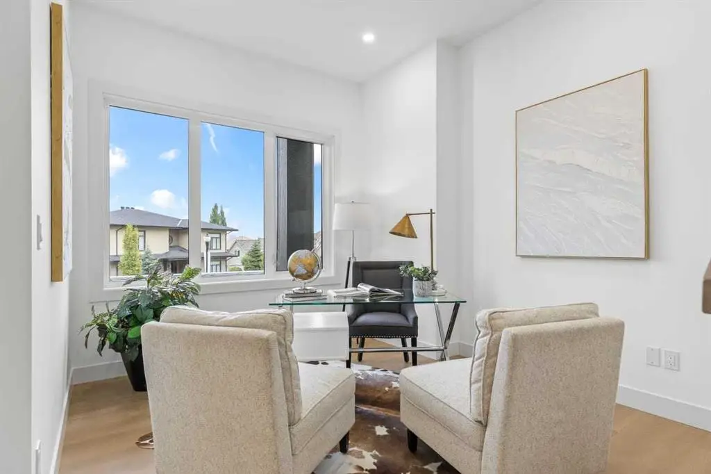 Extraordinary luxury residence in prestigious Patterson Heights -The Point- with over 4500 sq ft of living space, where thoughtful design and upscale finishes define every detail. As you enter, you're greeted by a grand entrance, boasting a floor to ceiling custom built closet. To your right is a beautifully appointed mudroom featuring a walk-in closet and impressive floor to ceiling wall unit, with direct access to the oversized double garage that's fully equipped with EV charging outlets, gas rough in for heater, hot and cold water taps. A full bathroom featuring quartz countertops and a floor-to-ceiling glass shower. Soaring 10 ft ceilings and wide vinyl plank flooring flow throughout, creating a seamless, elegant feel. The cozy living room is enhanced by a modern wall unit and ambient LED lighting, while the custom bar area complete with bar fridge, is perfect for entertaining. A private bright gym space with recessed lighting, sleek floating shelving and plenty of room for fitness equipment. The open riser staircase, paired with a PRIVATE ELEVATOR for ultimate convenience, leads to a show-stopping second floor. A light-filled home office overlooks a large window, and a modern half-bath. The stylish dining area is anchored by a built-in LED-lit beautiful wall unit, the glass sliding doors provide access to a balcony with breathtaking views of downtown Calgary. The coffered ceiling family room stuns with an art-block feature wall and gas fireplace. The sliding glass door gives access to a fully finished, landscaped backyard that backs onto serene green space, where wildlife sightings are frequent and peaceful. The kitchen is a true centerpiece with an elegant quartz waterfall island and hidden cabinetry, two-tone modern cabinets, high-end stainless appliances, and a fully equipped spice kitchen for hosting large gatherings. A modern kitchen nook with an exquisite light fixture completes this level. The top floor is an oasis of luxury, starting with a grand primary suite behind French doors. Enjoy a private balcony with views of the green space, a juice bar, in-floor heating in the en-suite, and a spa-style bath featuring a freestanding tub, floor-to-ceiling glass steam shower with rainfall head and granite seating. The second and third bedrooms share a beautiful Jack & Jill bathroom with quartz counters, and a fourth bedroom along with its own full bath and walk-in closet. Don't miss the thoughtfully finished laundry room. The bonus room is a standout, with downtown views, and another wall unit. This level boasts 9 ft ceilings, continuing the home’s spacious and airy feel. ADDITIONAL UPGRADES: Basement rough in under slab heating, 75 gallon hot water tank, 2 high-efficiency furnaces, 2 central A/C units, extensive built-ins. The exterior is fully landscaped, composite rear deck with a gas line.This is a true masterpiece offering luxury, comfort, and functionality across all three levels complete with elevator access. A rare offering in an exceptional location.