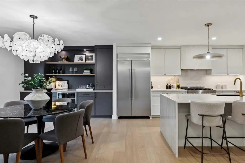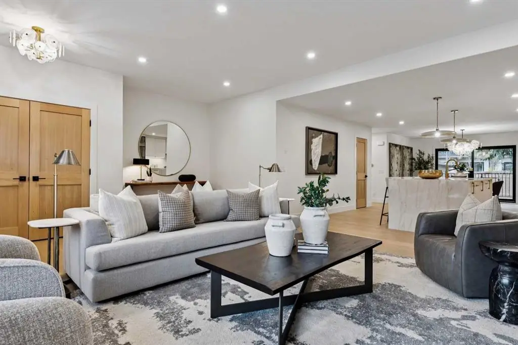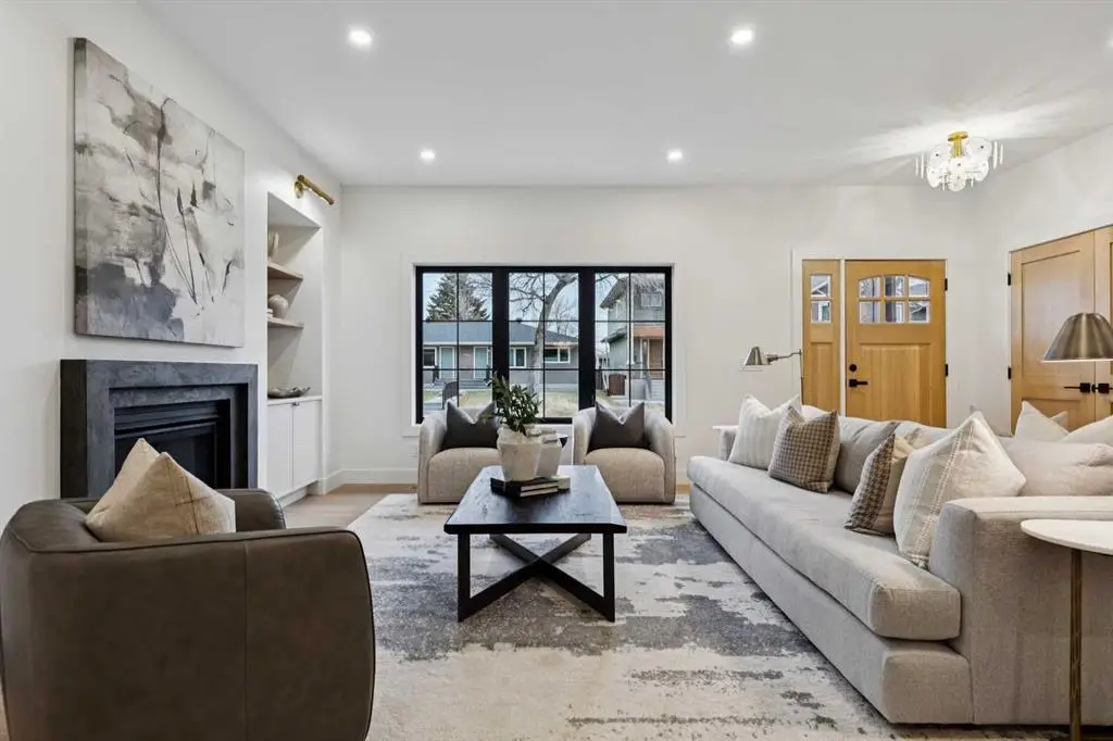 Welcome to 1013 31 Avenue NW, a rare newly renovated 1,800 sq. ft. bungalow perfectly positioned in the heart of Cambrian Heights. One of Calgary’s most sought-after inner-city communities. Just steps from Confederation Park, this home offers the ideal balance of inner-city convenience and quiet, tree-lined living. From the moment you arrive, the curb appeal is undeniable. A covered composite front porch and a brand-new exterior finished in a timeless combination of board & batten and stucco set the tone for the craftsmanship found throughout. The property also includes a newly built oversized double garage with alley access. Step inside this modern farmhouse bungalow to discover a bright, open floor plan with 9-foot ceilings at the entry, creating an immediate sense of space. The living room features a gas fireplace with custom built-ins, flowing seamlessly into the chef’s kitchen, complete with custom cabinetry, new KitchenAid built-in appliances, and a 10-foot waterfall island. Adjacent to the kitchen is a walk-in pantry, and beyond that, a spacious dining area with a custom bar that opens through 8-foot sliding doors to a south-facing backyard and large entertaining deck. The main floor also includes a beautifully designed main bathroom, a second bedroom that can double as an office, and a mudroom with built-in storage leading to the rear deck and garage. The primary suite is a true retreat - featuring 9-foot ceilings, a large walk-in closet with custom wardrobe cabinetry, and a resort-inspired ensuite with double vanity, heated floors, and a custom rainfall shower. The fully developed lower level continues to impress with a massive rec room with a bar, a beautifully designed laundry room, two additional bedrooms, and a spa like bathroom with a large shower and heated floors. This home has been completely renovated inside and out. Including new electrical, plumbing, HVAC, furnace, and central air conditioning, offering the peace of mind of a brand-new home in a highly established and desirable location.