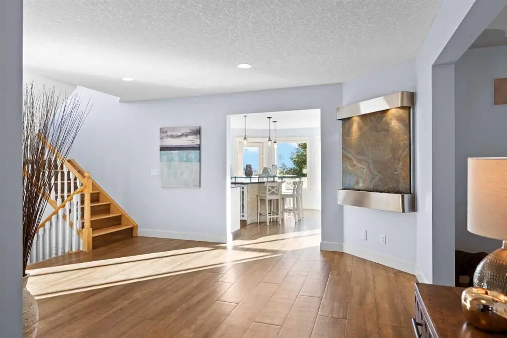 ***OPEN HOUSE - SUNDAY NOVEMBER 2, 1-3PM*** Nestled among the rolling hills of Patterson, this stunning 5-bedroom, 3.5 bath executive home combines elegant design, smart technology, and resort-style amenities—perfect for the modern family. As you enter the grand foyer, you’re greeted by a tranquil spa-inspired water feature, setting the tone for the sophistication that follows. The main living area boasts soaring 17’ ceilings, a cozy gas fireplace, and vinyl plank flooring throughout, creating an airy and inviting atmosphere. The gourmet kitchen is a chef’s dream, featuring granite countertops, a large entertaining island, built-in fridge, and gas range. Step outside to the massive deck, fully updated in 2024, where you can take in sweeping views of Calgary’s skyline. Adding to the functionality of the main floor are a formal dining room, front sitting room/office, and laundry/ mud room area - that leads into the attached oversized double garage. Upstairs, the primary suite offers true luxury—complete with a private balcony, a gorgeous ensuite featuring a Jacuzzi tub, heated floors, double vanity, stand-up shower as well as a generous walk-in closet. Two additional bedrooms, a loft area ideal for a home office, and another full bathroom with heated floors complete the upper floor. The fully finished walkout basement is an entertainer’s dream, featuring a second gas fireplace, two more bedrooms, a full bathroom, and even a kitchen area for hosting epic movie nights or game days with friends and family. The newly built flex/workout room includes rubber flooring and is pre-wired for a hot tub. Step outside to your own backyard paradise—a professionally landscaped oasis designed by an architect, featuring a 16’x32’ heated in-ground pool surrounded by stamped concrete decking, custom lighting controlled by app, and a retractable Elephant Cover for safety and convenience. Enjoy your favorite music indoors and out with the fully integrated sound system across all levels, and relax in the covered outdoor living area with a dual wood/gas fireplace and built-in Weber BBQ. There is also a gas hook up for a fire table. This home is move-in ready with new exterior finishes, solar panels reducing energy costs by approx. $300/month, programmable Gemstone lighting, in-ground irrigation, central A/C, central vac, two furnaces, two hot water tanks, water softener, keyless smart entry on all doors, and a new garage door (2024). Every inch of this home has been thoughtfully curated to deliver comfort, elegance, and entertainment—all with breathtaking views of the Bow River and Calgary’s west side. Move-in ready and built for making memories.