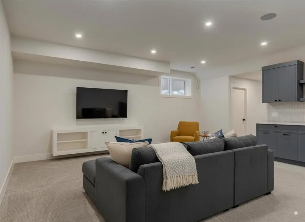 Spectacular custom built home situated on a WIDE 30+ foot lot in the heart of Winston Heights with over 3750 SF of living space. This stunning new build combines thoughtful design, high-end finishes, and a sun-filled south-facing backyard. The open-concept main floor showcases engineered hardwood, a chef-inspired kitchen with curved island and hood fan, striking quartz countertops, designer tile backsplash, 30” commercial gas range plus an additional wall oven with built-in microwave, 65” of refrigeration, a walk-in pantry, and custom locally made cabinetry with undercabinet and toe-kick lighting. The full-width family room is anchored by an inviting gas fireplace, and large windows frame views of the backyard. Upstairs you’ll find three bedrooms—each with a walk-in closet—plus a bright bonus room, convenient laundry with sink, and hardwood throughout. The primary suite is designed for relaxation, featuring a spa-inspired ensuite with heated floors, freestanding tub, oversized shower with bench, large format tiles, and dual vanities. The fully finished basement offers a spacious rec room with wet bar, guest bedroom with walk-in closet, dedicated gym, guest bath, and is roughed-in for hydronic floor heating. The oversized ATTACHED double garage impresses with 14’1” ceilings, insulation (ceiling is spray foamed), drywall, gas heater, and aggregate concrete driveway. Enjoy Calgary’s sunny days in the landscaped backyard featuring lush grass, and a full-width Dura Deck with glass railings. Move-in ready and backed by new home warranty, this home blends luxury, functionality, and peace of mind — walk to The Winston Golf Club, Lina’s Italian Market, Co-op, local school, and so much more. Floor plans and a 3D tour are readily available, providing a glimpse into this stylish home!