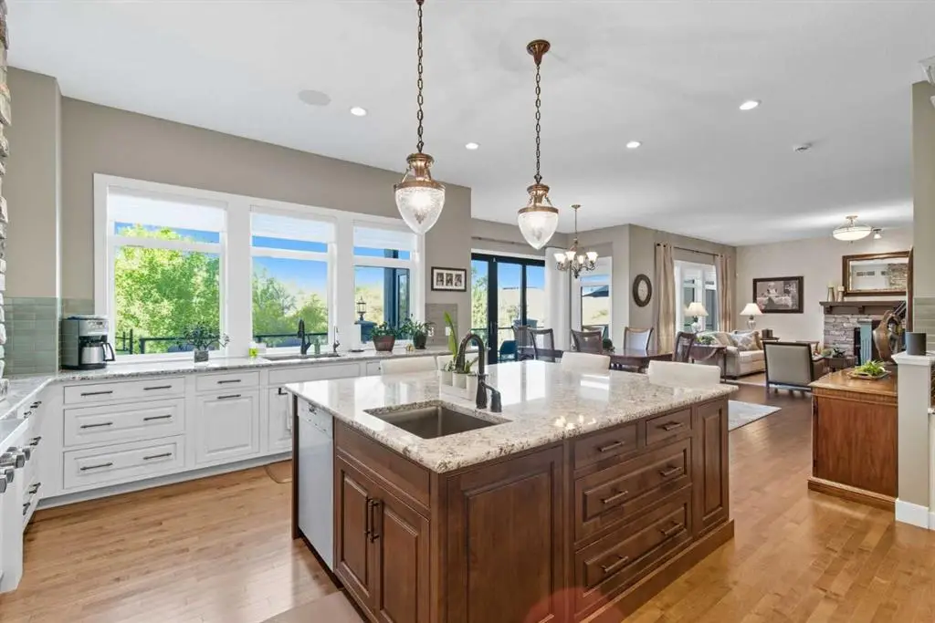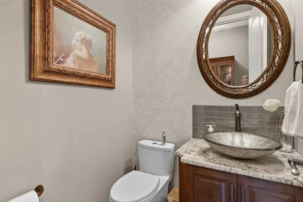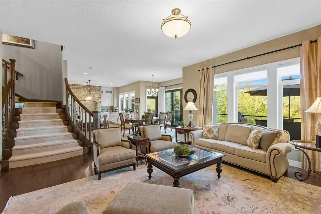 Nestled on one of Calgary’s most prestigious streets, this custom-built masterpiece is the epitome of refined living, where meticulous craftsmanship meets the serenity of nature. Every detail has been thoughtfully executed, from custom built-ins throughout to premium finishes that blend timeless elegance with modern functionality. The main level, graced with soaring 10-foot ceilings, is designed to impress at every turn. Rich hardwood floors guide you past a private office into a chef-inspired kitchen that is both functional and visually striking featuring a 6-burner Wolf range beneath a custom sculpted stone hood, paired seamlessly with a built-in Wolf oven, microwave, warming drawer, and Sub-Zero fridge. The oversized island, complete with its own prep sink, invites culinary creativity and lively gatherings, while a walk-through pantry and thoughtfully designed boot room provide effortless organization. Custom drapes and blinds throughout the entire home enhance the luxurious finishes, framing the expansive park views and allowing for both light control and privacy. The living room, anchored by a cozy fireplace, flows naturally from the kitchen while the full-length main-floor deck extends the home’s entertaining possibilities outdoors. Sonos sound is wired throughout the home and yard ensuring immersive audio in every space. Upstairs, the primary suite is a private sanctuary with its own reading room, offering a serene escape set against stunning park views that evolve with the seasons. The spa-like ensuite features a steam shower, indulgent finishes, and a massive walk-in closet finished with custom built-ins. Two additional bedrooms, a bonus room, separate laundry room and a 4-piece bathroom complete the upper level, providing ample space for family and guests. The fully finished walkout basement is designed for leisure, wellness, and lifestyle. Here you will find an additional bedroom, 4-piece bathroom, and a family room with in-floor heating and a cozy fireplace providing warmth and comfort, while a stunning indoor pool, set within its own beautifully finished room, offers a private oasis for year-round recreation and relaxation. A sophisticated wet bar complements the space, thoughtfully positioned overlooking the beautiful backyard. Walkout access leads to your professionally landscaped yard by Vision Scape, featuring a private hot tub area and seamless access to Fish Creek Park with walking paths, biking trails, cross-country skiing and breathtaking sunsets all just steps from your door. Upgraded water filtration and UV air systems enhance both luxury and wellness. Car enthusiasts and hobbyists will delight in the triple-car garage with in-floor heating, combining convenience with luxury. This is more than a residence, it is an invitation to a lifestyle of unparalleled elegance, privacy, and connection to nature. Every detail has been perfected, every space designed to inspire, and every day feels extraordinary in this extraordinary home.