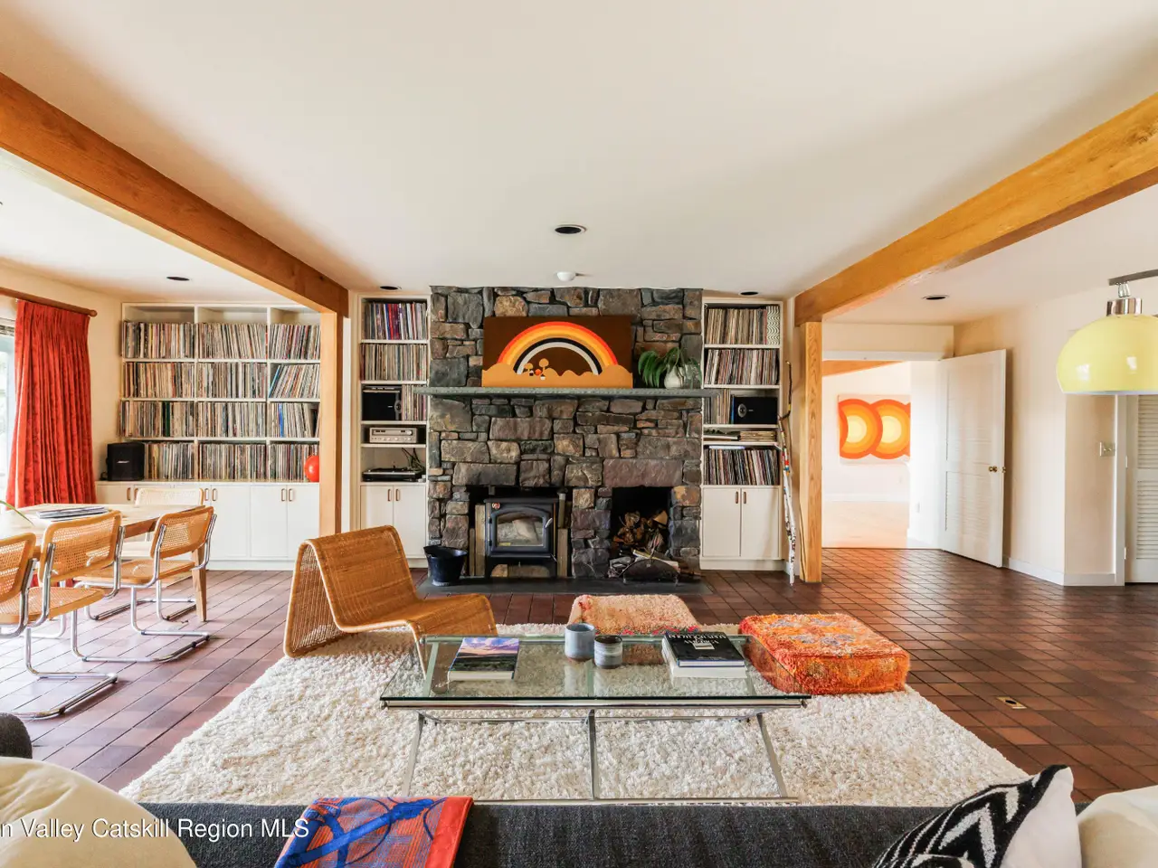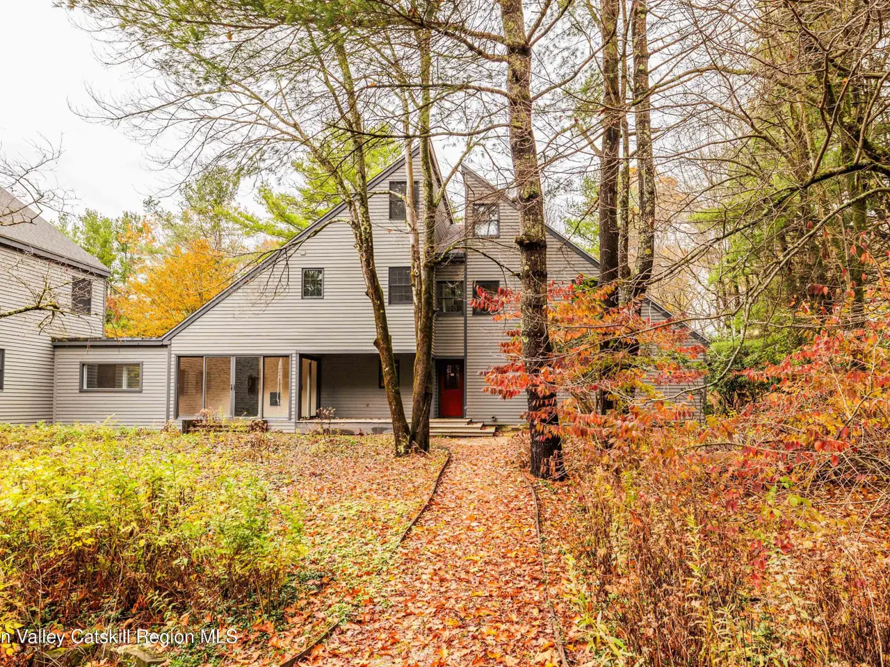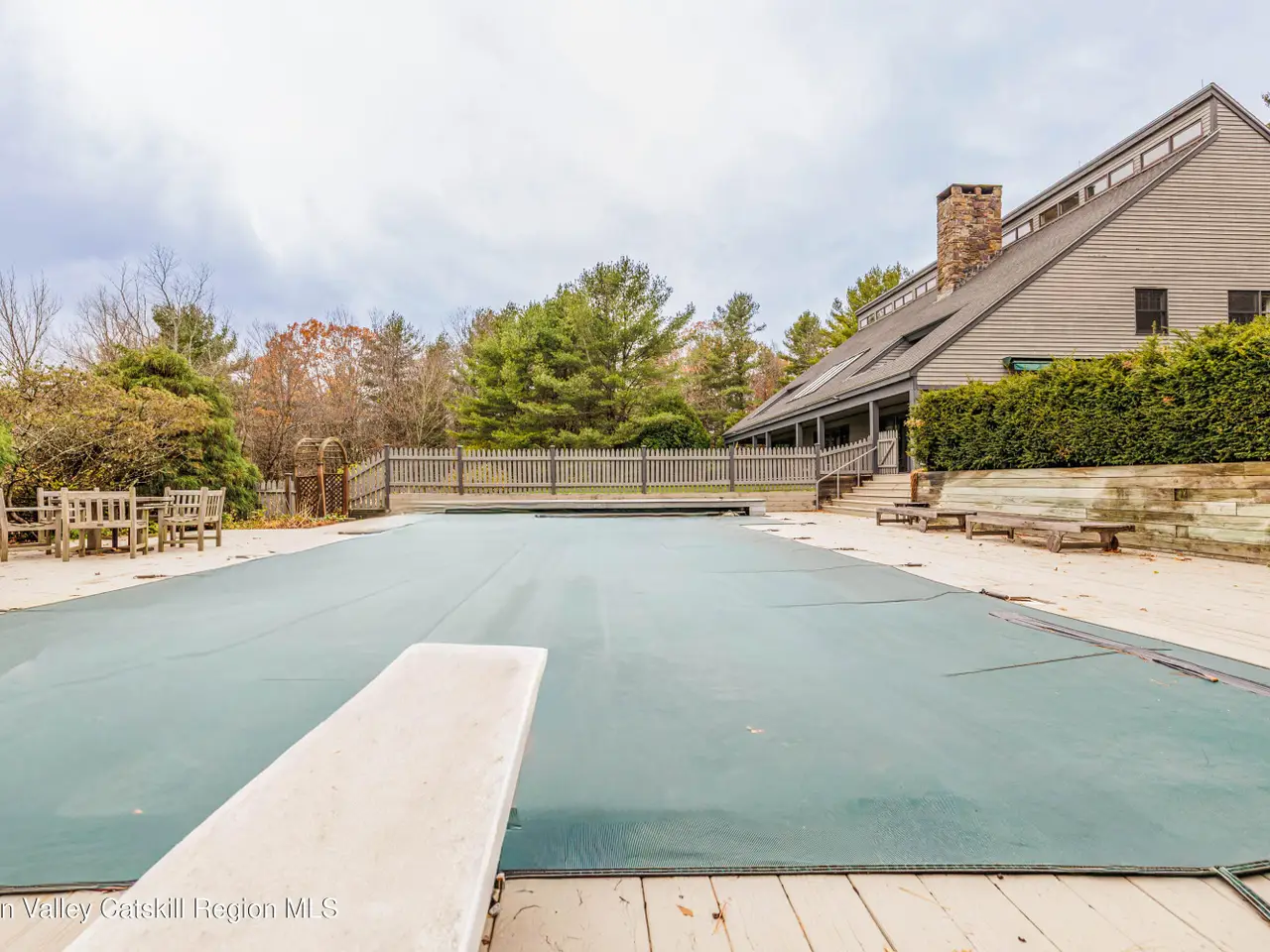 Welcome to Cannondale Compound. Set on 20 private acres with far-reaching mountain views, this 7,300-square-foot architectural retreat is ideally suited for large gatherings. Designed with soaring modernist lines and exceptional craftsmanship, the home offers multiple living and dining areas, seven bedrooms across two connected wings, expansive porches and balconies, and both indoor and outdoor pools. Outdoor highlights include a hot tub, pool house with bathroom, pavilion, garden, and a fully enclosed treehouse for summer overnights, along with deeded Queechy Lake rights for swimming and kayaking.The main wing of the home features a dramatic triple-height great room with a fieldstone fireplace, flanked by a wraparound deck. The stunning southeast-facing views of the Taconic and Berkshire Hills turn every sunrise and sunset into a cherished ritual. A large kitchen is designed for the serious home cook, with Sub-Zero refrigerator, professional hood, and dual pantries. The breakfast bar opens directly to a cozy living space with its own fireplace, dining area, and mountain views. Custom built-ins for books and LPs encourage everyone to slow down and savor life's quiet moments. On the second level are three bedrooms, including a primary suite with fireplace, walk-in closet, and private balcony, plus a solarium and office nook. A breezeway connects to the north wing, where an indoor lap pool provides a year-round spa-like retreat. This section offers four additional bedrooms, three bathrooms, a kitchenette, loft-like studio, workshop, and attached three-car garage. Recent upgrades include a new geothermal heating system, refinished decks, new flooring throughout the main wing of the house, fresh exterior paint, and a new roof on all structures. The property sits on one of the largest lots in the sought-after community of Shaker Ridge, whose residents enjoy private tennis courts and a peaceful, well-maintained community setting. Minutes from Chatham, PS21 Arts Center, the Berkshires, and within easy reach of Hudson, Albany, western Massachusetts, and five ski resorts, this is a rare opportunity to own a one-of-a-kind Hudson Valley estate with total privacy, inspiring architecture, and unmatched versatility for entertaining or multigenerational living.