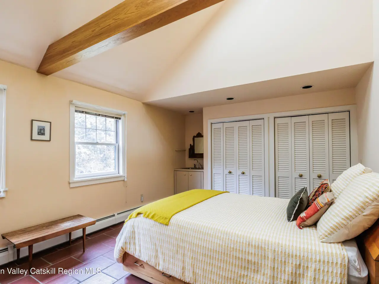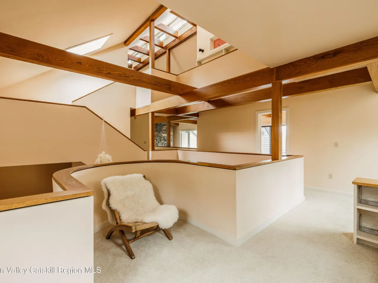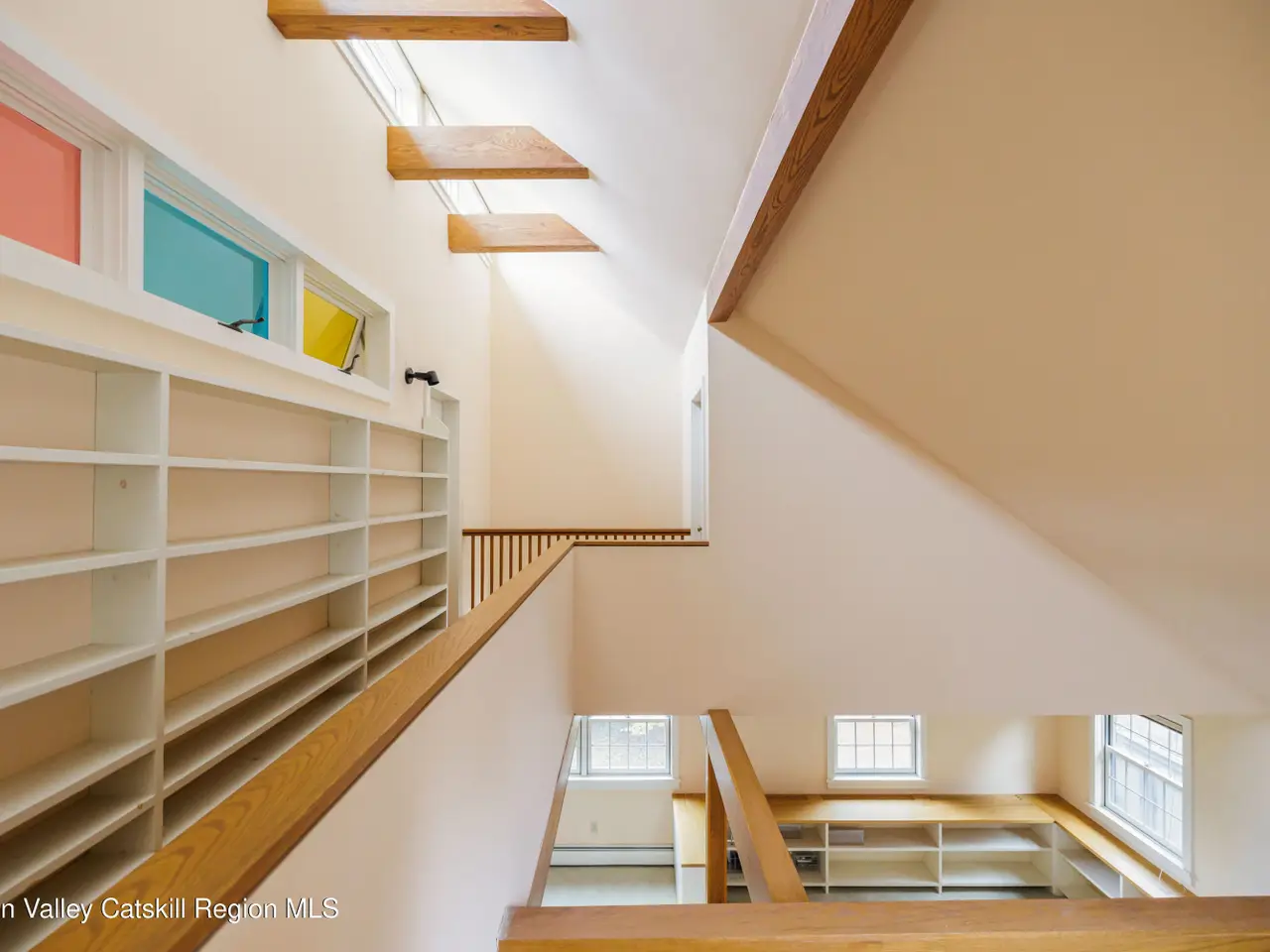 Welcome to Cannondale Compound. Set on 20 private acres with far-reaching mountain views, this 7,300-square-foot architectural retreat is ideally suited for large gatherings. Designed with soaring modernist lines and exceptional craftsmanship, the home offers multiple living and dining areas, seven bedrooms across two connected wings, expansive porches and balconies, and both indoor and outdoor pools. Outdoor highlights include a hot tub, pool house with bathroom, pavilion, garden, and a fully enclosed treehouse for summer overnights, along with deeded Queechy Lake rights for swimming and kayaking.The main wing of the home features a dramatic triple-height great room with a fieldstone fireplace, flanked by a wraparound deck. The stunning southeast-facing views of the Taconic and Berkshire Hills turn every sunrise and sunset into a cherished ritual. A large kitchen is designed for the serious home cook, with Sub-Zero refrigerator, professional hood, and dual pantries. The breakfast bar opens directly to a cozy living space with its own fireplace, dining area, and mountain views. Custom built-ins for books and LPs encourage everyone to slow down and savor life's quiet moments. On the second level are three bedrooms, including a primary suite with fireplace, walk-in closet, and private balcony, plus a solarium and office nook. A breezeway connects to the north wing, where an indoor lap pool provides a year-round spa-like retreat. This section offers four additional bedrooms, three bathrooms, a kitchenette, loft-like studio, workshop, and attached three-car garage. Recent upgrades include a new geothermal heating system, refinished decks, new flooring throughout the main wing of the house, fresh exterior paint, and a new roof on all structures. The property sits on one of the largest lots in the sought-after community of Shaker Ridge, whose residents enjoy private tennis courts and a peaceful, well-maintained community setting. Minutes from Chatham, PS21 Arts Center, the Berkshires, and within easy reach of Hudson, Albany, western Massachusetts, and five ski resorts, this is a rare opportunity to own a one-of-a-kind Hudson Valley estate with total privacy, inspiring architecture, and unmatched versatility for entertaining or multigenerational living.