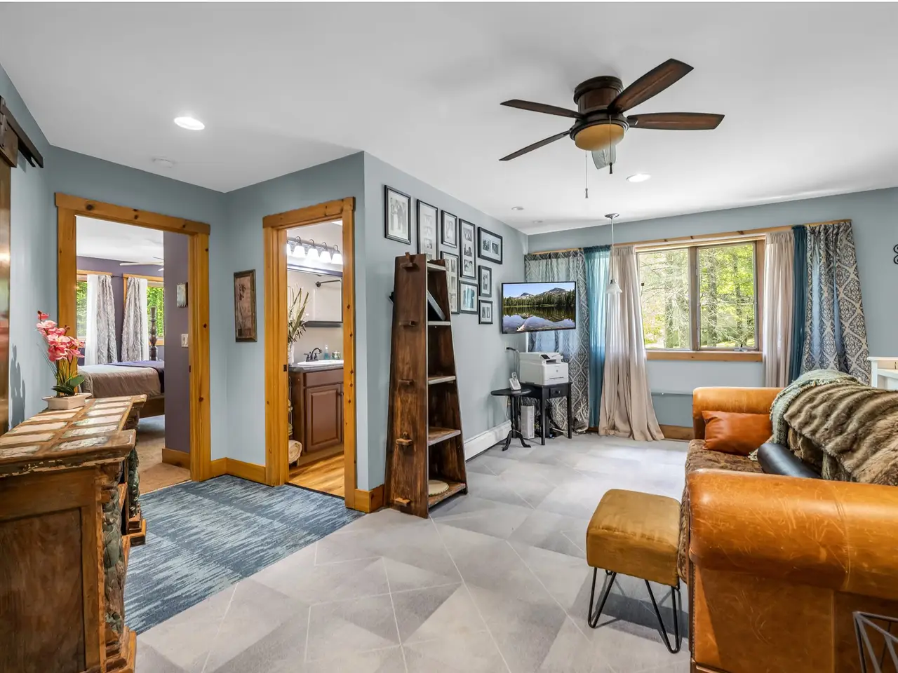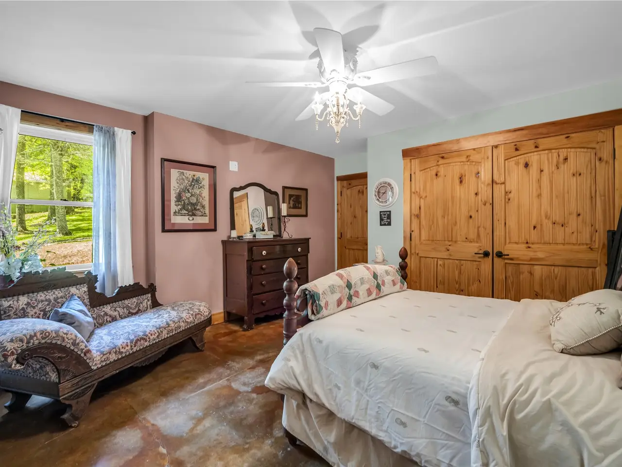 REDUCED: Newly Priced to Sell! Don't miss this opportunity! Magnificent, peaceful 17.5 acre equestrian property with its own natural water source - a creek and creek-fed pond, making it the ideal property for horse lovers! Imagine sipping your morning coffee from the freshly painted pergola while watching the fog lift off the pond and horse pasture, or enjoy an evening cocktails with friends as the sun sets! Immerse yourself in quiet just a few minutes to the Blue Ridge Parkway; the solitude here is amazing on this quiet road leading to mountain paradise. Driving not on your days agenda? That's OK, you'll have endless opportunities to enjoy your own private paradise without even leaving your very own, lush 17+ acres! Enjoy a morning walk on your trails, or take a few minutes to fish for bass in the evening. This incredible property is NOT located in a flood plain. The main house was completely renovated in 2015; the stone wall in the living room was once the home's exterior from when the home was originally built in 1942. The chef inspired gourmet kitchen features custom cabinetry throughout with soft touch close drawers, designed and built by local craftsmen with a tree trunk harvested from the property right in the center. But the best feature just might be the kitchen sink picture window overlooking the private pond! The oversized primary suite offers dual walk-in closets, dual vanities with live-edge counters, a double sized jetted soaking tub, and the most luxurious shower in Western North Carolina with its 9 shower heads and even a 10 million year-old petrified wood seat! This unique home also has radiant heat floors and incredible natural light! The guest cabin was newly renovated in 2011 and all new flooring and roof in 2022is currently rented long-term (month-to-month) but would be a great short-term rental. Because this property is outside the Asheville city limits, there are no restrictions on vacation rentals. The 2 stall barn with tack room opens into the pasture and has parking for a horse trailer. The property is comprised of 2 adjoining parcels, and there is ample room on the second parcel (the one with guest cabin) to clear additional pasture or to build additional structures. This is a spectacular home for entertaining, especially in the spring, summer, and fall, with a spacious floor plan that flows onto the cabana overlooking the pond. Zoned Open Use and located just below Mt. Pisgah and the Blue Ridge Parkway, this property is ideal for an event venue, yoga retreat center, or vacation rental complex. No damage from Hurricane Helene in September 2024. Click Virtual Tour for even more photos! Happy Trails!