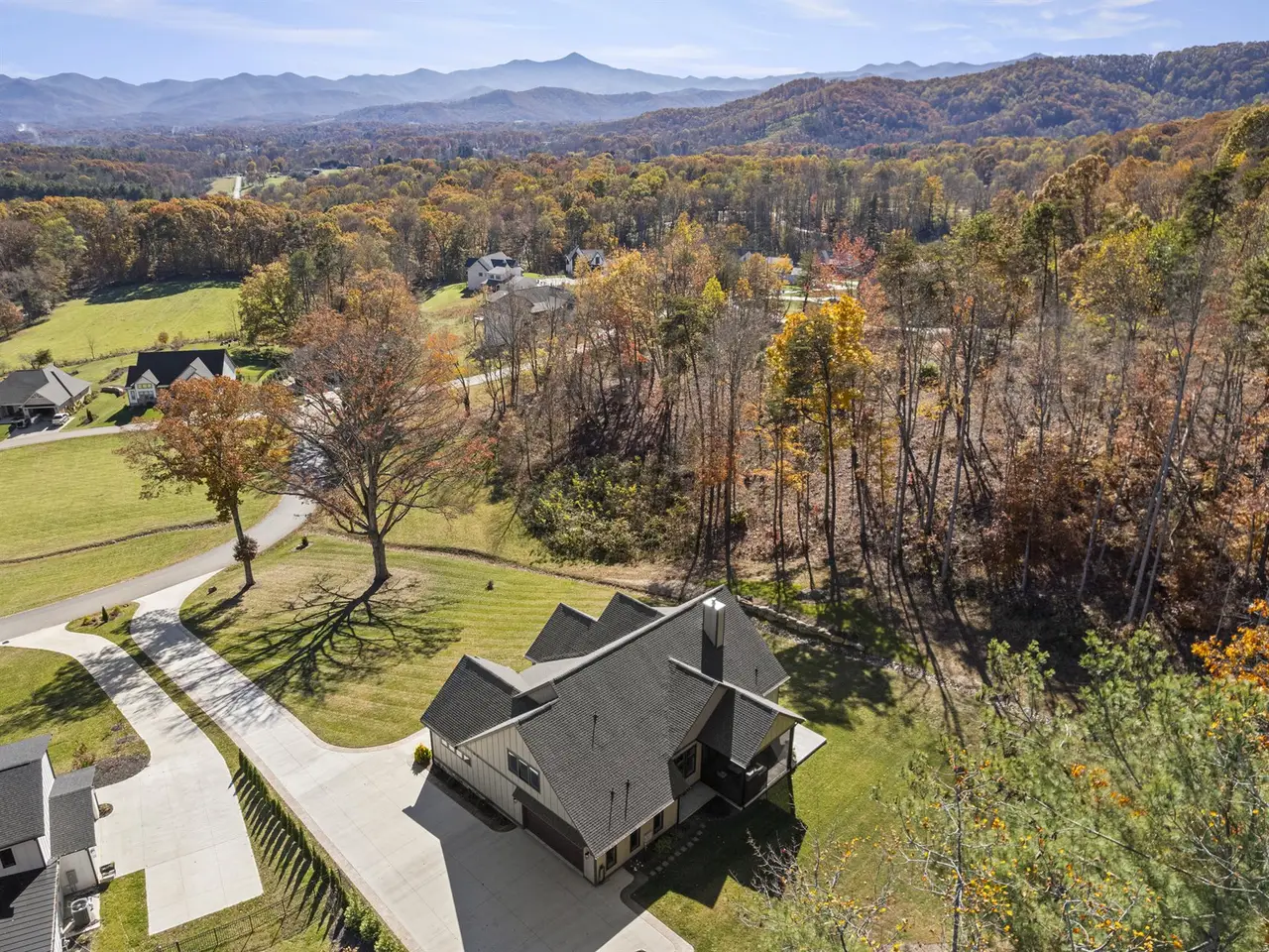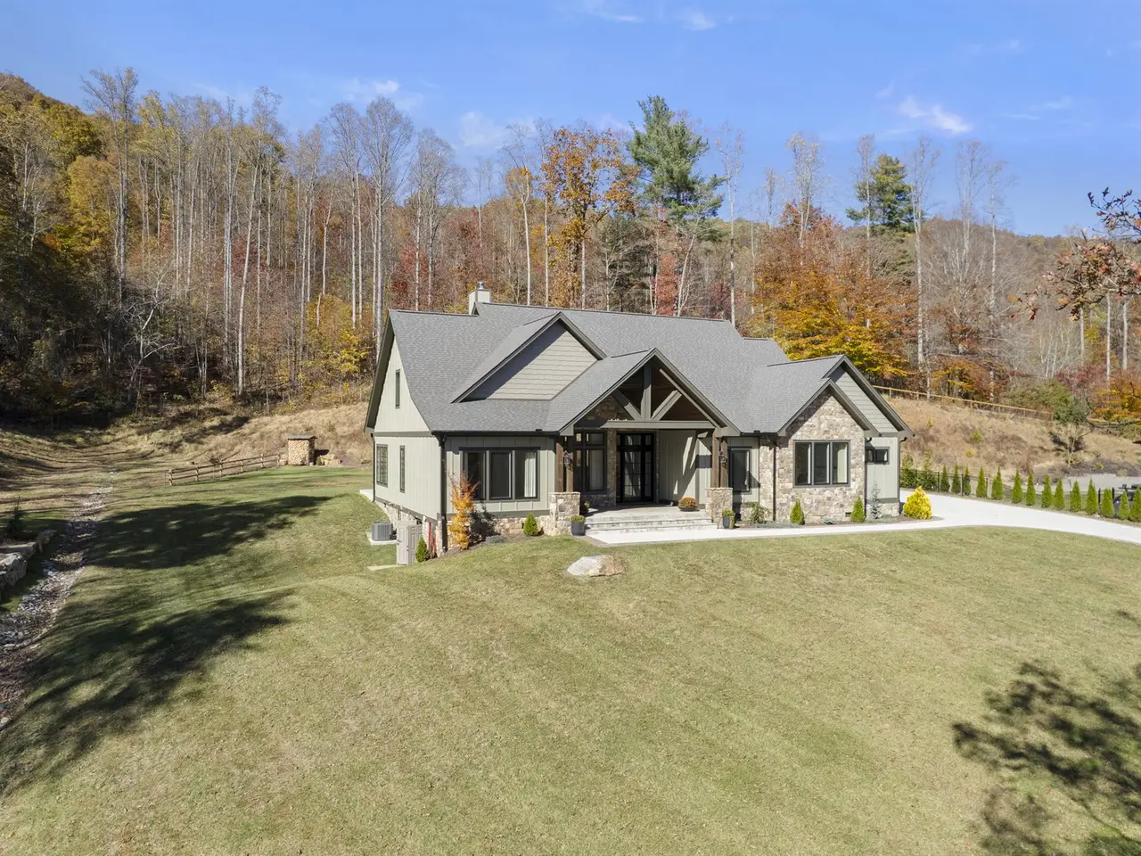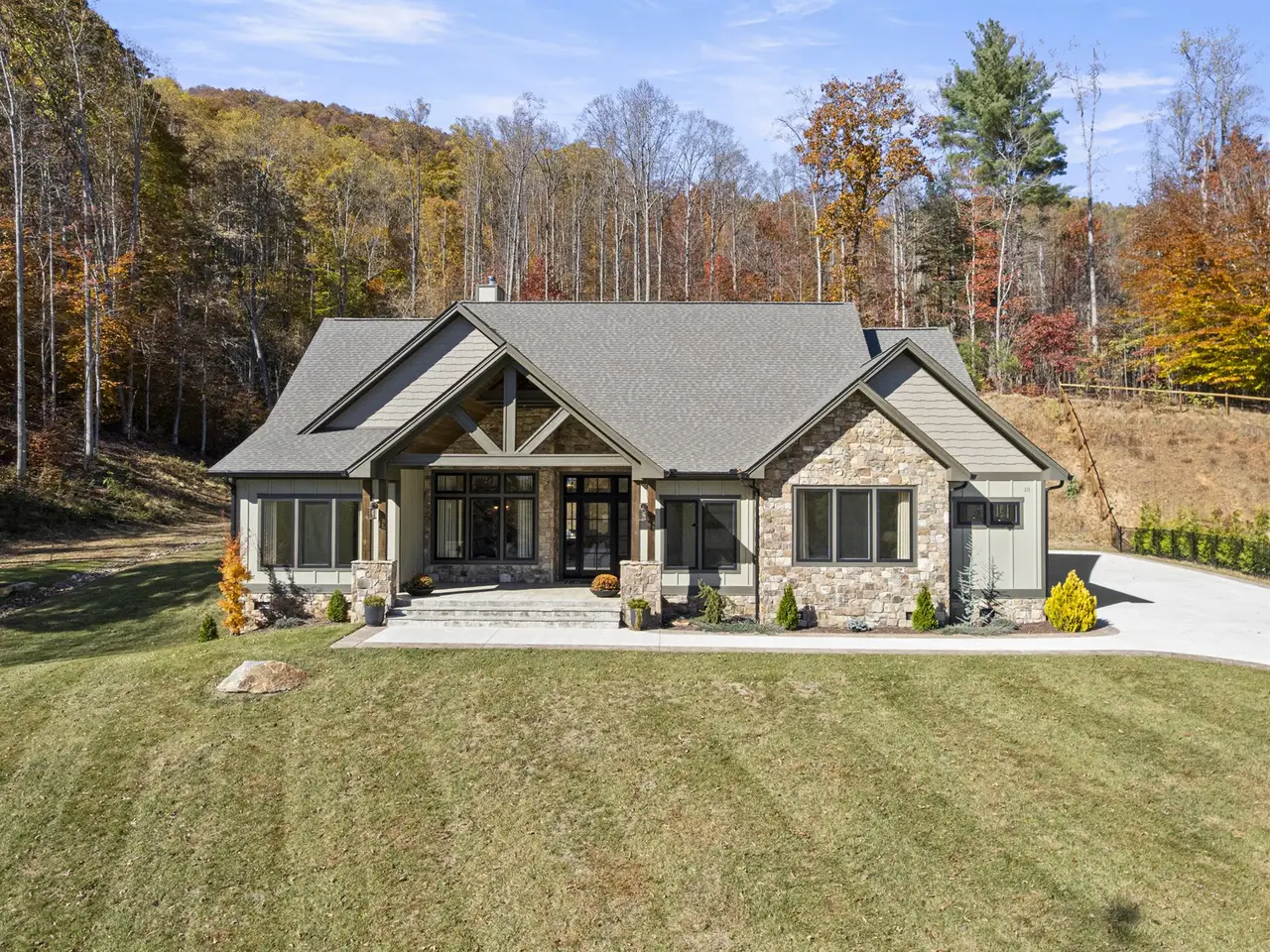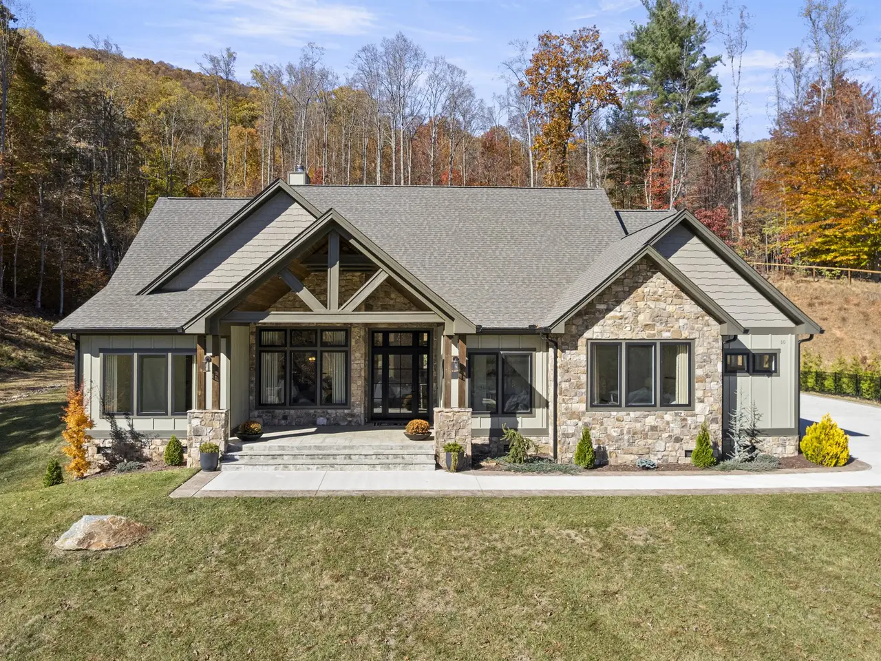 Welcome to Candler's newest premier gated community, featuring large mountain views and rolling hills. This stunning, modern 3,100+ sq ft home offers the perfect blend of luxury, comfort, and functionality. Includes 2,616 sq. ft. of main level living space, plus an additional non-continuous 540 sq. ft. ensuite guest bedroom above the garage, complete with a full bath and coffee bar (with beverage frig), which is perfect for guests, family or a private studio. When you step inside the front door, you'll find 12-ft ceilings, abundant natural light and an open-concept living area, including a soaring floor-to-ceiling Green Start Apex wood-burning fireplace with push-button start and adjustable digital controls, capable of efficiently heating the main living space and beyond. The gourmet kitchen is a chef'sdream, featuring a walk-in pantry with an undercounter beverage refrigerator, an oversized island with Taj Mahal Quartz countertops and additional custom touches throughout. The primary suite is a serene retreat offering stunning mountain views, a spa-inspired bath with a large soaking tub, walk-in shower and a spacious custom walk-in closet. Additional highlights include: Heated floors in the main level bathrooms and laundry room, custom built-in cabinetry in the office, central vacuum system and three-zone HVAC for year-round comfort, large walk-in closets with custom built-ins, screened-in back porch overlooking a large private backyard and a 662 sq. ft. basement/crawlspace which includes space for a workshop, storage area, or wine cellar. Enjoy the tranquility and breathtaking views of the Blue Ridge Mountains from this meticulously crafted home that perfectly blends modern style, technology, and mountain living.