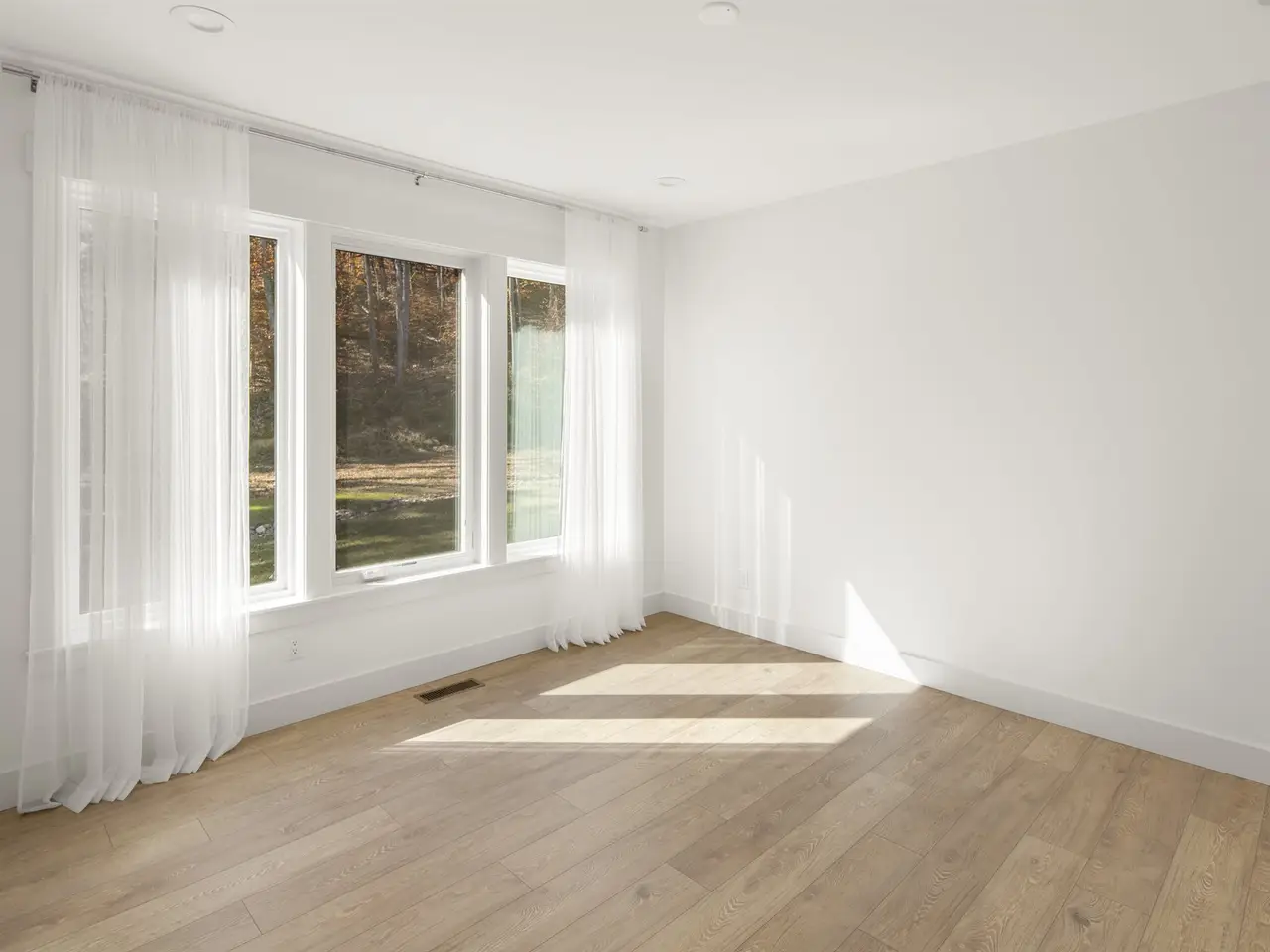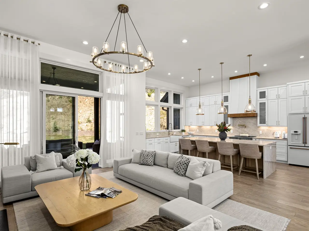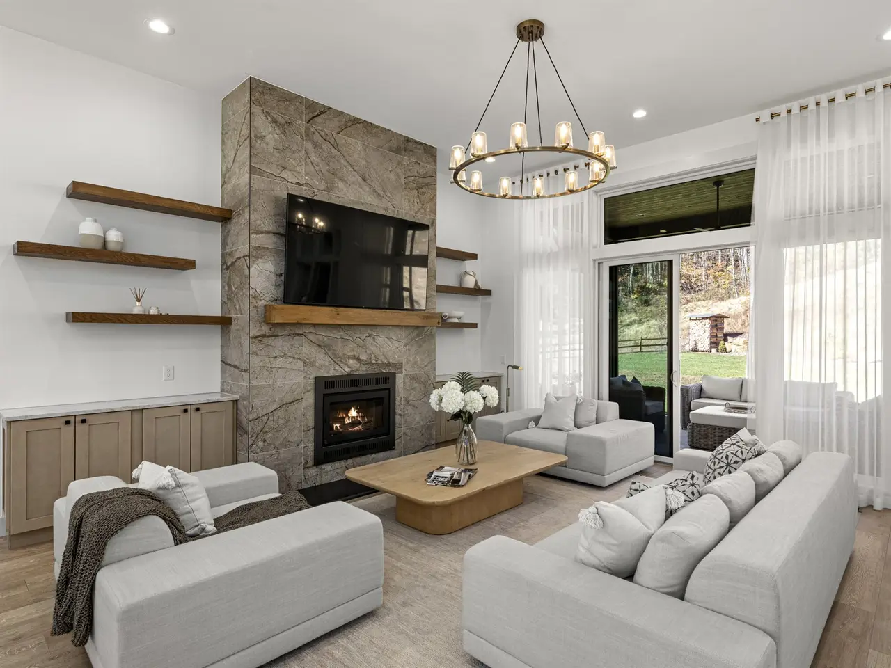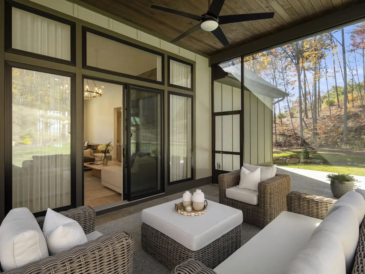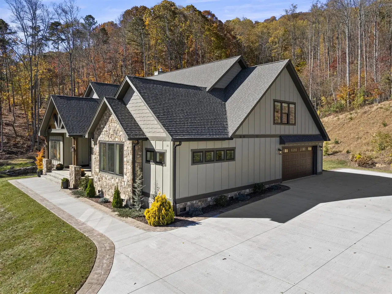 Welcome to Candler's newest premier gated community, featuring large mountain views and rolling hills. This stunning, modern 3,100+ sq ft home offers the perfect blend of luxury, comfort, and functionality. Includes 2,616 sq. ft. of main level living space, plus an additional non-continuous 540 sq. ft. ensuite guest bedroom above the garage, complete with a full bath and coffee bar (with beverage frig), which is perfect for guests, family or a private studio. When you step inside the front door, you'll find 12-ft ceilings, abundant natural light and an open-concept living area, including a soaring floor-to-ceiling Green Start Apex wood-burning fireplace with push-button start and adjustable digital controls, capable of efficiently heating the main living space and beyond. The gourmet kitchen is a chef'sdream, featuring a walk-in pantry with an undercounter beverage refrigerator, an oversized island with Taj Mahal Quartz countertops and additional custom touches throughout. The primary suite is a serene retreat offering stunning mountain views, a spa-inspired bath with a large soaking tub, walk-in shower and a spacious custom walk-in closet. Additional highlights include: Heated floors in the main level bathrooms and laundry room, custom built-in cabinetry in the office, central vacuum system and three-zone HVAC for year-round comfort, large walk-in closets with custom built-ins, screened-in back porch overlooking a large private backyard and a 662 sq. ft. basement/crawlspace which includes space for a workshop, storage area, or wine cellar. Enjoy the tranquility and breathtaking views of the Blue Ridge Mountains from this meticulously crafted home that perfectly blends modern style, technology, and mountain living.