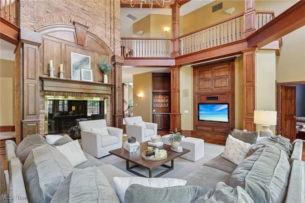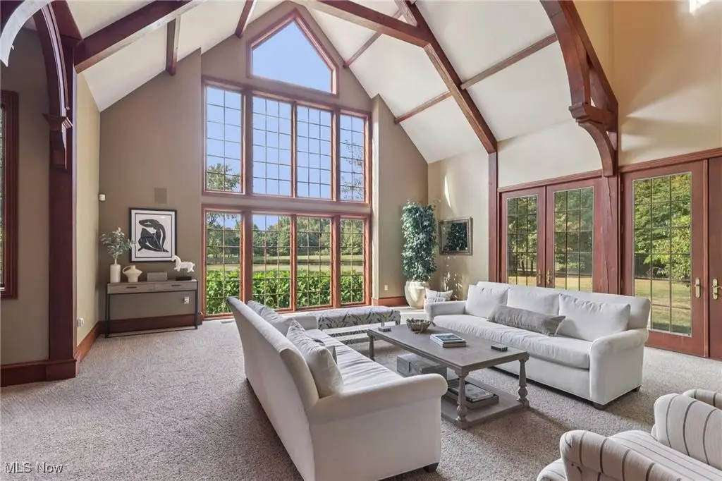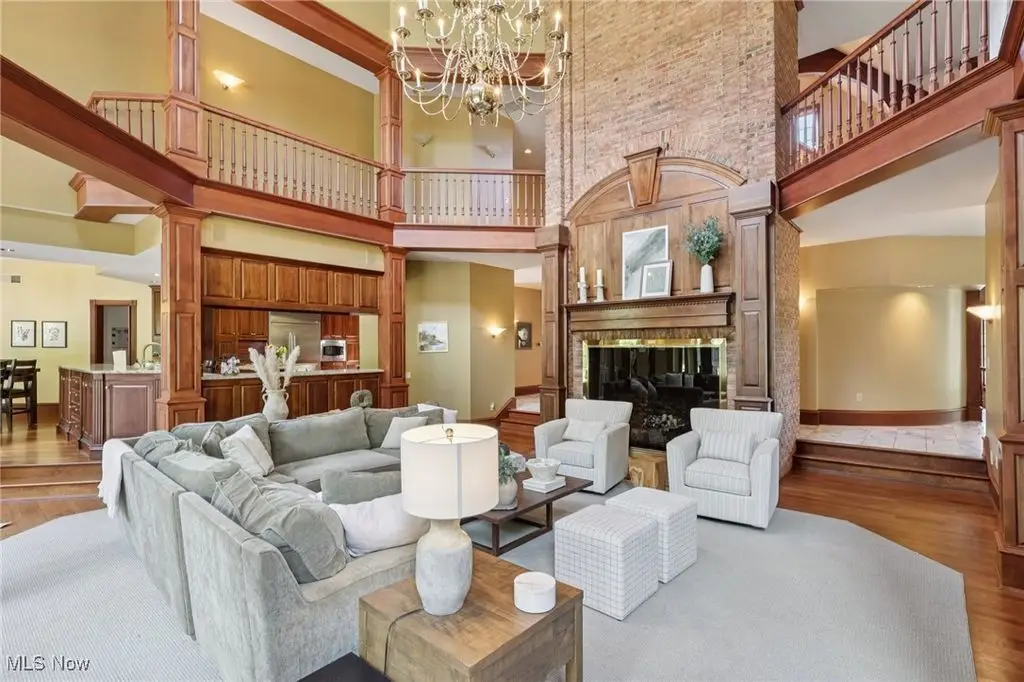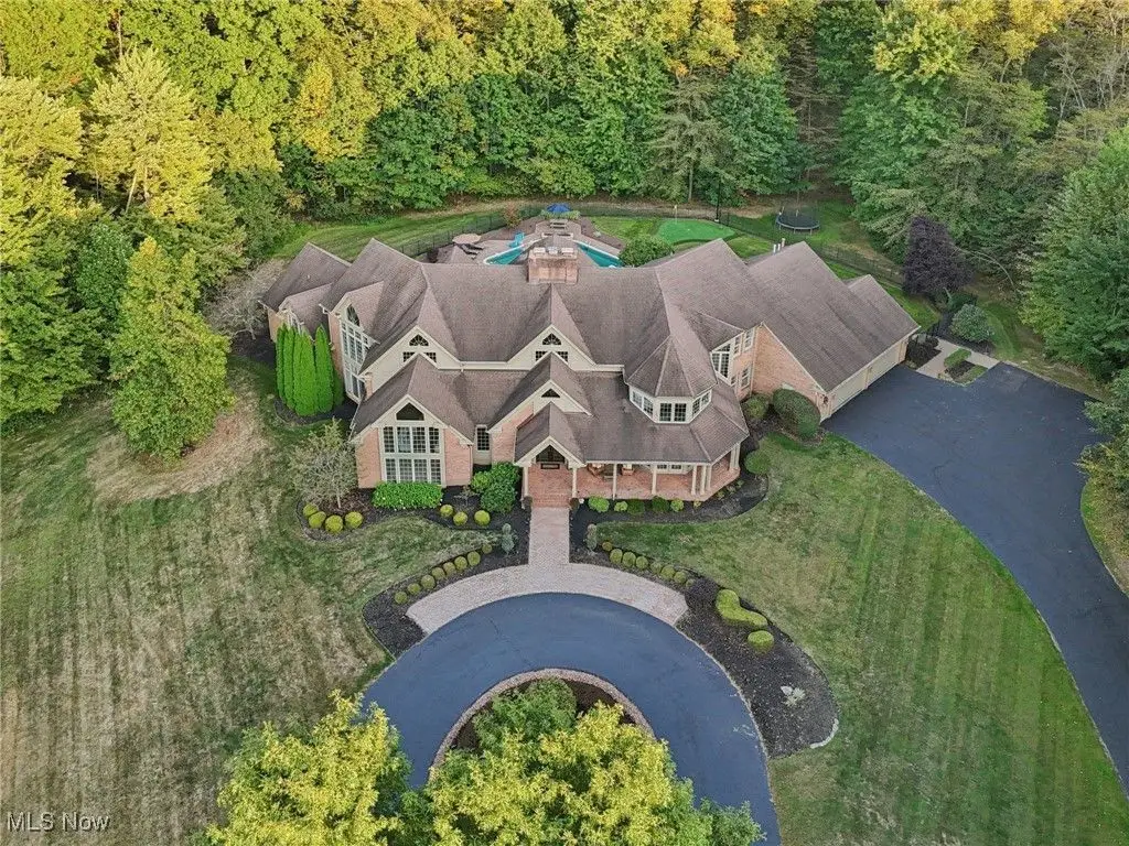Privately nestled on 48 wooded acres, this luxury estate offers panoramic views of a 3.5-acre lake & provides peaceful seclusion while being just minutes away from local amenities. Upon entering you are welcomed by an elegant marble entry which opens to a split staircase dividing the great room and the grand formal dining room. The three-story great room offers soaring ceilings, exposed beams and walls of windows with lake views. An impressive three-story family room with an oversized fireplace is open to the magnificent gourmet kitchen with granite counters, double ovens, island, breakfast bar & a spacious walk-in pantry. Finishing off the first floor is a laundry room, an elegant private library - perfect space for a quiet home office, a spacious game room and a 3-season enclosed brick patio. The well-appointed first-floor primary suite offers a sitting room, dual walk-in closets & a fully renovated spa bath with dual vanities, an oversized shower, heated floors & hidden stackable laundry for added convenience. Step up to the loft area from the primary suite which is being used as a workout studio with fabulous lake views. The 2nd floor provides four additional bedrooms, each featuring en-suite baths. The walk-out basement is an entertainer's dream showcasing a spacious recreation room, kitchenette, living area with a cozy gas fireplace & a charming custom-built Irish bar. There is also guest bedroom with full bath. Step outside into the backyard oasis and you will find a stunning retreat created for relaxation with a resort-style inground pool with a cascading waterfall. The outdoor bar & firepit area is perfect for hosting weekend gatherings and game nights with an outdoor flat screen. There is also a rare find for golf lovers: a custom designed putting green with full T-box setup, providing a private space to refine your short game. This estate truly offers an unparalleled combination of elegance, functionality and tranquility. Call today for your private tour!