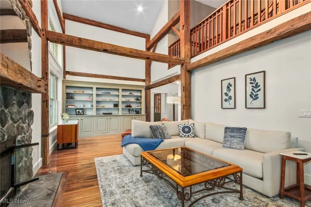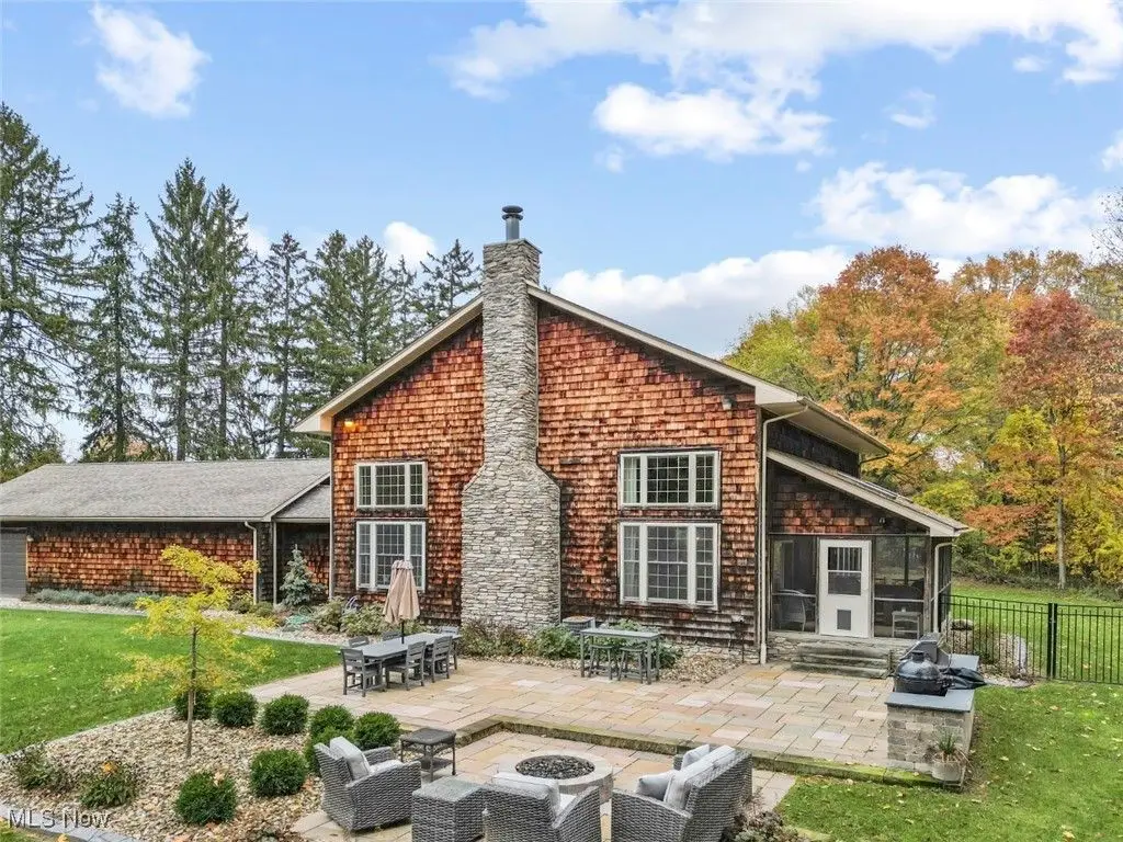 Over 3 acres with public utilities in Canfield! From Tippecanoe turn onto the winding driveway with 4 lamp posts to guide you after sunset to this New England style home built with the beams from an old barn that was on the property. This home has incredible views from every window as well as lots of natural light. The Great room is both warm and rustic with wide plank flooring, walls of windows and floor to ceiling stone gas fireplace. Open from great room is a flex space with built-in shelves and cabinetry, that can be a library/dining room or whatever you need it to be. The kitchen is both beautiful and functional with custom made cabinetry, quartz countertops, peninsula with seating, slate flooring, coffee bar and drink area with mini fridge, floating shelves, and a waterline. Morning room/dinette area is bright and has sliding doors to the screened in porch. First floor master bedroom is part of a 480 sq ft addition and total renovation of original Master. A beautifully done hallway leads you to double doors into a luxurious Master suite. Gorgeous hardwood flooring, a custom walk-in closet, office area, and a master bathroom you will want to stay in, with tiled oversized shower, soaking tub, white oak cabinets, floating shelves, and separate commode room. Wood staircase leads to the upstairs open loft with cathedral ceiling, beams, wood railings and wall of wood shelving. Enough space for a nice size sitting room, a quiet place to read. From loft access two bedrooms with each having their own full bathroom. The basement is finished with rec room, bedroom 4 and full bathroom. First floor laundry, front foyer, half bath, three car oversized garage. All lighting fixtures have been replaced ,including the garage lights and the 4 lamp posts along the driveway. The owner has had the landscaping redone and planted new grass. Backyard has a new stone patio with gas firepit, built-in grill with granite top. New beautiful fence in backyard. Tree lined property.