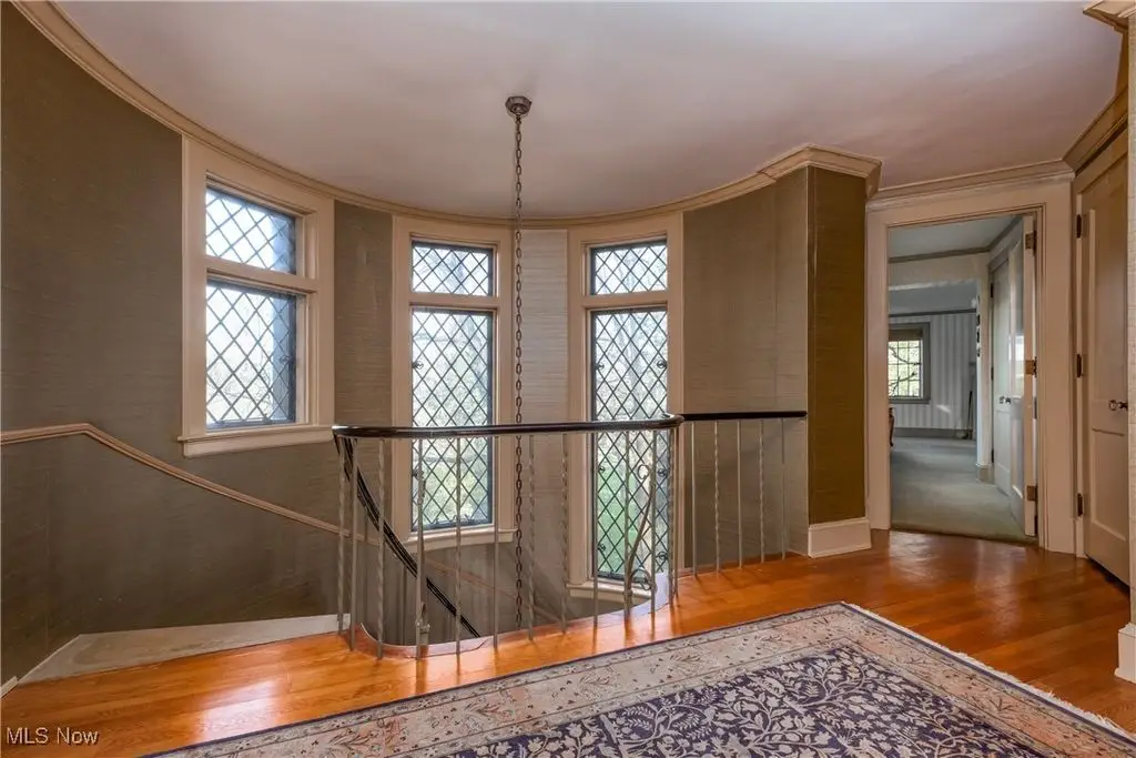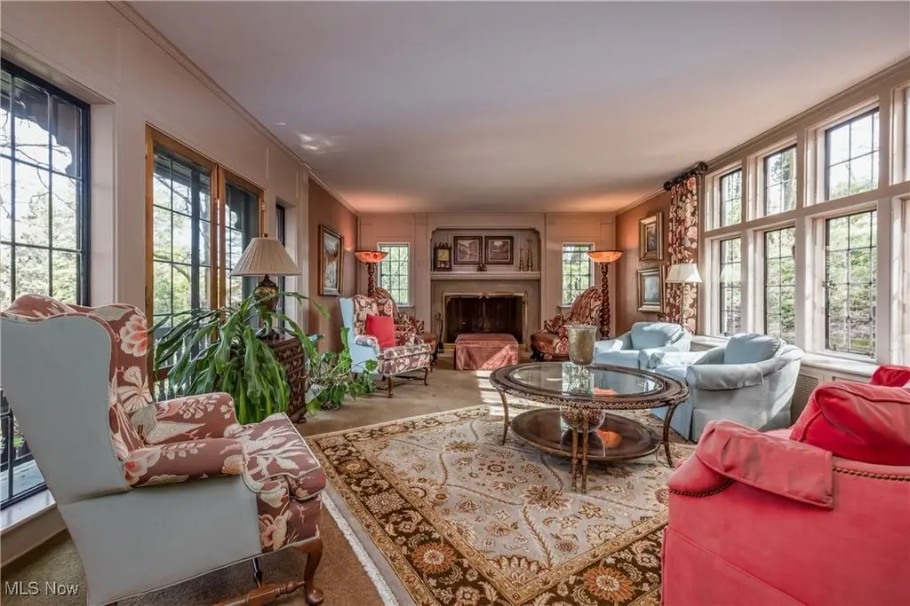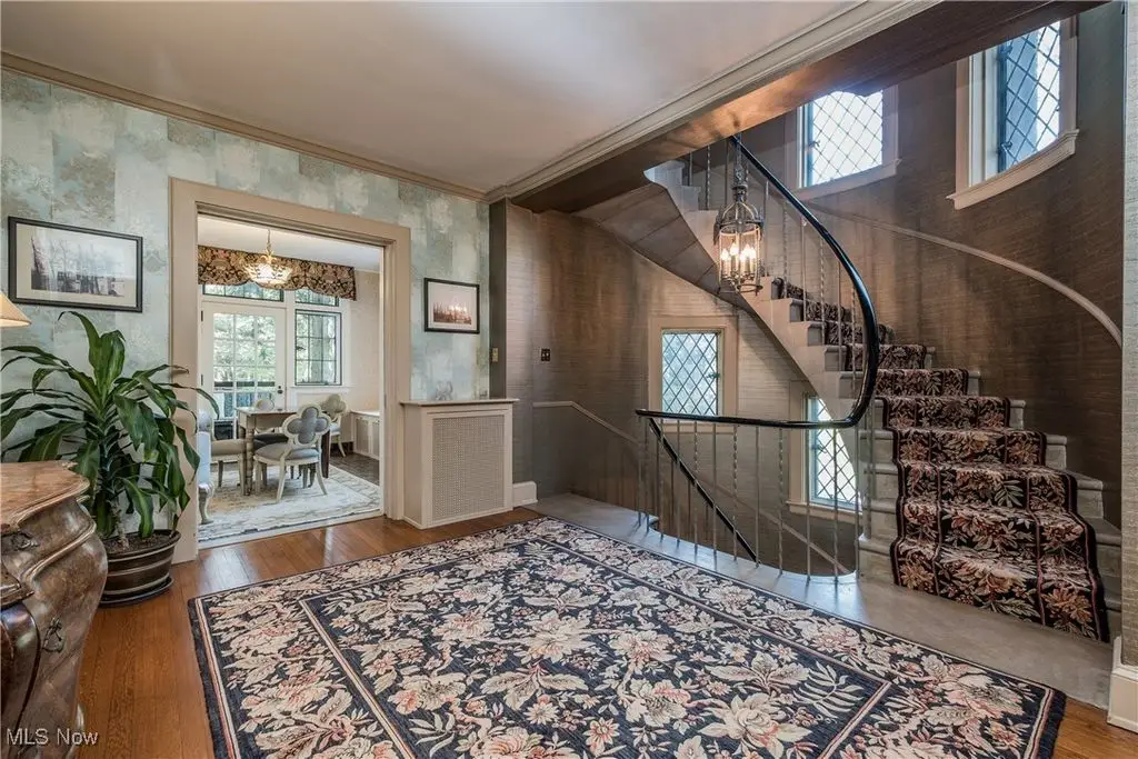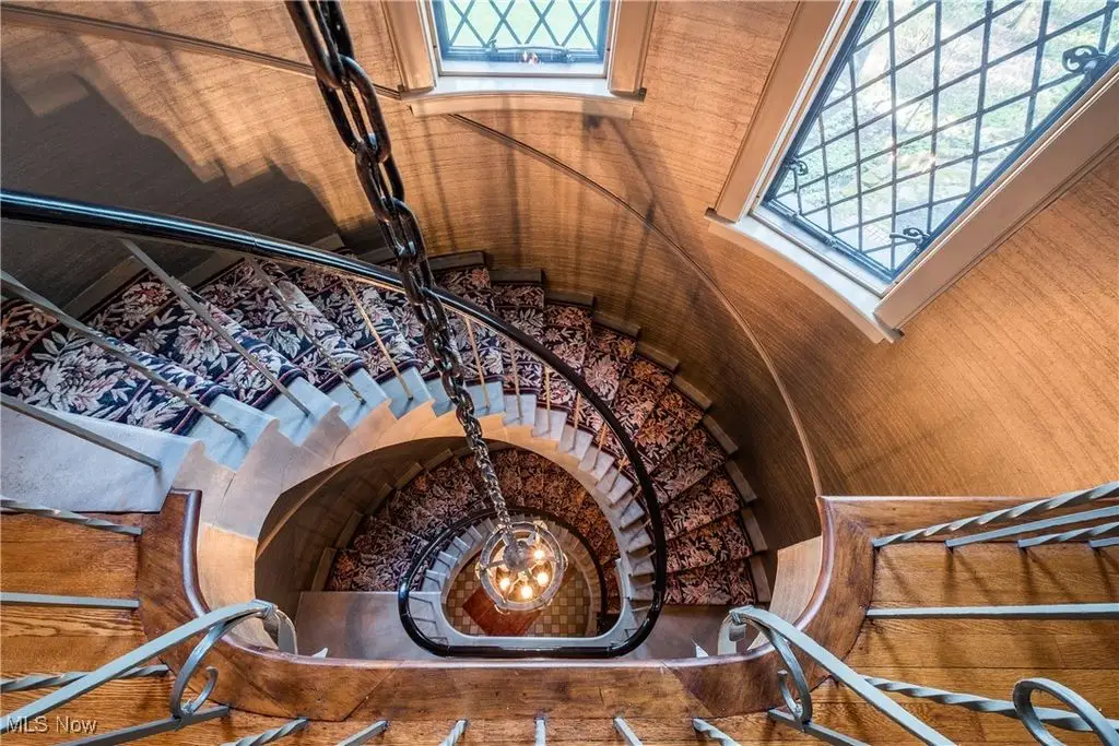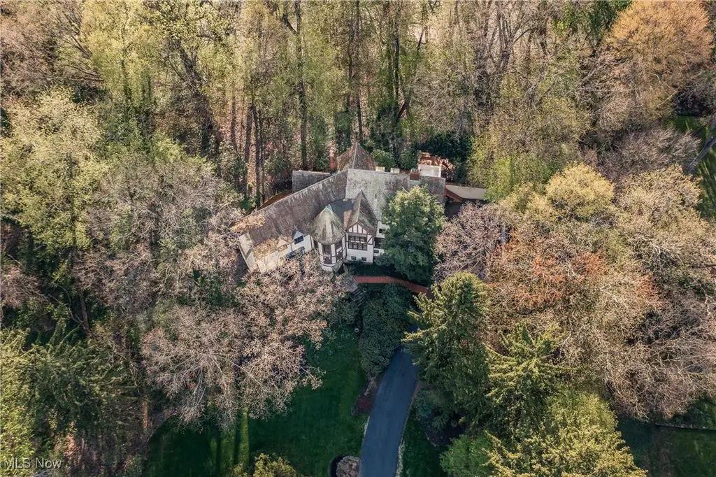 Welcome to this architect deigned and built authentic English Tudor style home in the heart of Hills and Dales Village. This Architectural treasure is perched back off the road and soars 4 stories high with views of the beautiful neighborhood from every angle. This beauty was designed by Cleveland architect Abram Garfield and the original workmanship and details have been lovingly preserved throughout including the impressive 3 story sweeping circular Stone staircase, original light fixtures, built in cabinetry, 6 Fireplaces, slate roof and leaded glass windows (with newer storms). The main level boasts a cozy Family room that walks out through french doors to the front patio and includes a wet bar for entertaining. Formal and utility half baths and a large back mudroom near the 3 car attached garage. Ascend the majestic stone staircase to the 2nd floor main living area and you are surrounded by grand living areas, walls of windows/french doors (lead to back patio area) and comfortable living spaces. The Grand Parlor and Formal Dining spaces are meant for large gatherings with guests and family. The original wood paneled Library has a cozy wood burning fireplace and ample built in bookcases and cabinets. Enjoy your morning cup of tea or coffee in the bright Morning room that boasts the original terracotta tile floor and walks out to 2nd floor balcony. The modernized Kitchen is spacious with a Viking gas oven/range, ample storage, everyday Dining space and home management area. Perfectly placed between the Kitchen and Dining area is the originally appointed Butlers pantry that has built in china/linen cabinets and an additional prep sink. The 3rd and 4th floors offer a total of 9 bedrooms (1 is currently used as a laundry room), 4 full bathrooms and a Bonus Room that could be used as additional storage or additional living space. This is an opportunity to own a piece of history in one of the best known homes in Hills and Dales Village.