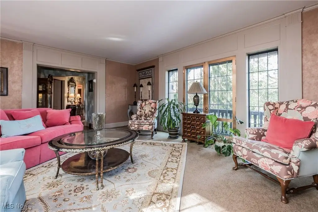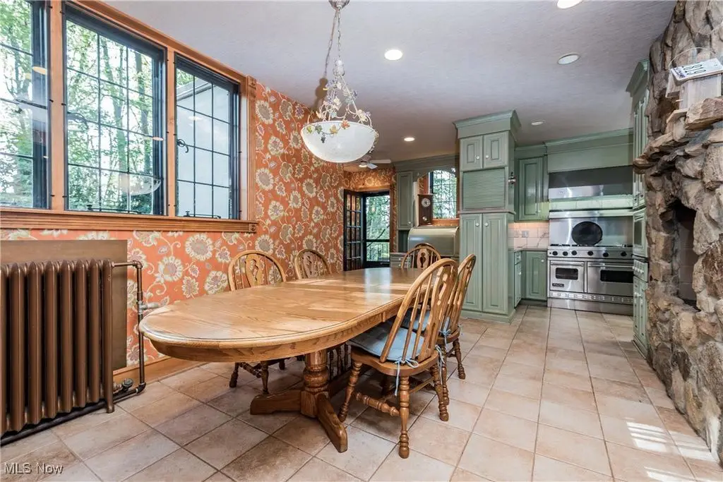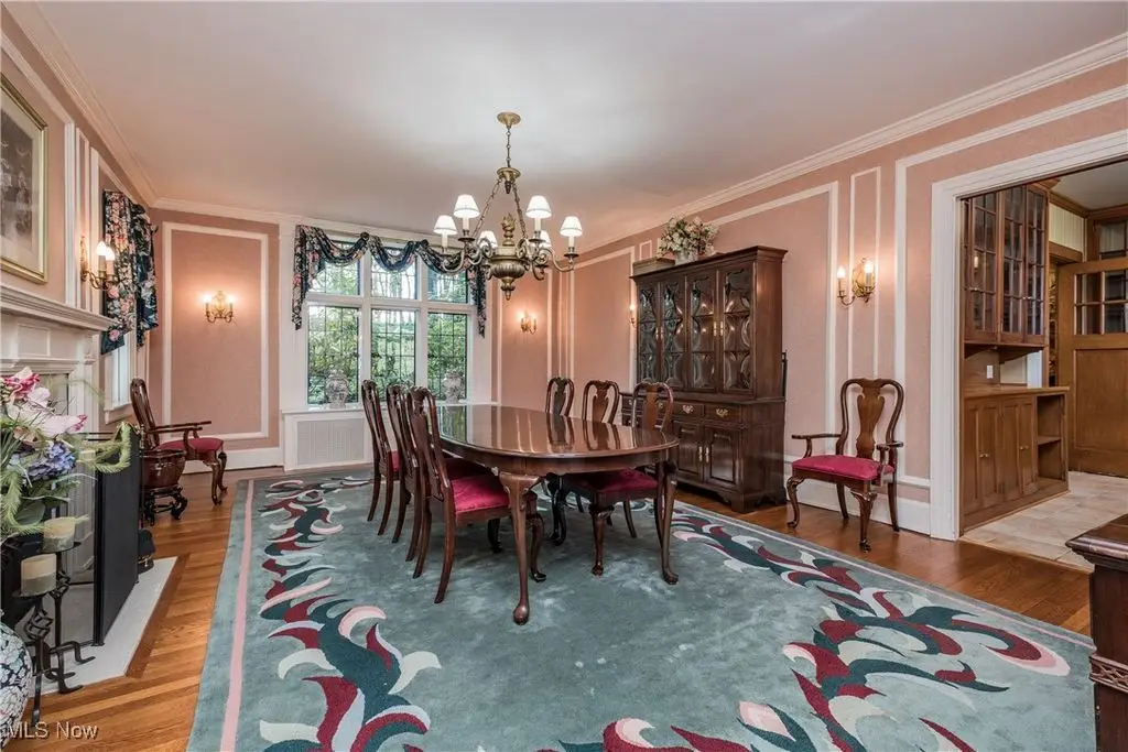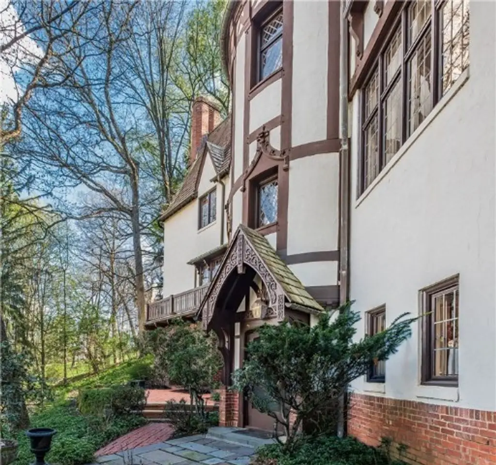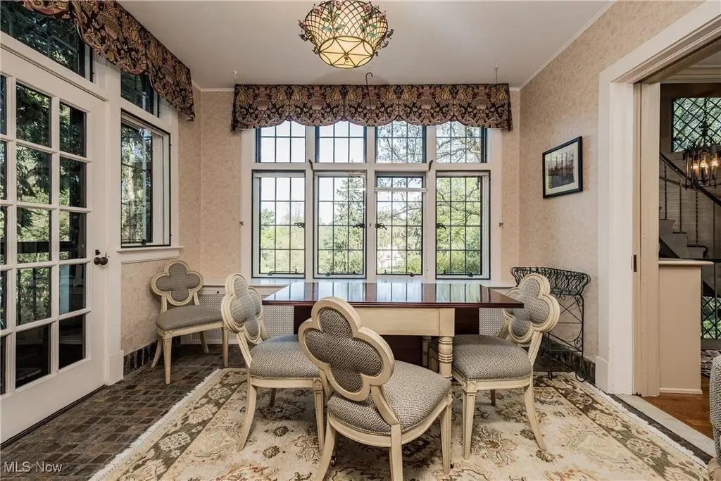 Welcome to this architect deigned and built authentic English Tudor style home in the heart of Hills and Dales Village. This Architectural treasure is perched back off the road and soars 4 stories high with views of the beautiful neighborhood from every angle. This beauty was designed by Cleveland architect Abram Garfield and the original workmanship and details have been lovingly preserved throughout including the impressive 3 story sweeping circular Stone staircase, original light fixtures, built in cabinetry, 6 Fireplaces, slate roof and leaded glass windows (with newer storms). The main level boasts a cozy Family room that walks out through french doors to the front patio and includes a wet bar for entertaining. Formal and utility half baths and a large back mudroom near the 3 car attached garage. Ascend the majestic stone staircase to the 2nd floor main living area and you are surrounded by grand living areas, walls of windows/french doors (lead to back patio area) and comfortable living spaces. The Grand Parlor and Formal Dining spaces are meant for large gatherings with guests and family. The original wood paneled Library has a cozy wood burning fireplace and ample built in bookcases and cabinets. Enjoy your morning cup of tea or coffee in the bright Morning room that boasts the original terracotta tile floor and walks out to 2nd floor balcony. The modernized Kitchen is spacious with a Viking gas oven/range, ample storage, everyday Dining space and home management area. Perfectly placed between the Kitchen and Dining area is the originally appointed Butlers pantry that has built in china/linen cabinets and an additional prep sink. The 3rd and 4th floors offer a total of 9 bedrooms (1 is currently used as a laundry room), 4 full bathrooms and a Bonus Room that could be used as additional storage or additional living space. This is an opportunity to own a piece of history in one of the best known homes in Hills and Dales Village.