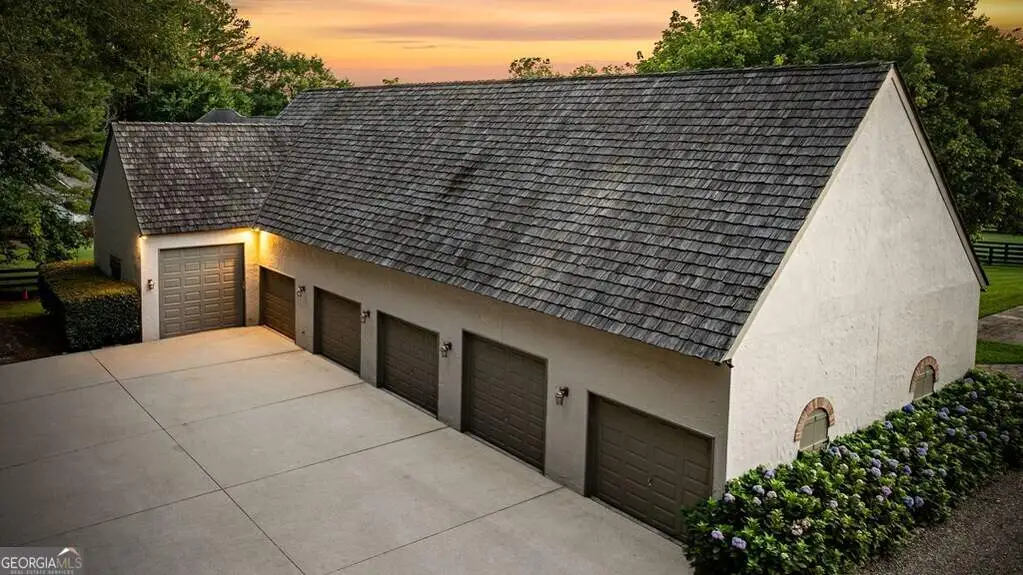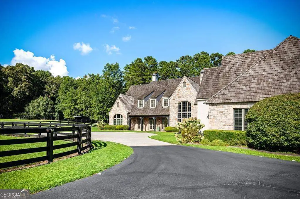 Imagine driving into your gated entry of your European Style County Estate with 4 acres of lush, manicured paddocks. After parking in one of your 3 car attached garage or perhaps parking in one of your six car detached garage with RV parking in one of the stalls and washer and dryer next to the oversized custom workshop. The detached garage can be converted into stables for an equestrian estate. Upon entry of this beautiful 8,500 square foot home, you are greeted with 120-year-old hardwoods. This home is built for entertaining with a large chef's kitchen with 120-year-old wooden beams, large breakfast room with fireplace. A two story study with custom wood paneling including ceiling and cozy fireplace. Two primary suites on the main level with 3 ensuite bedrooms upstairs and an attached guest apartment with separate entrance, full kitchen and laundry. The home features a 8-seat movie theater, wine cellar and tasting area, workout room, sauna room, large 4 season room with custom wood ceilings looking out on the pond. The main living room is expansive with beautiful fireplace, two story custom wood ceilings and wet bar making this the perfect gathering place for your guest. The outside features a beautiful pond with waterfalls, custom hen coop, hot tub and many more amenities for farm animals. The home has a separate well for irrigation and watering of farm animals making this a unique property with well and public water. This home is a smart home making lighting up the indoor and outdoor custom lighting a voice command. This amazing estate is a one of a kind, perfect for enjoying all the countryside has to offer.