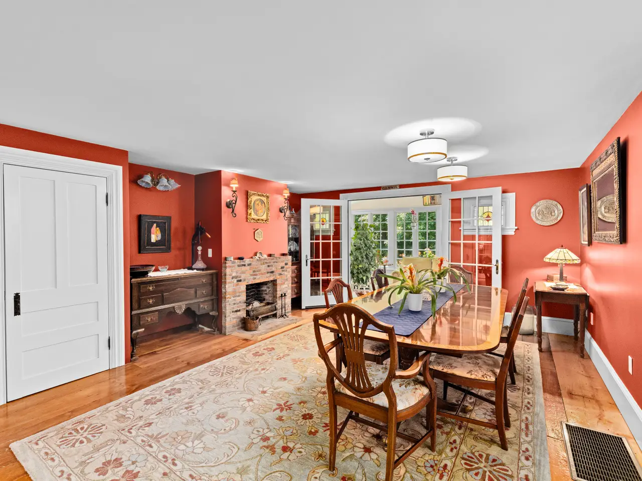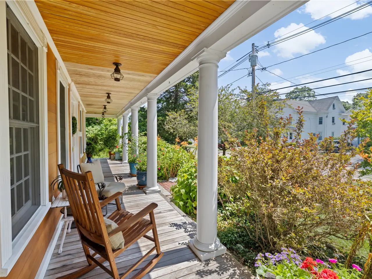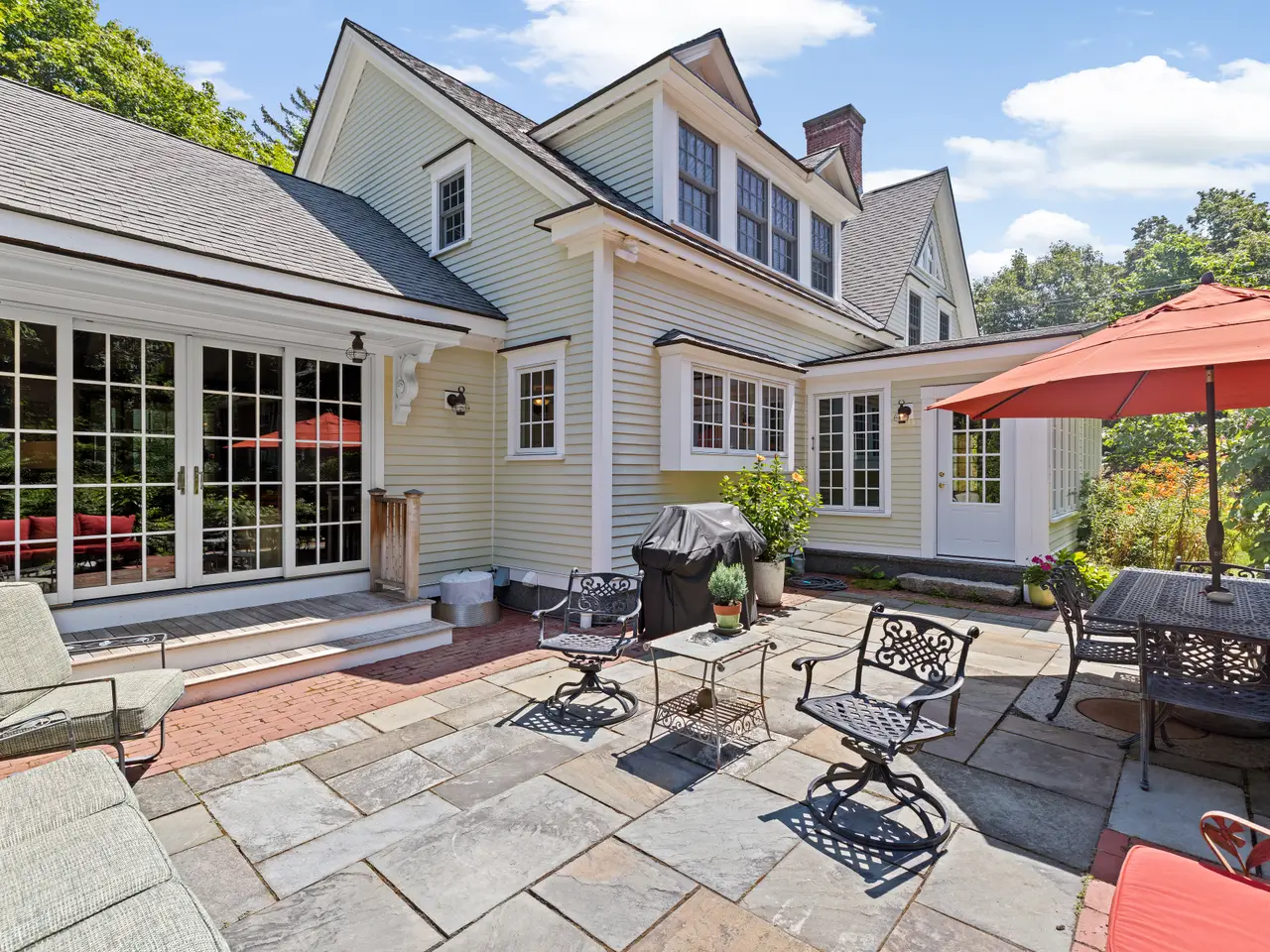 This stunning 12-room home was masterfully restored and expanded in 2008, incorporating the original structure and a reimagined barn. Antique charm shines through wide pine floors, two staircases, and period details, while the open layout and high ceilings offer modern comfort. The gourmet kitchen features granite counters, cherry cabinets, a 6-burner cooktop with Thermador downdraft, Bosch dishwasher, JennAir double ovens, and a new Viking refrigerator. Enjoy four en-suite bedrooms and eight working fireplaces. The finished lower level offers Mongolian tile floors, a fireplace, and French doors leading to a private backyard with stone walls, gardens, and patios. Convenient to town center and train.