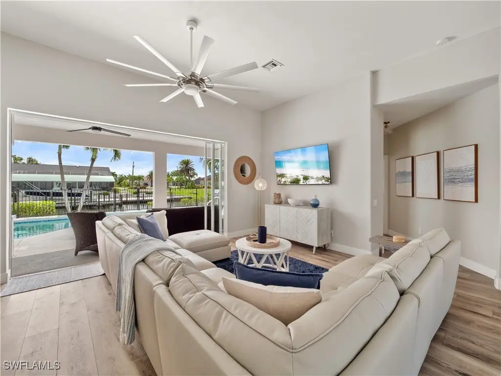Here's your chance to own a piece of paradise in one of Cape Coral's top waterfront neighborhoods. This home is in a very residential area but at the same time, close to everything Cape Coral has to offer. This 4-bedroom, 3-bath home has just over 2,000 square feet of space and a layout that feels open, bright, and easy to live in. As you walk in, you'll notice the high ceilings and all the natural light pouring in. The kitchen has been fully updated with a big island and quartz countertops-perfect for cooking, entertaining, or just hanging out. Step out back and you've got your own private retreat. The pool was recently refinished and is ready for sunny days and relaxing evenings. If you love boating, you'll appreciate the direct Gulf access - no bridges, no hassle. The roof was replaced in 2021 and the home has been really well taken care of. You're close to everything! Tarpon Point Marina, TOP SWFL restaurants, and local shopping....but still tucked away in a quiet, waterfront setting. If you've been waiting for the right place that checks all the boxes, this might be it. Schedule your tour today.
