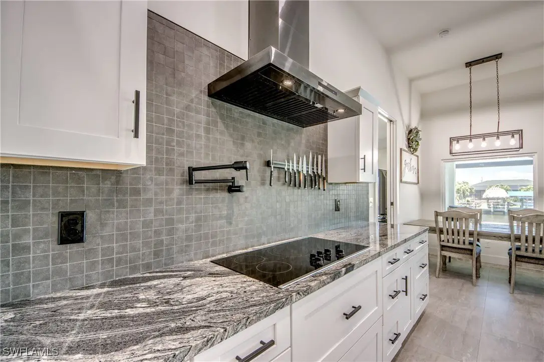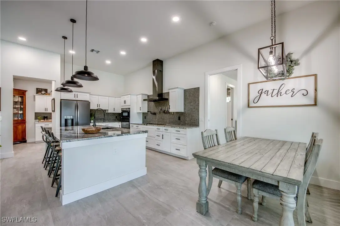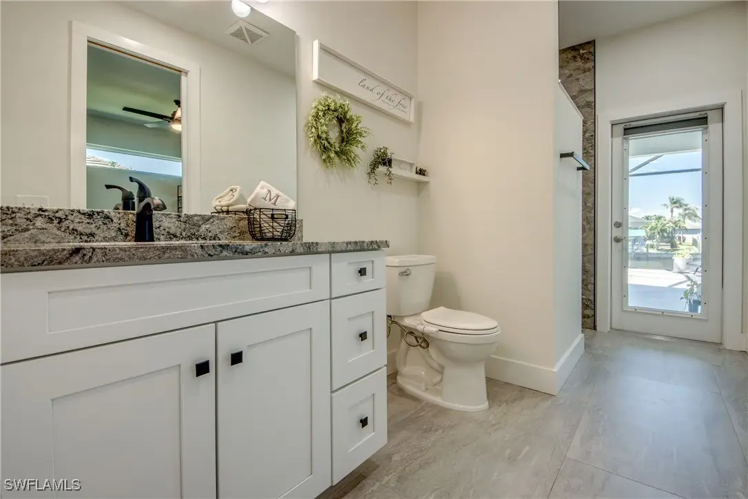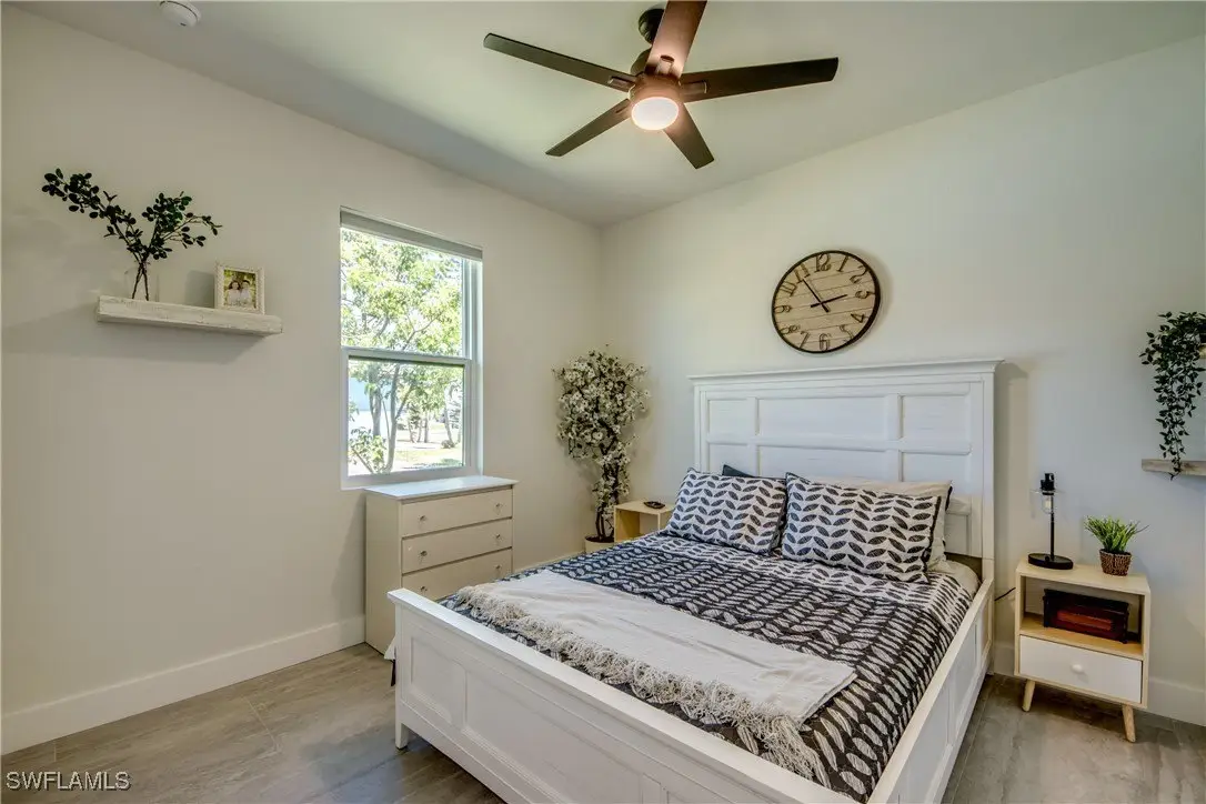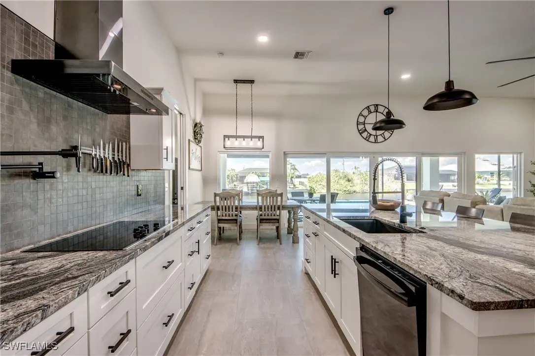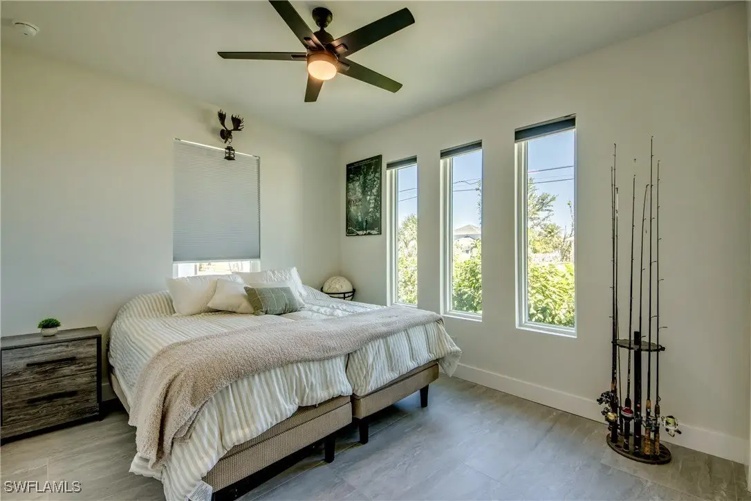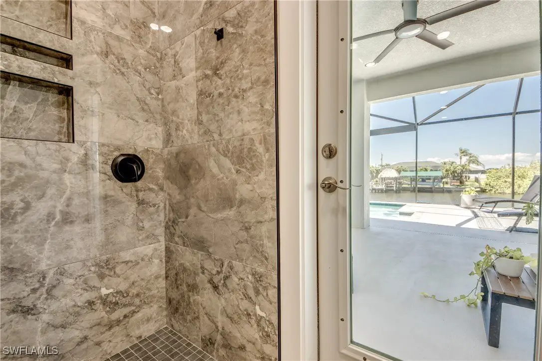 Stunning, 3-lot site custom pool home with over 2600 sq ft and exceptional water views in NW Cape Coral! Built in 2022, this 5 bed/2.5 bath, 1000 sq ft 3-car garage home was built to the highest standards, exceeding Miami/Dade County regulatory codes. LOMR-F has been applied for and will be approved within 60 days. The property will then be labeled "NOT in a Flood Zone". The home is further secured with hurricane impact glass doors and windows and prewired for a whole-house generator. From extra tie trusses to the concrete-filled pool cage uprights reinforced with 5/8 " rebar, the builder spared no expense in safeguarding your future investment! Custom designed from top to bottom and with gorgeous wall to wall windows and sliders, this home offers the very best in luxury waterfront living. From the open-concept chef's kitchen, spacious great room and spa-like primary bath to the backyard oasis, there's something for everyone. Gourmet kitchen features include: a whole home R/O system, an expansive full slab granite island with high top breakfast bar, a black composite double sink and designer backsplash, a convenient pot filler and magnetic knife holder, soft shut cabinetry with wide, pot-holding drawers and a corner Lazy Susan. Additionally, the home uses cable fiber and has a whole house integrated WIFI system and is even wired for network drops. Directly off the kitchen is a delightful butler's pantry and coffee bar with a separate walk-in pantry for food storage. The laundry extends into a multi-use area with a W/D, a 2nd refrigerator, a half bath and sink and a laundry folding and storage station. The primary bedroom is open and airy with lanai access and an ensuite bath that boasts a double vanity and makeup table, a large walk-in closet and a free-standing soaking tub and oversized granite surround shower. The secondary bedroom also enjoys lanai access, a walk-in closet and an ensuite bath that has a pool entrance as well. There are 3 more ample sized guestrooms with one located at the front of the house - perfect for a home office or den. Outdoors is a true boater's paradise! Enjoy the breathtaking, extra-wide and intersecting canal views from the pristine deck, the Captain's Walk and boat dock along with its new canopy cover and 10,000 lb lift. Or enjoy lounging on the expansive lanai and covered patio or taking a dip in the sparkling, heated 12x31 pool with its sun shelf entry, bubblers and swim up granite barstools. Surrounded by lush, mature landscaping in a private and quiet setting. Electrical has been added for an outdoor kitchen and plumbed for an outdoor shower as well as wired for outside security cameras. Endless possibilities to make this home your own. Schedule a private showing today!
