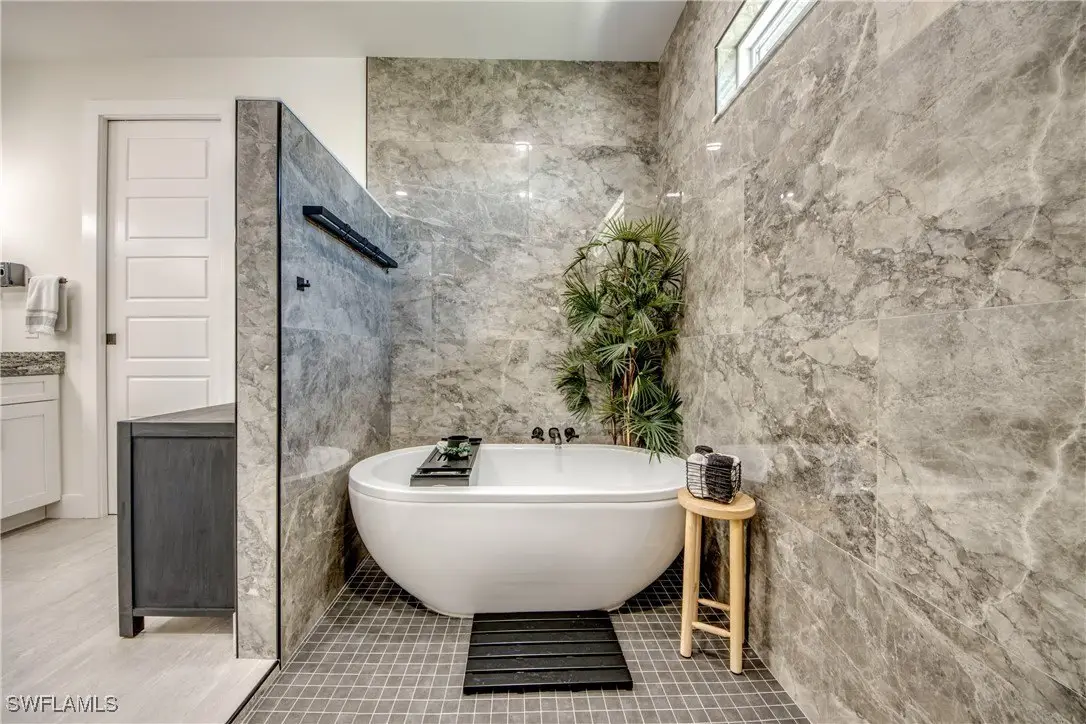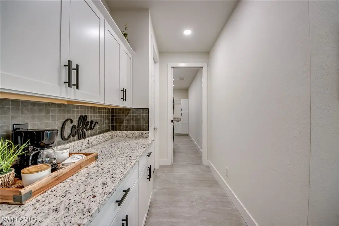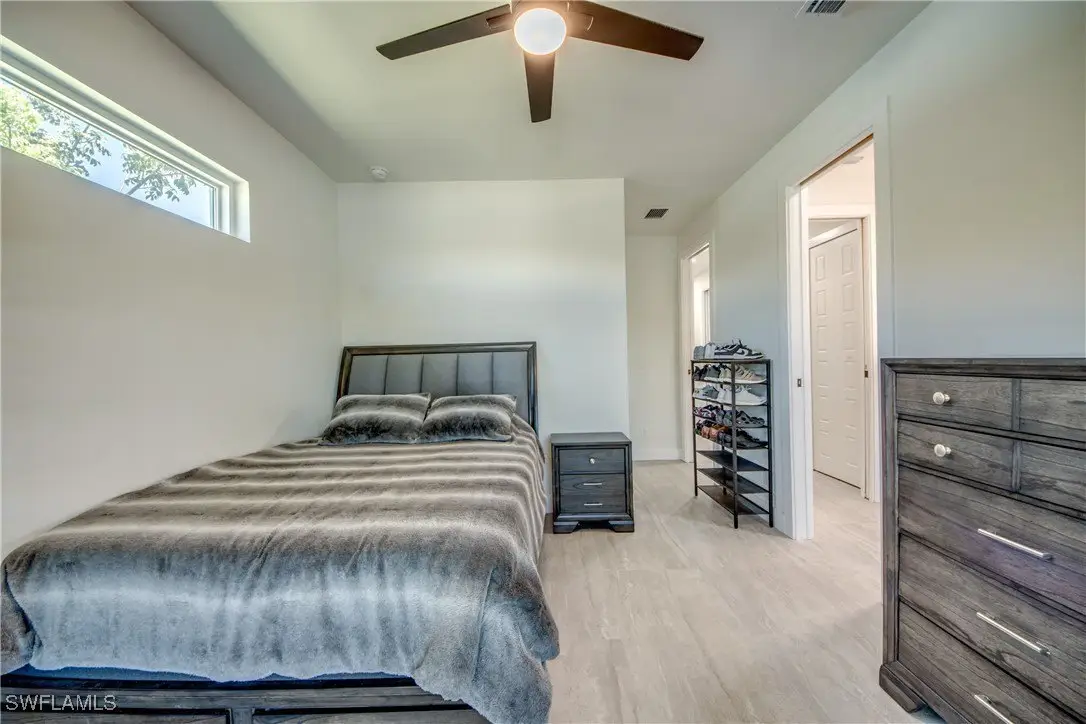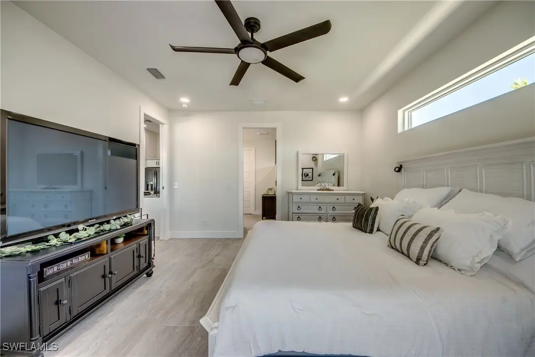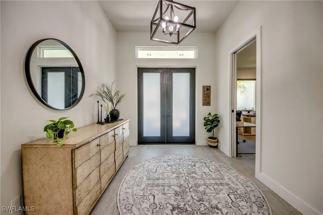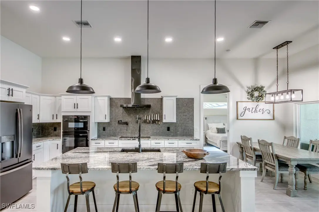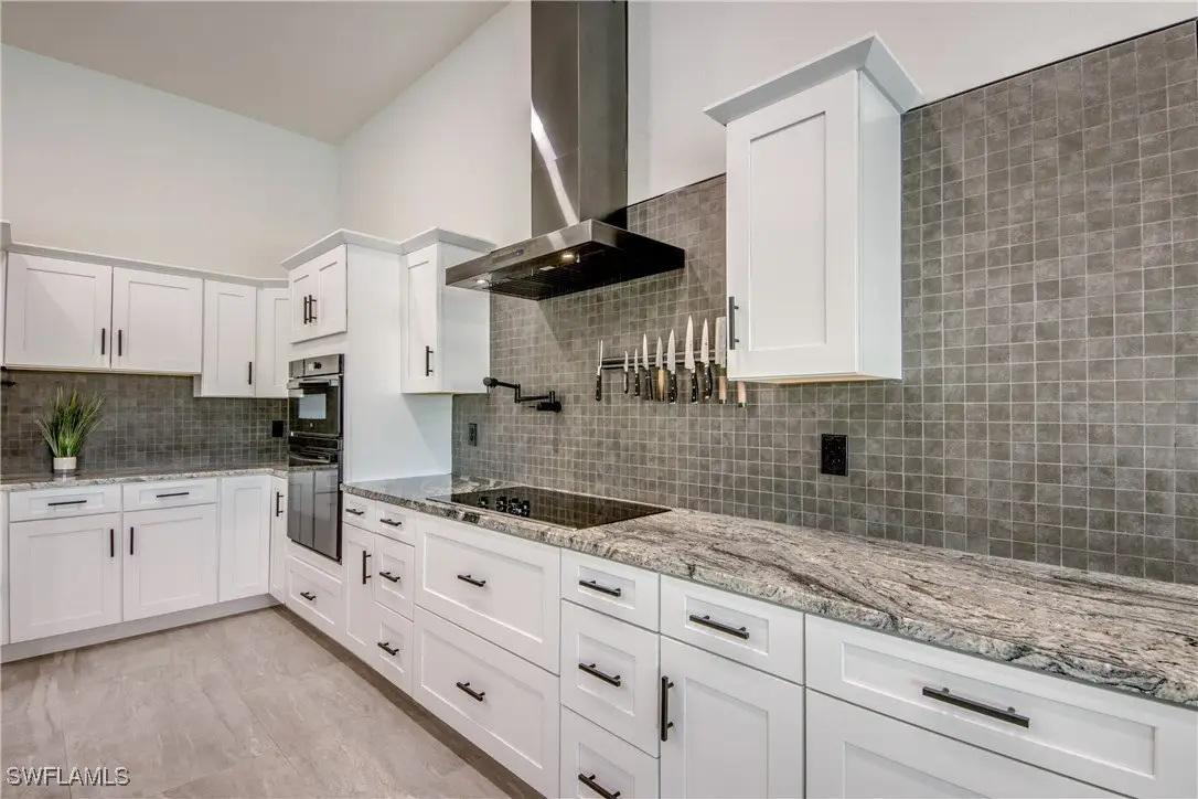 Stunning, 3-lot site custom pool home with over 2600 sq ft and exceptional water views in NW Cape Coral! Built in 2022, this 5 bed/2.5 bath, 1000 sq ft 3-car garage home was built to the highest standards, exceeding Miami/Dade County regulatory codes. LOMR-F has been applied for and will be approved within 60 days. The property will then be labeled "NOT in a Flood Zone". The home is further secured with hurricane impact glass doors and windows and prewired for a whole-house generator. From extra tie trusses to the concrete-filled pool cage uprights reinforced with 5/8 " rebar, the builder spared no expense in safeguarding your future investment! Custom designed from top to bottom and with gorgeous wall to wall windows and sliders, this home offers the very best in luxury waterfront living. From the open-concept chef's kitchen, spacious great room and spa-like primary bath to the backyard oasis, there's something for everyone. Gourmet kitchen features include: a whole home R/O system, an expansive full slab granite island with high top breakfast bar, a black composite double sink and designer backsplash, a convenient pot filler and magnetic knife holder, soft shut cabinetry with wide, pot-holding drawers and a corner Lazy Susan. Additionally, the home uses cable fiber and has a whole house integrated WIFI system and is even wired for network drops. Directly off the kitchen is a delightful butler's pantry and coffee bar with a separate walk-in pantry for food storage. The laundry extends into a multi-use area with a W/D, a 2nd refrigerator, a half bath and sink and a laundry folding and storage station. The primary bedroom is open and airy with lanai access and an ensuite bath that boasts a double vanity and makeup table, a large walk-in closet and a free-standing soaking tub and oversized granite surround shower. The secondary bedroom also enjoys lanai access, a walk-in closet and an ensuite bath that has a pool entrance as well. There are 3 more ample sized guestrooms with one located at the front of the house - perfect for a home office or den. Outdoors is a true boater's paradise! Enjoy the breathtaking, extra-wide and intersecting canal views from the pristine deck, the Captain's Walk and boat dock along with its new canopy cover and 10,000 lb lift. Or enjoy lounging on the expansive lanai and covered patio or taking a dip in the sparkling, heated 12x31 pool with its sun shelf entry, bubblers and swim up granite barstools. Surrounded by lush, mature landscaping in a private and quiet setting. Electrical has been added for an outdoor kitchen and plumbed for an outdoor shower as well as wired for outside security cameras. Endless possibilities to make this home your own. Schedule a private showing today!