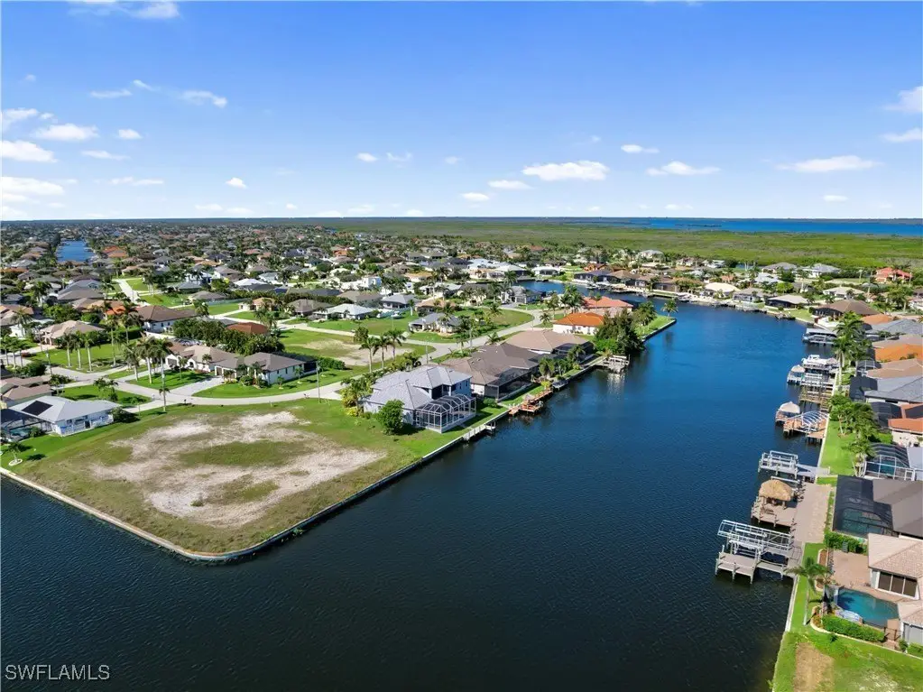 Minutes to Open Water! Beaches Close By! This unique, custom built healthy home features 5 bedrooms plus an office and is a rare gem offering Gulf access via a 210 ft wide canal. It includes a 116 ft concrete seawall and a private dock, is a true haven for boaters and water lovers. Imagine waking up to serene water views and enjoying breakfast by the waterfront. Relax in your private jacuzzi, go kayaking or fishing right from your backyard or take a peaceful boat ride to stunning beaches where you might spot dolphins and manatees! This home offers endless outdoor fun and is conveniently located near A rated schools. Located in one of the most desirable and private neighborhoods in SW Cape Coral, Florida, this safe and friendly community is perfect for walking, biking and enjoying a lifestyle like no other in the world! Designed for elevated waterfront living with peace of mind, this well maintained, solidly built home has never flooded, even during storms or hurricanes. It is designed for both beauty and resilience, with hurricane impact windows on the second floor and shutters on the first. Inside, the home welcomes you with a grand entryway with 17 ft ceilings, ample living space, including a formal living room with 24 ft ceilings and dining room 13 ft ceilings. It offers 5 bedrooms, a large office (or gym) 13 ft tray ceilings, 3.5 bathrooms, a beautiful kitchen with granite countertops and newer appliances, a generous breakfast coffee bar, a water view breakfast nook, a spacious pantry and an area designed for a future elevator, laundry room with cabinets and sink and a 2.5 car garage with 12 ft ceilings. A beautiful staircase connects two loft areas, one on the main level and another upstairs, offering flexible spaces for lounging. The upstairs loft leads to the private, water view primary suite (16x16 ft), which features 10 ft tray ceilings and a screened balcony overlooking the canal. The suite includes his and her walk in closets and a spacious master bath with a large double sink vanity, a third separate vanity with a single sink, a central soaking tub, a large shower with built in seating and a linen closet. Oversized custom pool with a 6 jetted spa and a newer, expansive tall screened lanai, perfect for enjoying serene waterfront views in comfort and style. Inside this lovely home you will have abundant light, storage and generous ceiling heights throughout. Additional spacious driveway that can accommodate up to 7 cars. This waterfront home is a perfect blend of durability, expansive living spaces and waterfront appeal. Just minutes from Cape Harbor, Rumrunners, shops, Tarpon Point Marina, waterfront restaurants, supermarkets, ice cream shops, coffee shops, the post office, pharmacy, medical offices and more. All located in one of the most desirable areas of SW Cape Coral! This is your chance, take it! Schedule your private tour today and experience everything this home has to offer.