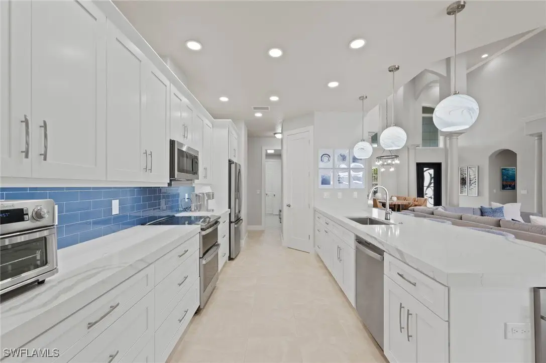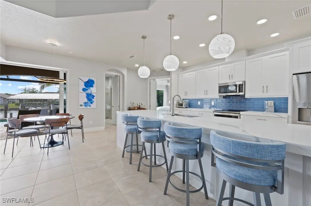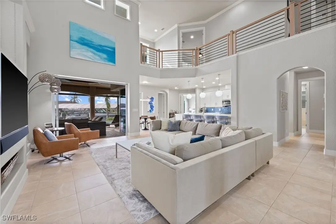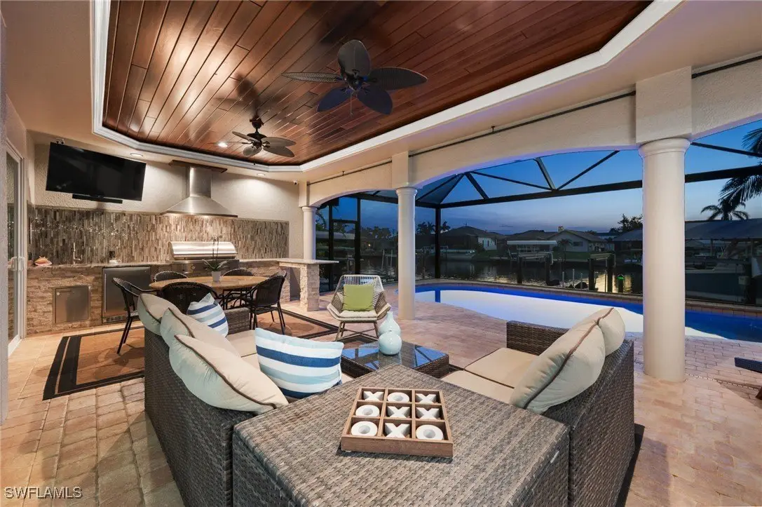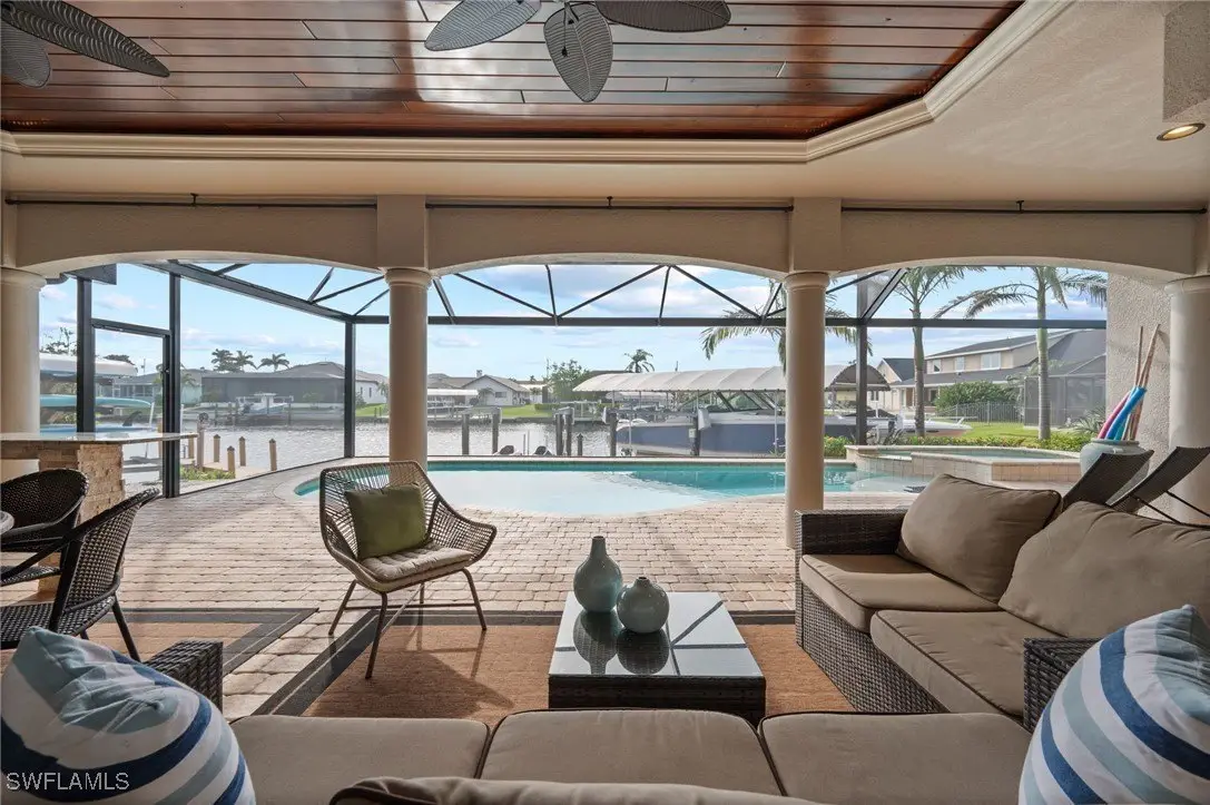 LUXURY GULF ACCESS with SWFL’s unparalleled Sunsets! This stunning saltwater POOL HOME is the perfect place to gather all your family and friends and create lasting memories. Nestled in one of Southwest Cape Coral’s most desirable locations, an elevated experience awaits as you enter inside. Spacious accommodations with nearly 3,800 interior sq. ft. plus expansive lanai, the home has 6 Bedrooms (two primary suites), 4 Bathrooms, a two-story GREAT ROOM with an additional 2nd floor family room and balcony overlooking pool and backyard canal. Featuring a new Chef’s kitchen with high quality QUARTZ countertops, stainless steel appliances, modern cabinetry and ample room for entertaining. Dedicated wine room with 200 bottle wine refrigerator. Designer-appointed touches including newly upgraded solid core interior doors and trim throughout. All Impact Windows and Doors. Brand new A/C and air handler (2024) in primary suite. New tile roof installed in 2023. Beautiful outdoor Kitchen with TEC Infrared Grill. Oversized 3-car garage with automatic locking impact doors and wired for EV charging station. 24/7 monitored security system with remote video access. Full upgrade list available. Flood Insurance is transferable. Indulge in panoramic views from the brand-new multi-level hurricane-rated pool enclosure with picture window screens. The composite dock leads to a 17,000 lb. primary boat lift with 35 ft canopy cover and 30 AMP shore power receptacle, in addition to a 10,000 lb. auxiliary lift for jet skis or 2nd vessel. With easy access to the Gulf, this home is a BOATER'S DREAM, whether you are setting out for a day on the water, heading to the beach, on a fishing excursion or docking at nearby waterfront dining destinations. Walking distance to Tarpon Point’s restaurants, shops and marina. Experience the best of Florida’s LUXURY waterfront living, where western exposure sunsets feel like a masterpiece. This is more than a HOME…it is a Lifestyle!