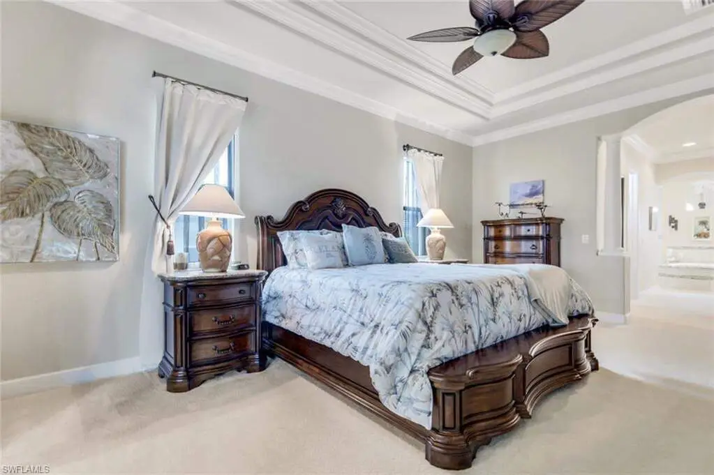 Experience the Ultimate Outdoor Lifestyle in Sunny Southwest Florida! Welcome to your personal tropical oasis! This stunning home features a tiki bar, outdoor kitchen, saltwater pool and spa, and a private dock with a tiki hut and boat lift offering direct Gulf access with no bridges or locks-just minutes to open water! As you arrive, you'll be greeted by a professionally landscaped yard filled with mature greenery, setting the tone for the beauty inside. Step through the elegant double-entry doors, and your eyes will be drawn to the sparkling pool with in-water seating, surrounded by a lush outdoor paradise. Inside, the home boasts tall ceilings, travertine flooring in the main living areas, crown molding, and tray ceilings. The chef in your family will love the dream kitchen, complete with custom wooden cabinetry, granite countertops, a breakfast bar, stainless steel appliances, and a large island with a wine fridge. The kitchen seamlessly flows into the living room, a casual eat-in area with pool views, and a formal dining space-perfect for entertaining. Slide open the glass doors to the expansive tiki bar, where you'll find a custom stone fireplace, charcoal and gas grills, an icemaker, dishwasher, pot filler, and outdoor burners, including a griddle. Relax by the heated (electric and solar) pool, grab a seat at the covered bar to catch your favorite sporting event, or enjoy your morning coffee on the canal-side dock. The primary suite is a serene retreat with access to the lanai, a spacious walk-in closet, and an ensuite bathroom featuring a separate tub and a walk-through shower. The home's split floor plan ensures privacy, with two guest bedrooms-one ensuite and the other adjacent to the pool bath-plus a versatile den/office currently set up as a fourth bedroom. This meticulously maintained home is being sold TURNKEY and exudes pride of ownership throughout. Live the vacation lifestyle every day with 5200 square feet of indoor/outdoor living! Built in 2014 by Frey & Sons, this home has not experienced any flooding. Call today to schedule your private showing and make this tropical retreat yours!