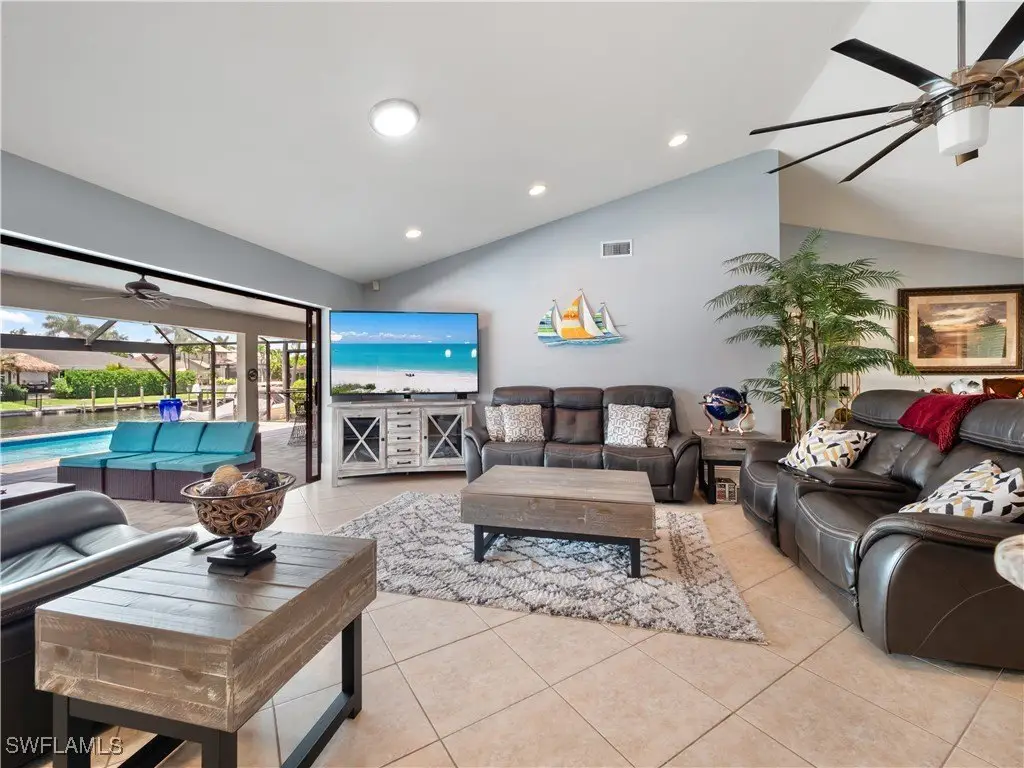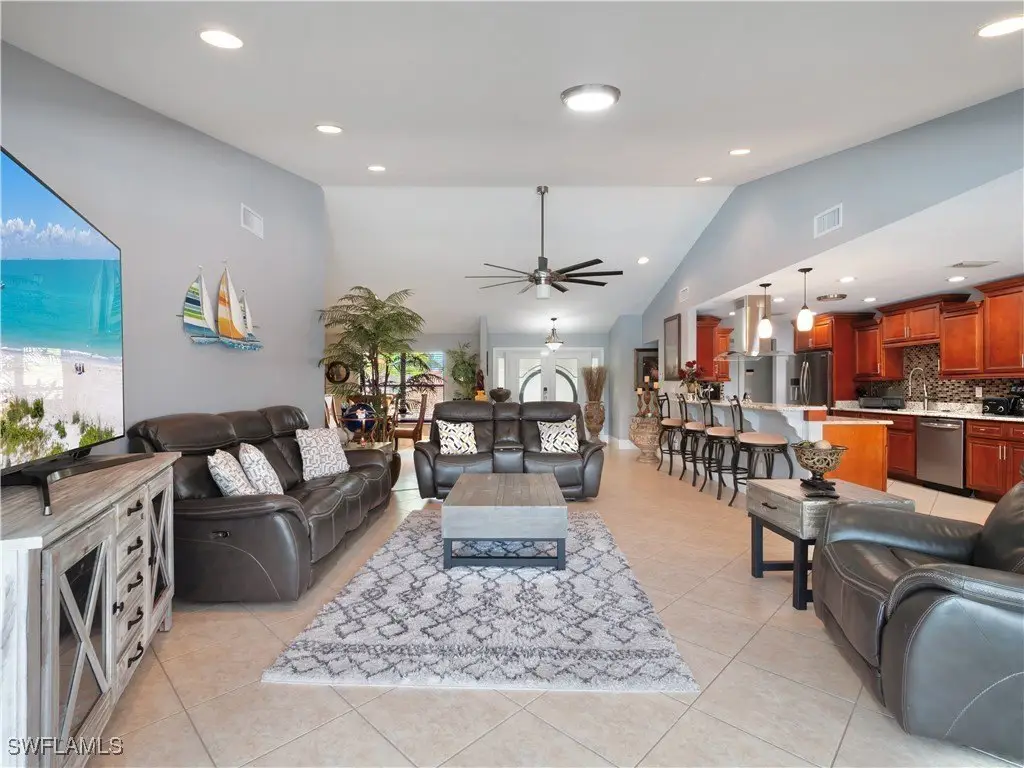 Sailboat Access Living Near Cape Harbour - Boater's Paradise with Oversized Pool & Updates! Welcome to one of the best boating locations in Southwest Florida! This sailboat-access pool home is perfectly situated within walking distance to the vibrant Cape Harbour Marina, offering quick Gulf access and an unmatched lifestyle. Step inside to an expansive open floor plan designed for effortless entertaining and everyday comfort. The kitchen is a chef's delight, featuring granite countertops, soft-close cherry wood cabinetry, and a large breakfast bar that flows into both casual and formal dining spaces. The spacious primary suite offers direct access to the lanai and pool area, a generous walk-in closet, and a luxurious ensuite bathroom with a jetted tub, double sinks, and a separate walk-in shower. A flexible guest room with French doors opening to the pool makes for an ideal office, guest retreat, or hobby space. Enjoy year-round outdoor living with a new panoramic pool cage, heated LED-lit pool, and updated paver driveway. The roof was replaced in 2019, and the A/C was updated in 2017-providing peace of mind for years to come. Located close to waterfront dining, shops, and Southwest Florida's world-renowned beaches, this is more than a home-it's a gateway to the Florida lifestyle. Don't miss your chance to own in one of Cape Coral's most desirable sailboat-access neighborhoods. Schedule your private showing today!