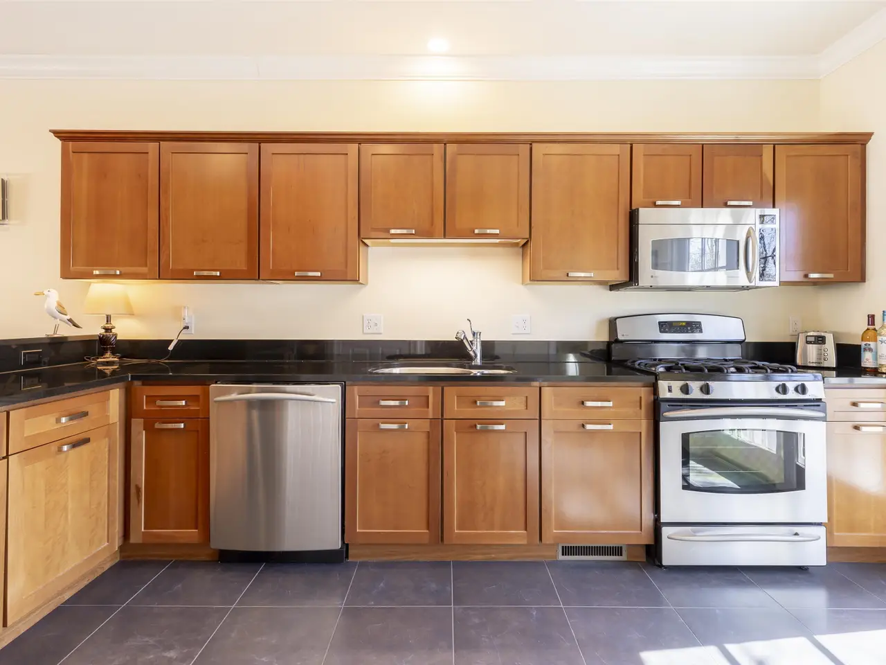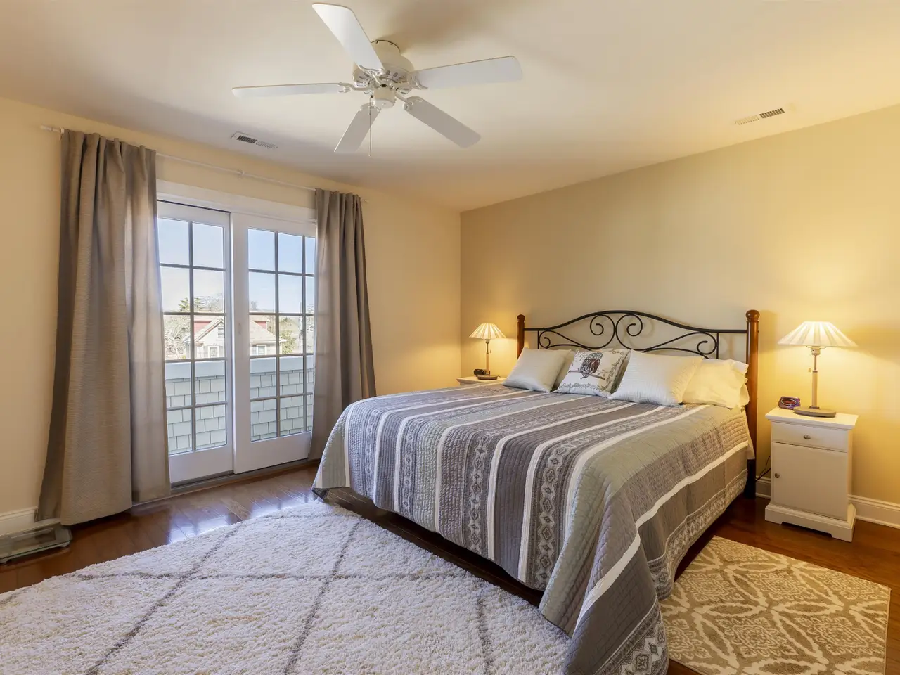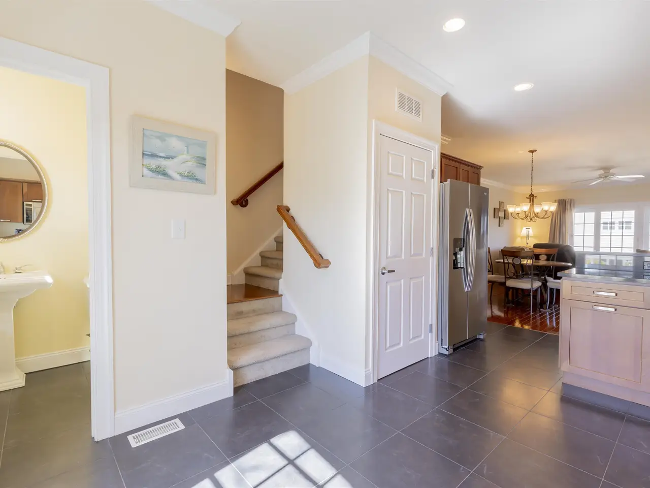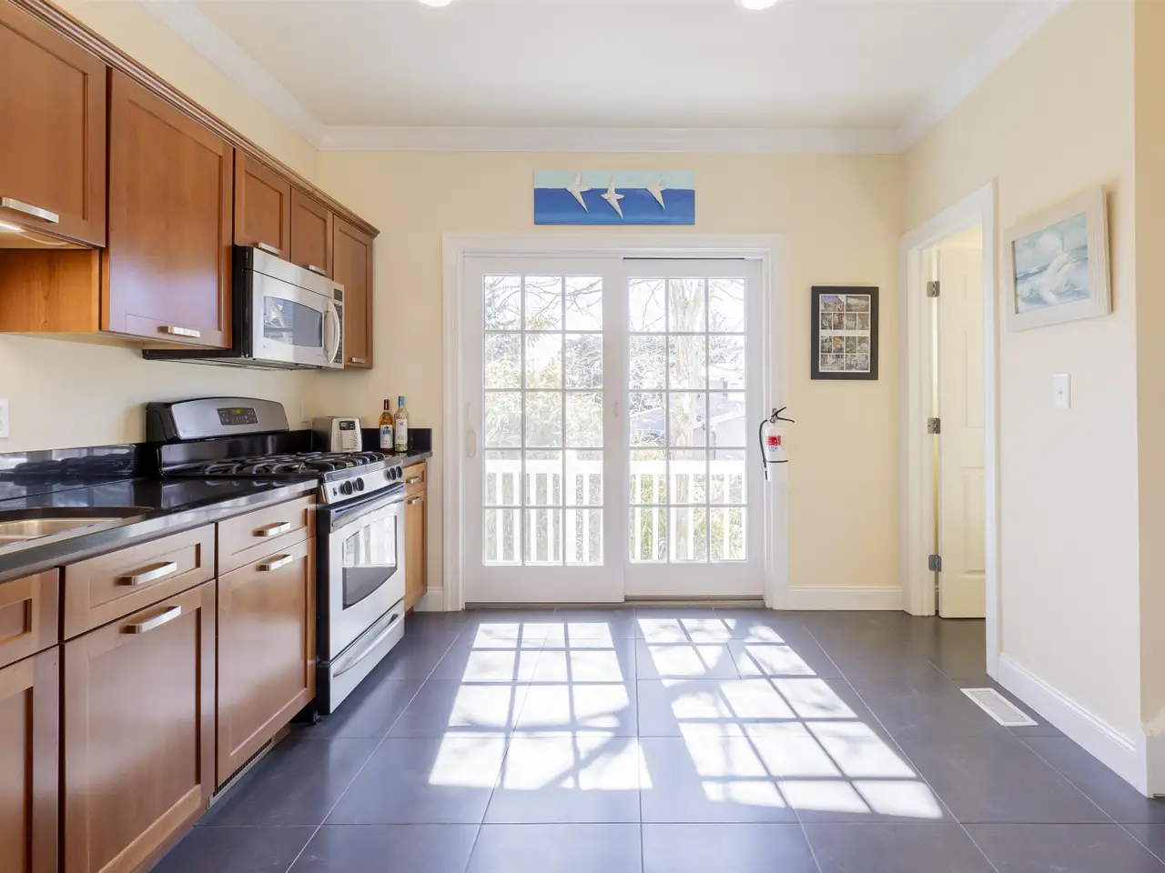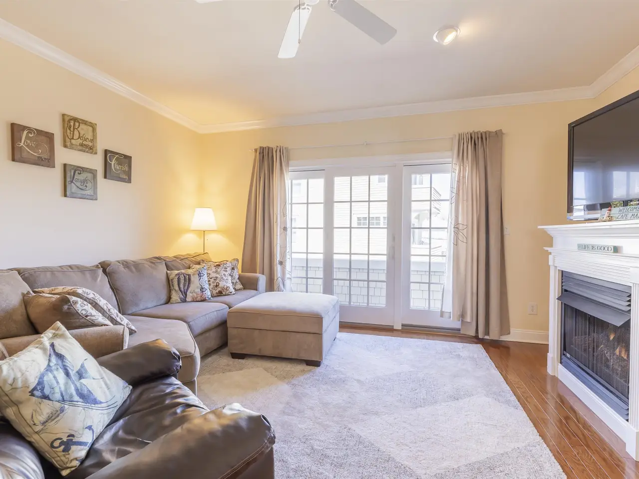 This exceptional 2-bedroom, 2.5-bath townhouse offers the perfect blend of comfort, style, and functionality. One of just six exclusive units in Quinn's Court, this home is ideally located within walking distance to the town center and a short bike ride to the beach. Built in 2004 by WKR Construction Company, it remains in like-new condition, showcasing superior craftsmanship and thoughtful design. The main level features an inviting open floor plan with a modern kitchen, quartz countertops, stainless steel appliances, a gas range, and a chic slate floor. The dining and living areas are enhanced by beautiful hardwood floors and a cozy gas fireplace, perfect for relaxing evenings. A powder room and 2 private decks complete this level, providing additional space for indoor-outdoor living. Upstairs, the primary suite boasts stylish decor, an en-suite bath, and a private deck for morning coffee or evening unwinding. A second spacious bedroom, also with a private deck, and a full bath round out the upper level. The ground level offers a versatile oversized garage, large enough for your vehicle and an additional hangout or game area for the family. Additional highlights include an outdoor shower for post-beach refreshment, professionally landscaped surroundings that enhance the charm of the community, and recent association upgrades, including new roofs for peace of mind. This is a rare opportunity to own a meticulously maintained townhouse in a prime location-ideal for year-round living or a perfect beach getaway!