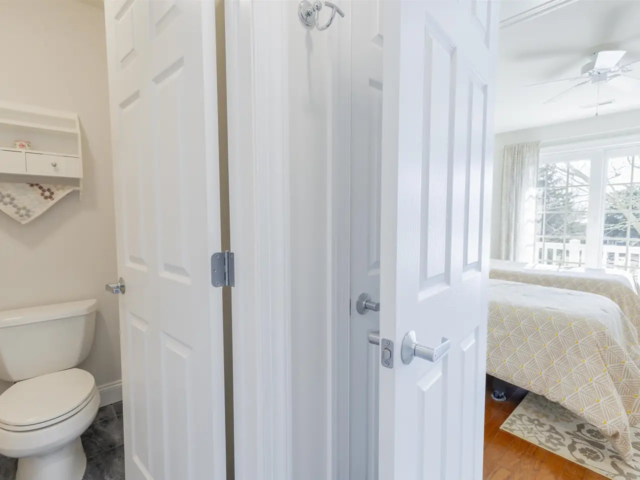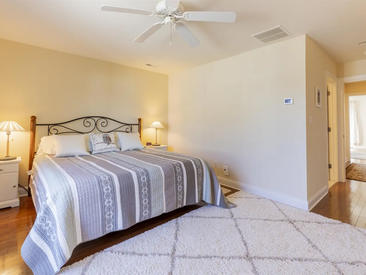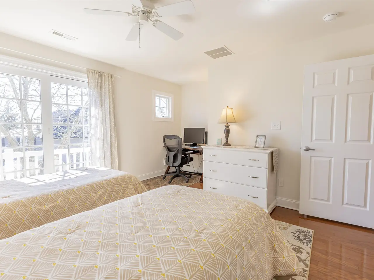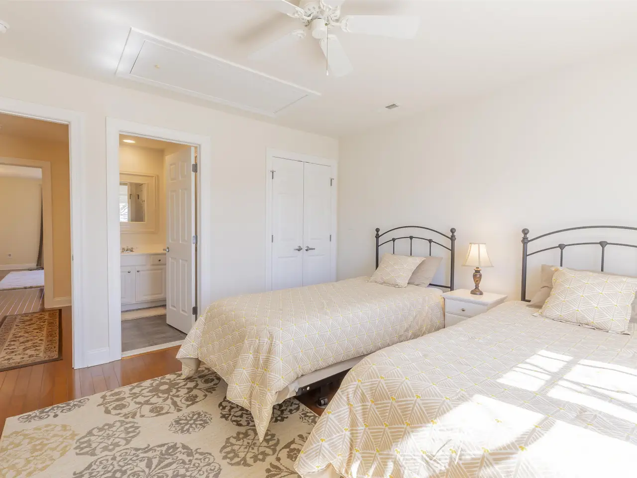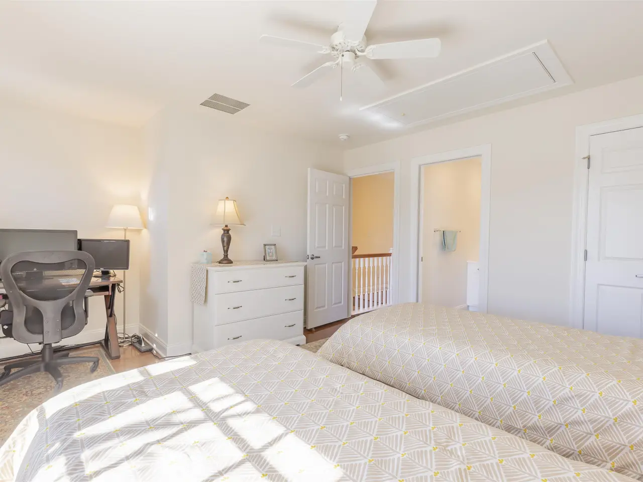 This exceptional 2-bedroom, 2.5-bath townhouse offers the perfect blend of comfort, style, and functionality. One of just six exclusive units in Quinn's Court, this home is ideally located within walking distance to the town center and a short bike ride to the beach. Built in 2004 by WKR Construction Company, it remains in like-new condition, showcasing superior craftsmanship and thoughtful design. The main level features an inviting open floor plan with a modern kitchen, quartz countertops, stainless steel appliances, a gas range, and a chic slate floor. The dining and living areas are enhanced by beautiful hardwood floors and a cozy gas fireplace, perfect for relaxing evenings. A powder room and 2 private decks complete this level, providing additional space for indoor-outdoor living. Upstairs, the primary suite boasts stylish decor, an en-suite bath, and a private deck for morning coffee or evening unwinding. A second spacious bedroom, also with a private deck, and a full bath round out the upper level. The ground level offers a versatile oversized garage, large enough for your vehicle and an additional hangout or game area for the family. Additional highlights include an outdoor shower for post-beach refreshment, professionally landscaped surroundings that enhance the charm of the community, and recent association upgrades, including new roofs for peace of mind. This is a rare opportunity to own a meticulously maintained townhouse in a prime location-ideal for year-round living or a perfect beach getaway!