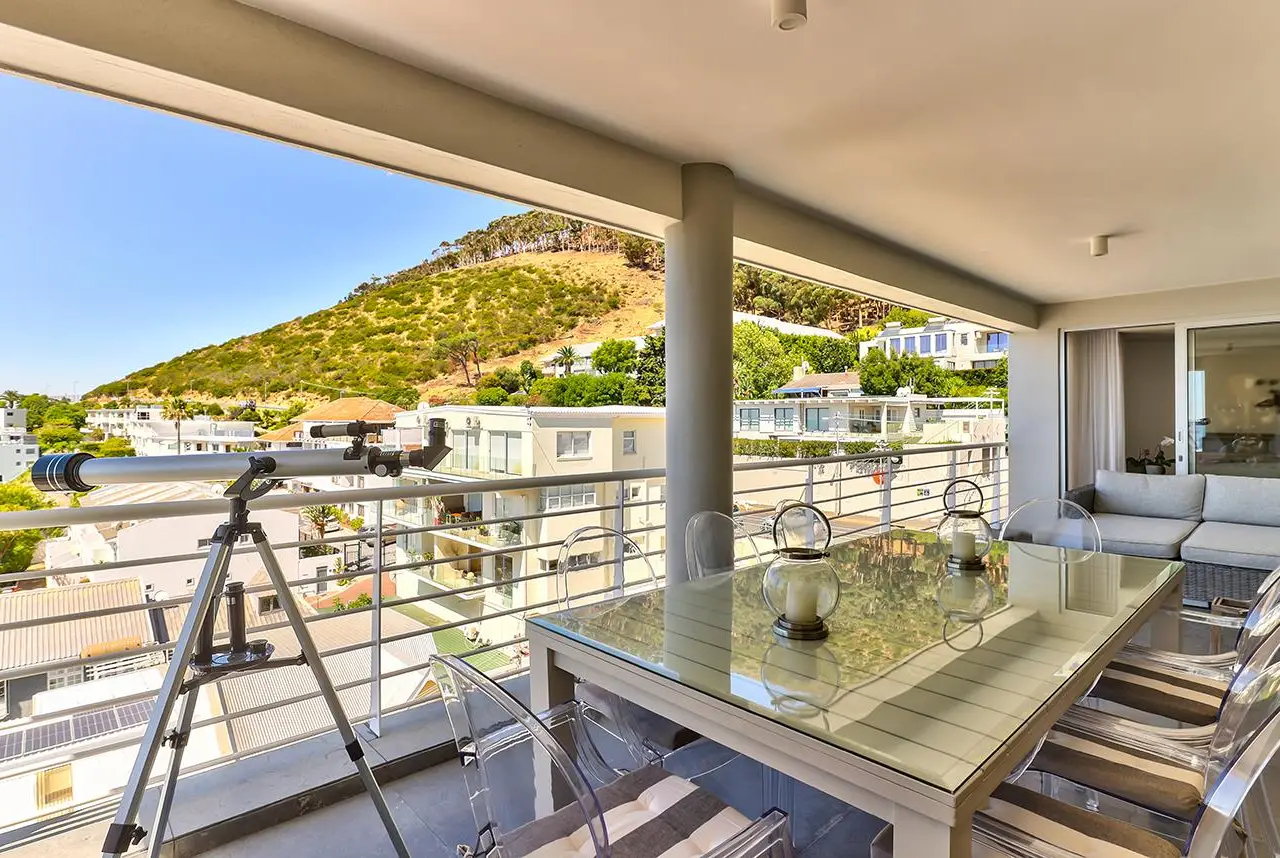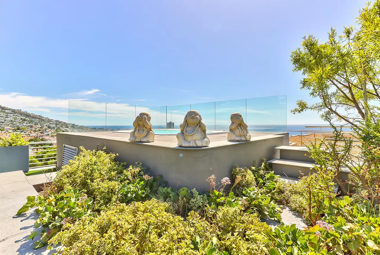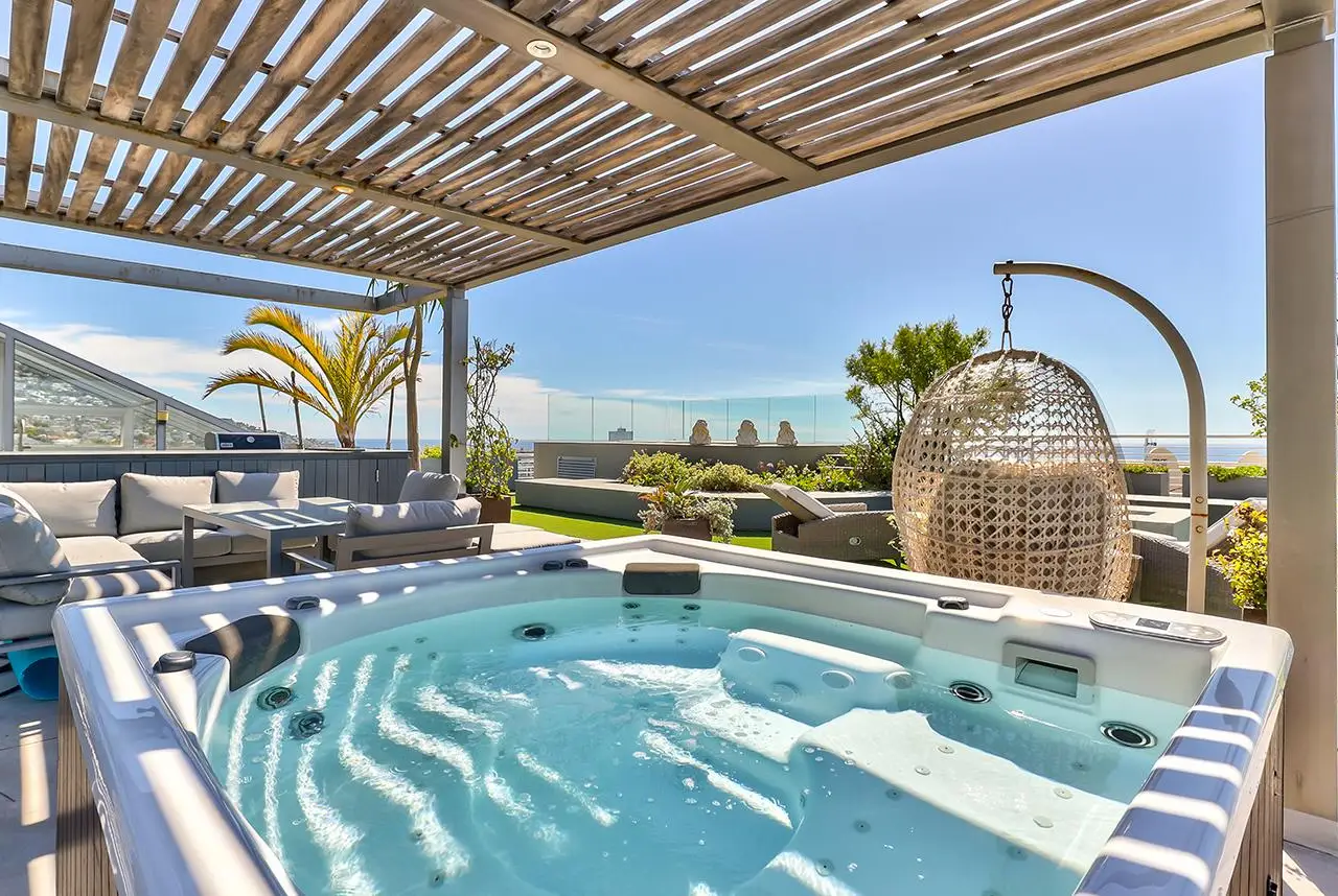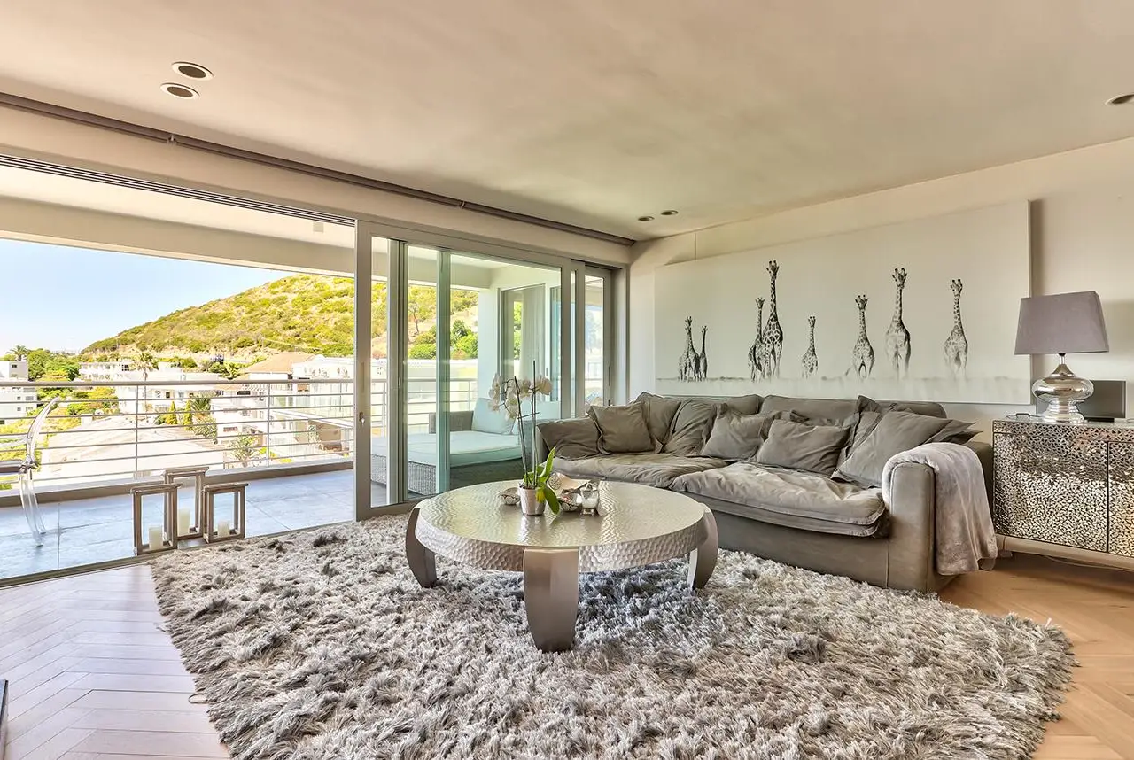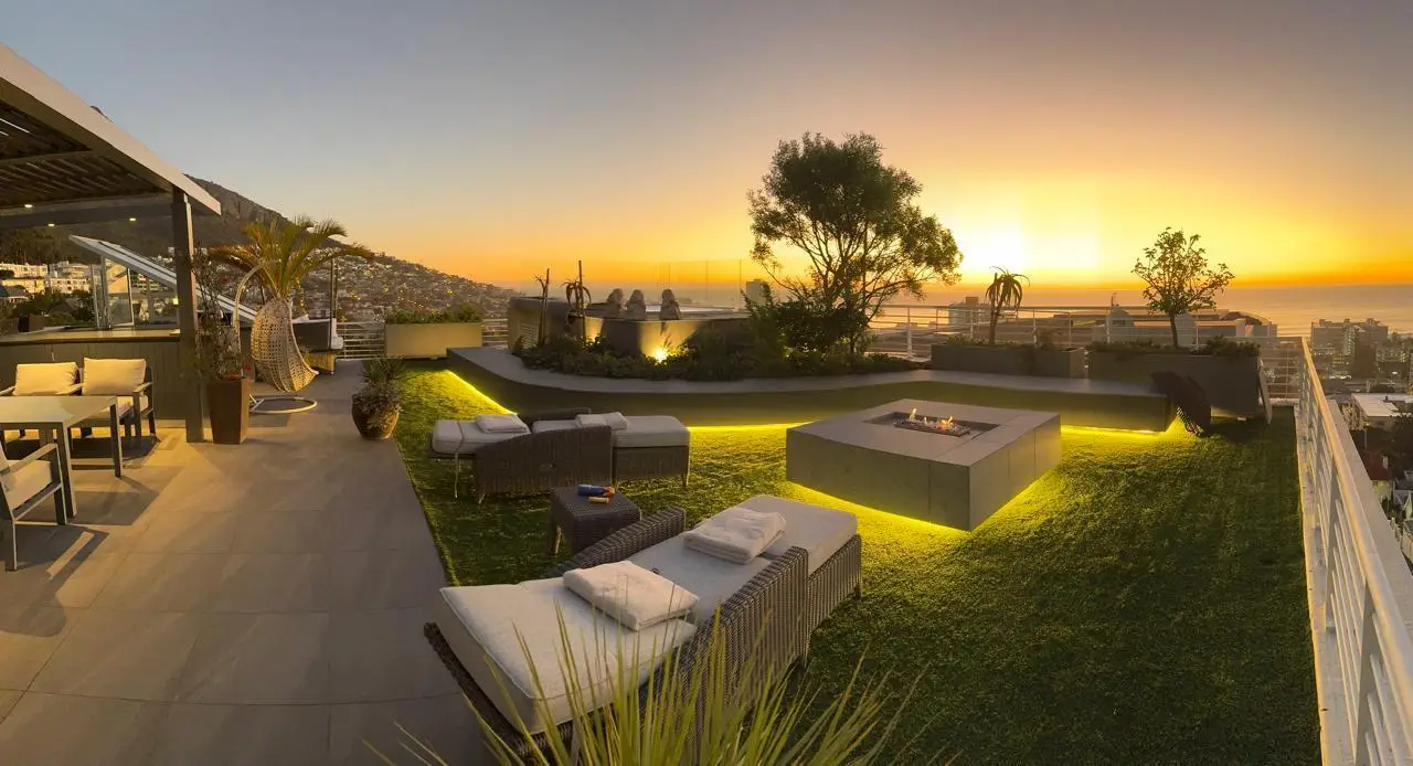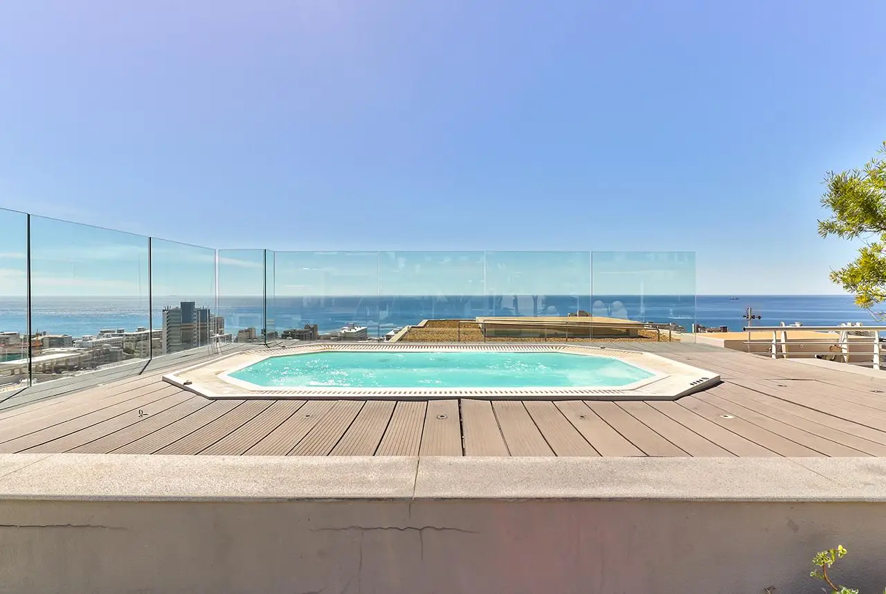 Luxury Penthouse offering 171m2 rooftop terrace with pool, jacuzzi and 360 degree ocean-áand mountain views Exclusive Mandate Located at the foot of Signal Hill, this elegant and light-flooded two-bedroomed penthouse apartment on the top floor has the most amazing views of the ocean, Lions Head and Signal Hill. The open-plan lounge, dining and kitchen area with caesarstone countertops and SMEG gas hob, oak wood flooring, fireplace and ceiling-to-floor stacking doors seamlessly flow onto a spacious covered veranda with a built in braai, taking in the spectacular views of the Atlantic Ocean. The absolute wow factor of this apartment is the 360 degree view of the ocean and mountains from your upstairs 171m2 rooftop terrace. Sit in the heated pool or Jacuzzi sipping on an Aperol's-áand enjoy the amazing views and spectacular sunsets over the sea. With a built in gas braai this is the perfect place for entertaining your guests or unwinding after a long day. The beautifully appointed en-suite main bedroom with a fireplace has sweeping ocean views as well, with direct access to the veranda. The open plan bathroom comes with a free standing bath, enormous walk in shower and a separate toilet. The second en-suite bedroom overlooks Lions Head and the ocean. Guest loo, small office plus brand new inverter. Option to purchase furniture. No AirBnB. Regret no pets. Two undercover parking spaces plus a storeroom. This unique apartment will make you feel like you are on a permanent holiday.