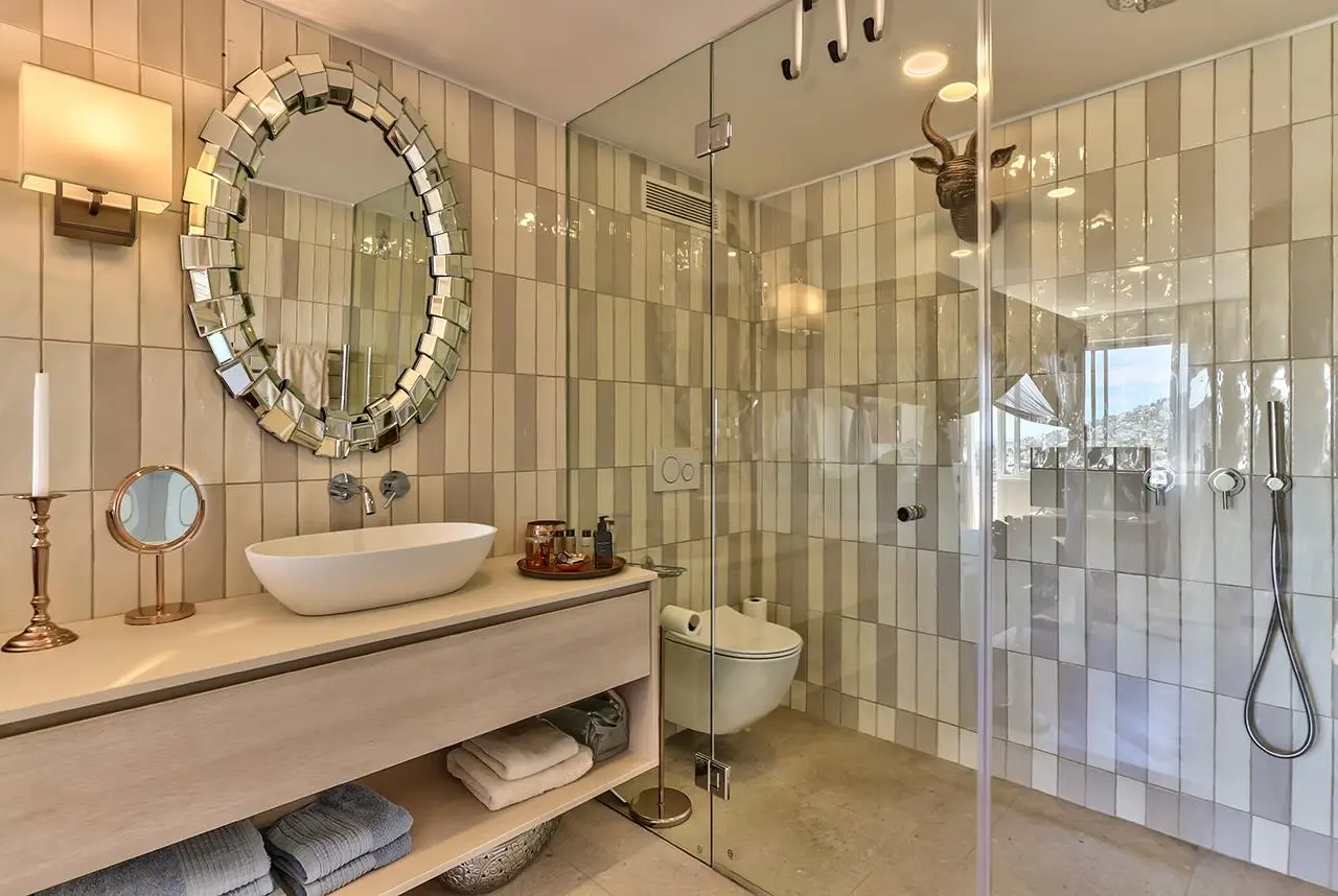 Free-standing bath & walk-in shower in main bathroom