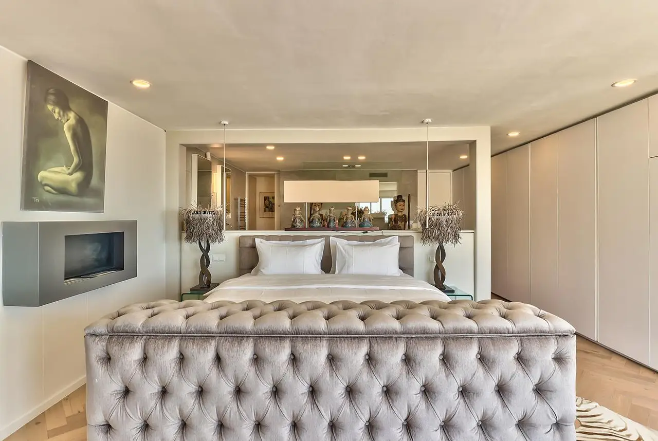 Sweeping ocean views from main bedroom with fireplace