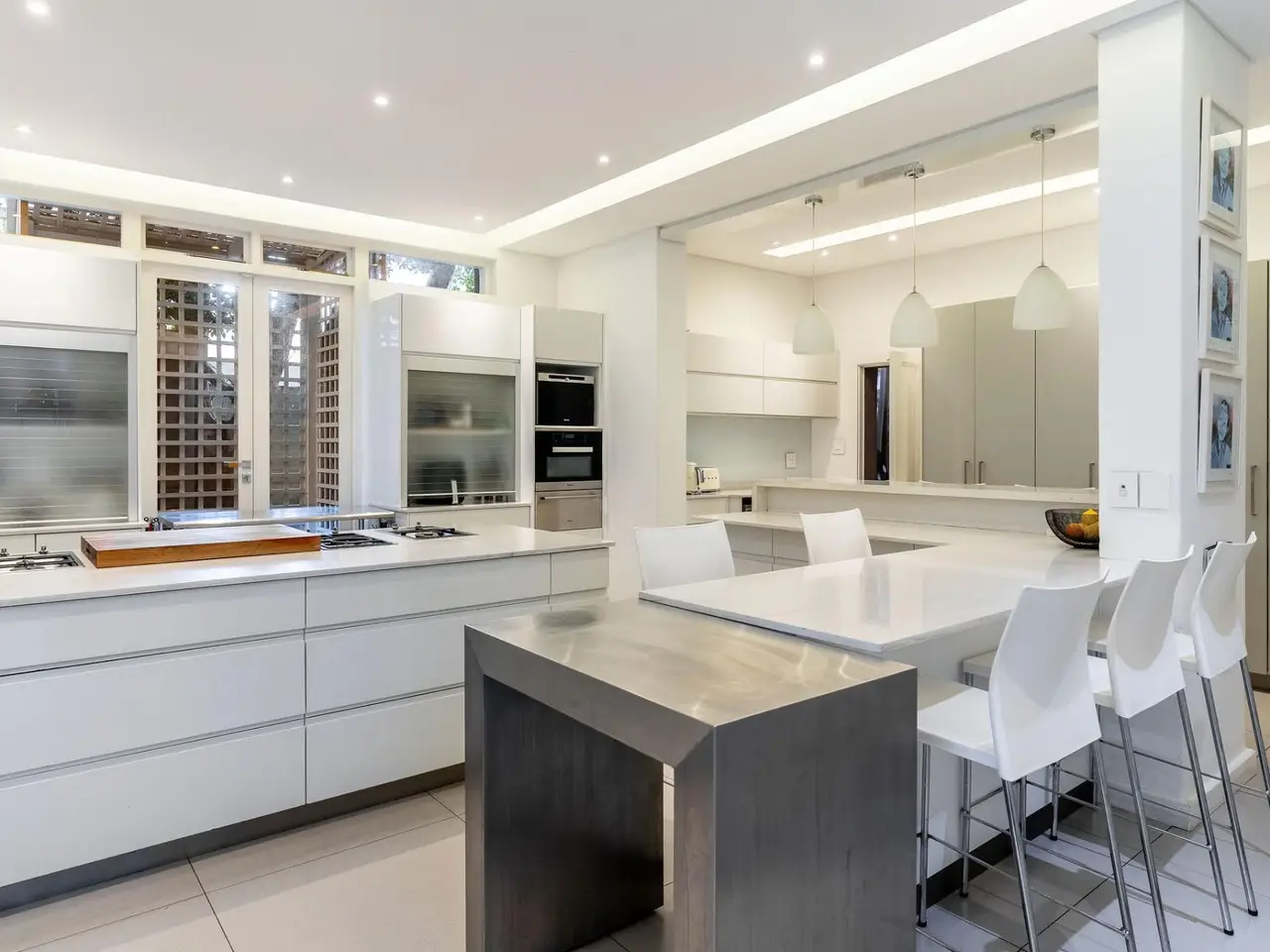 Experience TIMELESS ELEGANCE in this splendid Manor home with high ceilings and grand, fireplaces in most of the rooms. Located in a sought-after Fresnaye, this residence seamlessly combines classic charm with modern comfort. As you enter through the gates, you'll be greeted by a beautifully landscaped landscaped front garden with a gazebo and a sparkling swimming pool, creating a serene oasis. The grand entrance hall features a private lounge area with a bar and a classic fireplace, perfect for cozy evenings. The spacious dining hall with high ceilings is ideal for hosting large gatherings. The dining hall has french doors that open onto an undercover entertainment terrace and a sunny patio overlooking the garden and pool set in beautifully serene surroundings. The substantial kitchen is a chef's dream, and there are separate laundry and scullery areas. Upstairs, a staircase leads to four spacious bedrooms, each with its own en-suite bathroom and fireplace. Two of the bedrooms have private sunny balconies and the master en suite is grande and offers a gorgeous double-sided gas fireplace, reading lounge and doors leading out to small Juliette balcony. Notable features include ample storage space, an inverter for uninterrupted power supply, excellent security, wooden flooring, a double garage and covered parking for up to four vehicles in the driveway. Don't miss the chance to make this exceptional Manor home yours. Schedule your private viewing today with Cathryn New or Jessica Ross.