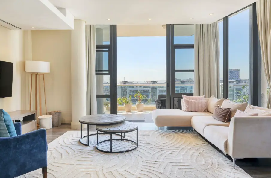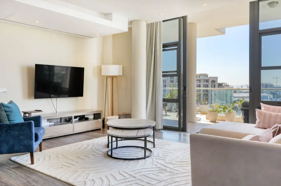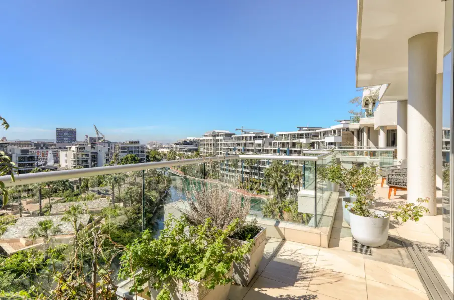 This luxurious 3-bedroom, 3-bathroom apartment is perfectly positioned in the prestigious Marina Residential Estate, nestled within the vibrant V&A Waterfront. Boasting a generous layout and flooded with natural light, this home features a spacious open-plan living and dining area, leading to a large private balcony that overlooks the canals and overlooks the yacht basin of the marina, an idyllic setting. Each bedroom is elegantly designed, with two enjoying en-suite bathrooms. The sleek, modern open plan kitchen caters perfectly to everyday living An exceptional feature is the private plunge pool, offering cooling comfort and mountain views. Additional perks include two secure parking bays, a storeroom, and convenient lift access. Located within one of Cape Town’s most secure and desirable residential estates, this apartment places you within walking distance of world-class shopping, dining, and the iconic harbor. A rare opportunity to experience a premium lifestyle in one of the city’s most coveted locations.