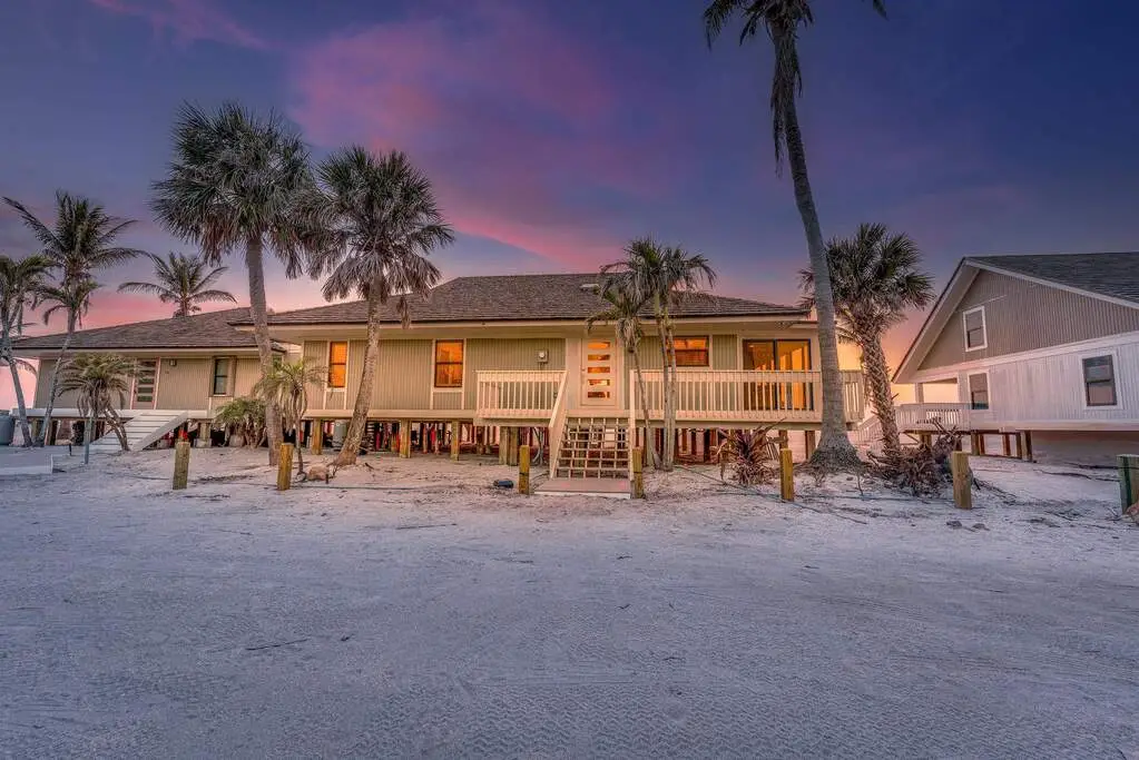 Experience unparalleled luxury and coastal elegance at 19 Beach Homes, a stunning direct Gulf-front, elevated, 3 Bedroom + Den, 3 Bathroom residence situated within on the coastline of Captiva. Completely redesigned and renovated in 2022, this breathtaking home offers top-of-the-line finishes and modern upgrades that blend seamlessly with the serene, natural beauty of its beachfront setting. Step inside to discover an open-concept living space adorned with luxury vinyl flooring, setting the tone for both durability and sophisticated charm. The custom floating staircase serves as a striking architectural centerpiece, enhancing the home's modern aesthetic while maximizing space and light. Designed for both style and functionality, the kitchen boasts custom wood cabinetry, thick quartz cabinetry, high-end stainless steel appliances, and a gas cooktop...Gulf-front cooking at its finest! The coastal-inspired furnishings create a relaxed yet refined atmosphere, perfectly complementing the breathtaking views from nearly every room. Expansive impact-resistant windows flood the home with natural light while providing peace of mind and energy efficiency. Step outside onto the composite decking, where you can unwind and take in the gentle sea breeze or enjoy direct beach access just steps away. Nestled inside the gated South Seas Resort, this exceptional property offers unmatched privacy and access to pristine Florida beaches. Whether you're looking for a serene retreat or a luxurious investment opportunity, 19 Beach Homes is a rare gem that perfectly captures the essence of Gulf-front living on Captiva Island.