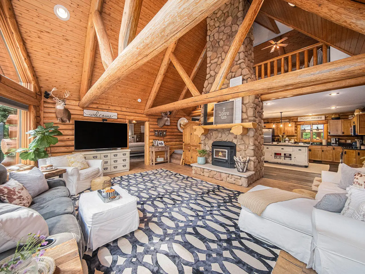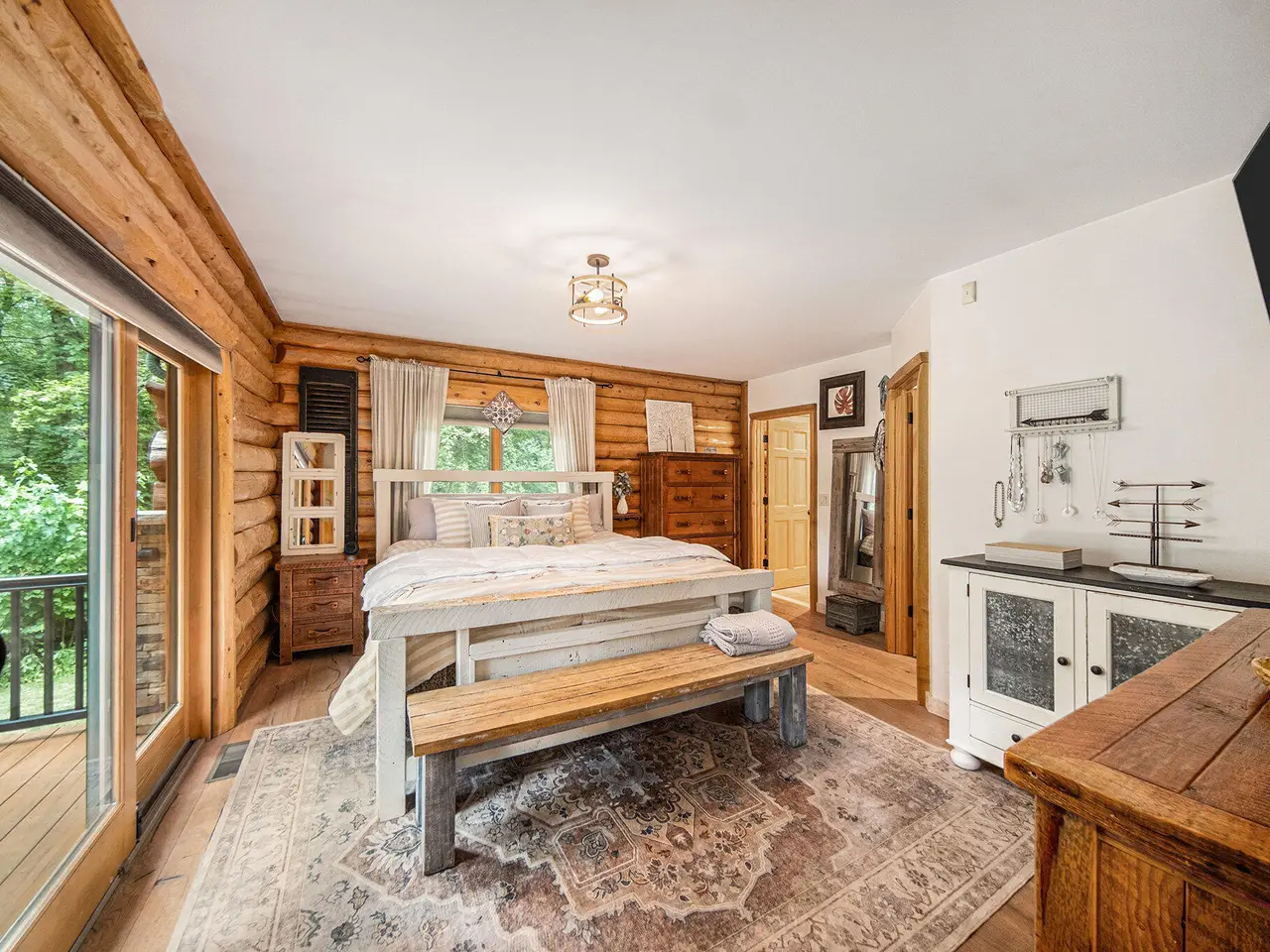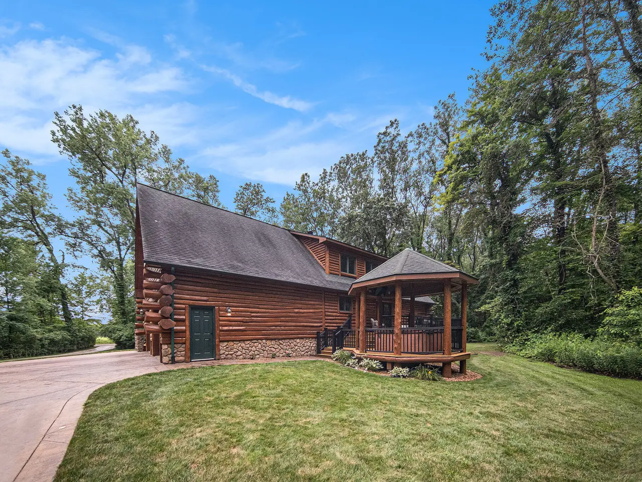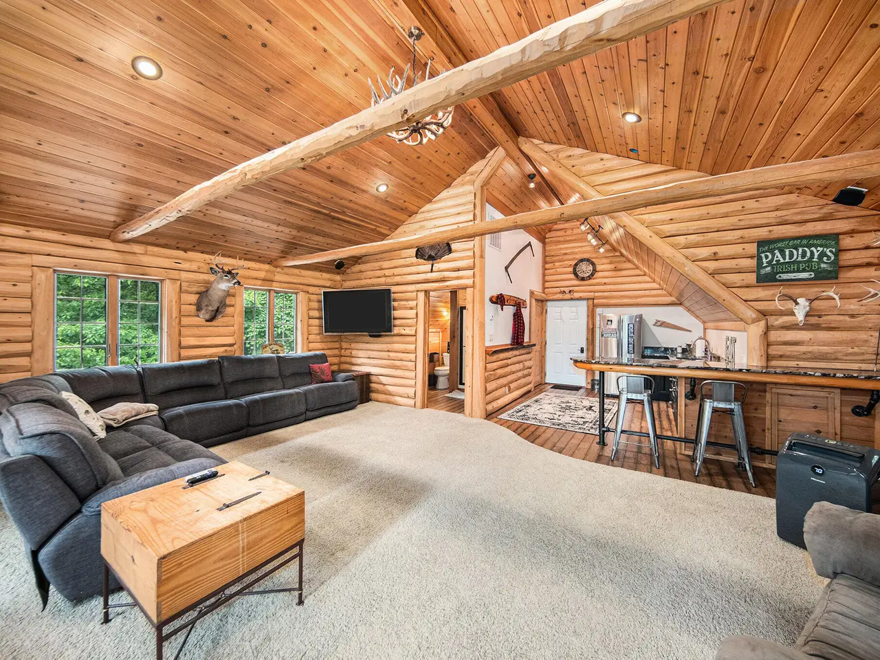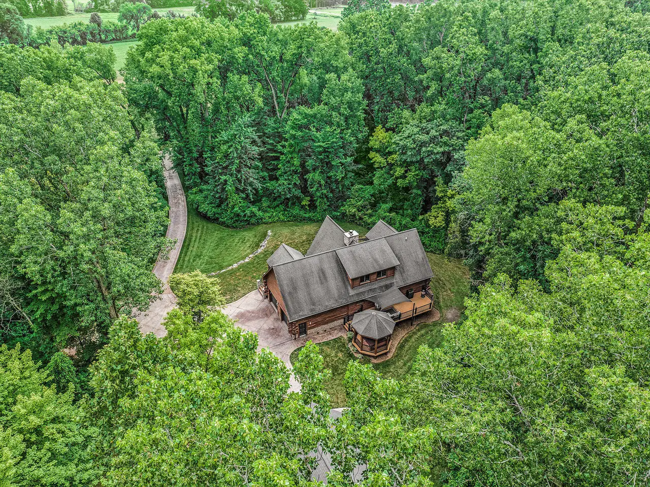 Log by Log, inch by inch, this custom-built white cedar home is love at first sight!! Unique in every way, and built with the utmost Care and meticulous Design. Located on a private 2.5 acre sanctuary, with over 3800sqft. of luxury living space. The main level has floor to ceiling Windows to maximize the natural light throughout and scenic view. Exposed wooden beams, a showcase Stone Fireplace and 10'' Oak Plank Flooring. A 1st floor primary Suite w/a Spa Tub, w/i Shower and door wall leading to the wrap-around Porch. Large 2nd floor loft area with 2 addt'l Bedrooms, Office, full Bath and then off to the finished Basement that screams entertainment! A secondary 28by40 Outbuilding built as a mechanics DREAM and an upper Suite to amazing to describe. Best said, this home is a 'WOW'