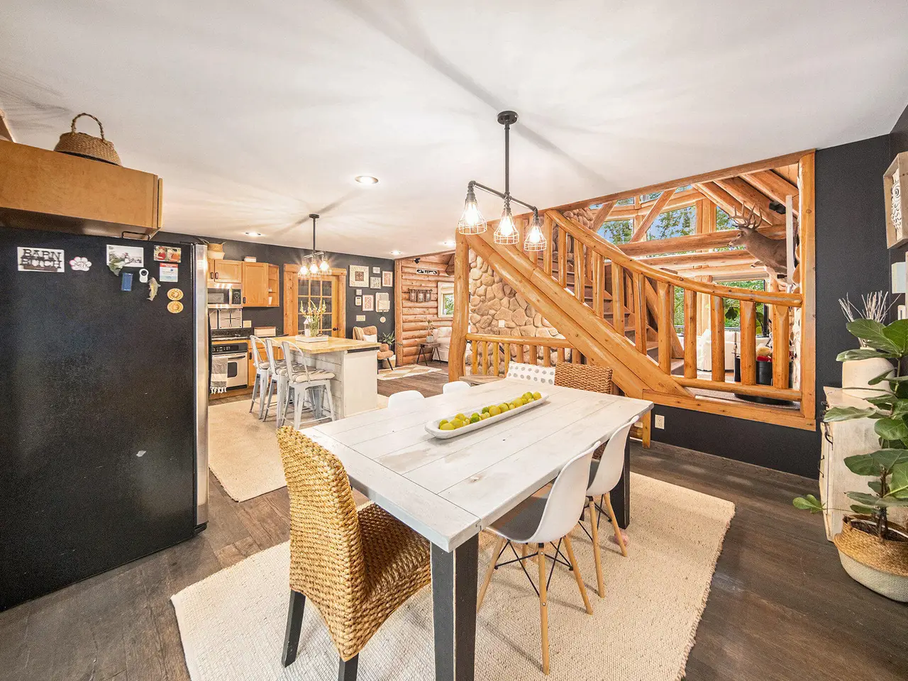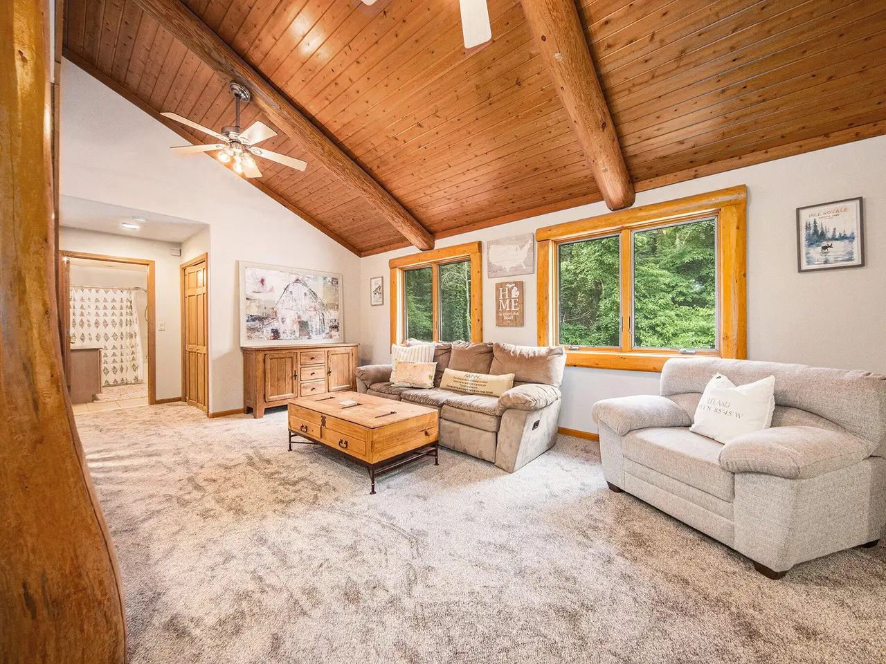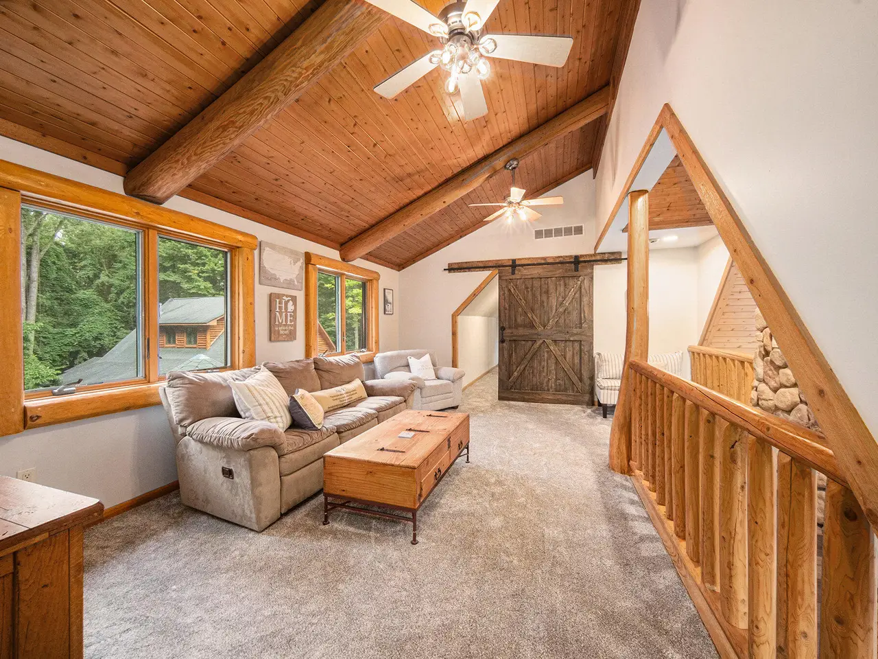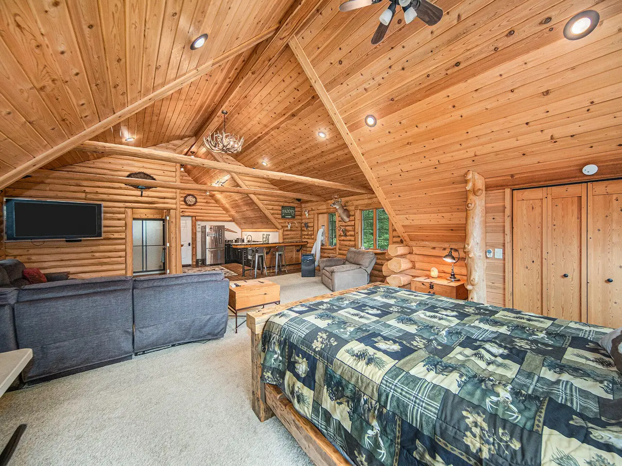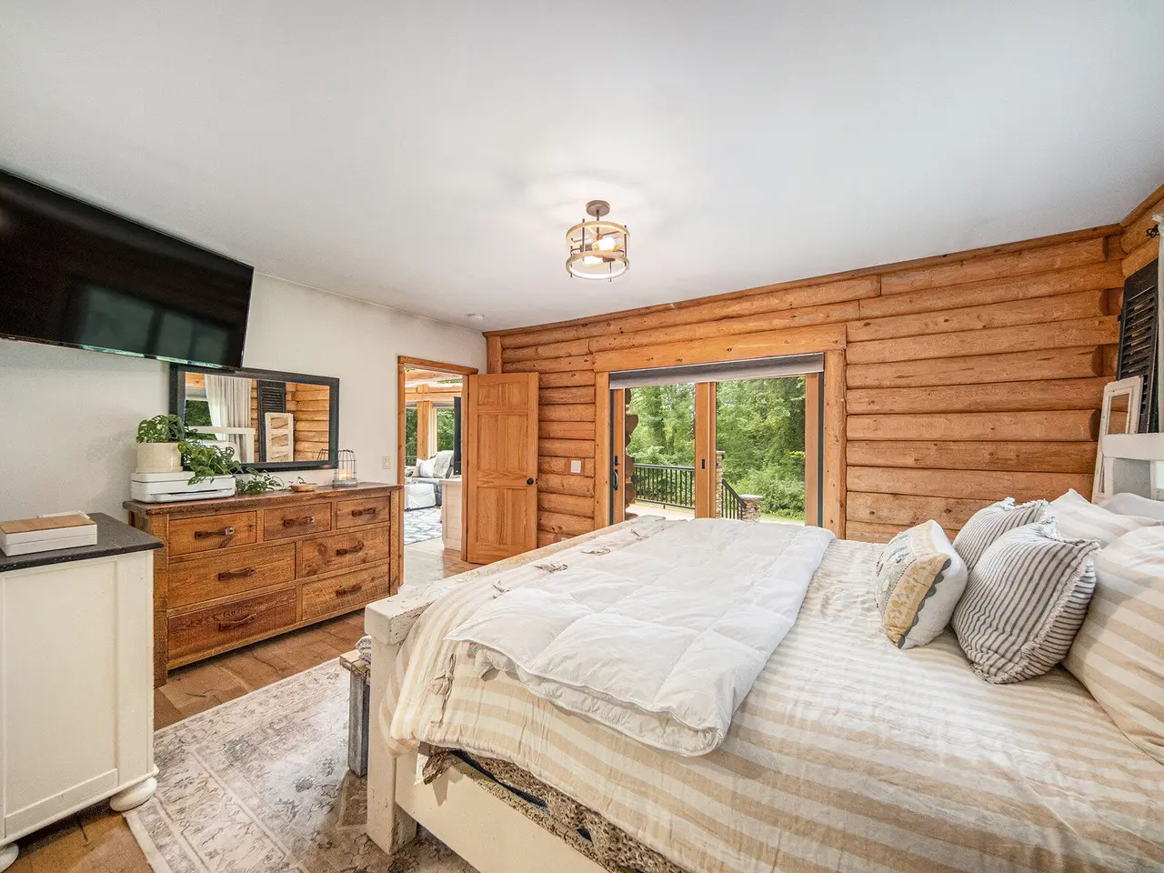 Log by Log, inch by inch, this custom-built white cedar home is love at first sight!! Unique in every way, and built with the utmost Care and meticulous Design. Located on a private 2.5 acre sanctuary, with over 3800sqft. of luxury living space. The main level has floor to ceiling Windows to maximize the natural light throughout and scenic view. Exposed wooden beams, a showcase Stone Fireplace and 10'' Oak Plank Flooring. A 1st floor primary Suite w/a Spa Tub, w/i Shower and door wall leading to the wrap-around Porch. Large 2nd floor loft area with 2 addt'l Bedrooms, Office, full Bath and then off to the finished Basement that screams entertainment! A secondary 28by40 Outbuilding built as a mechanics DREAM and an upper Suite to amazing to describe. Best said, this home is a 'WOW'
