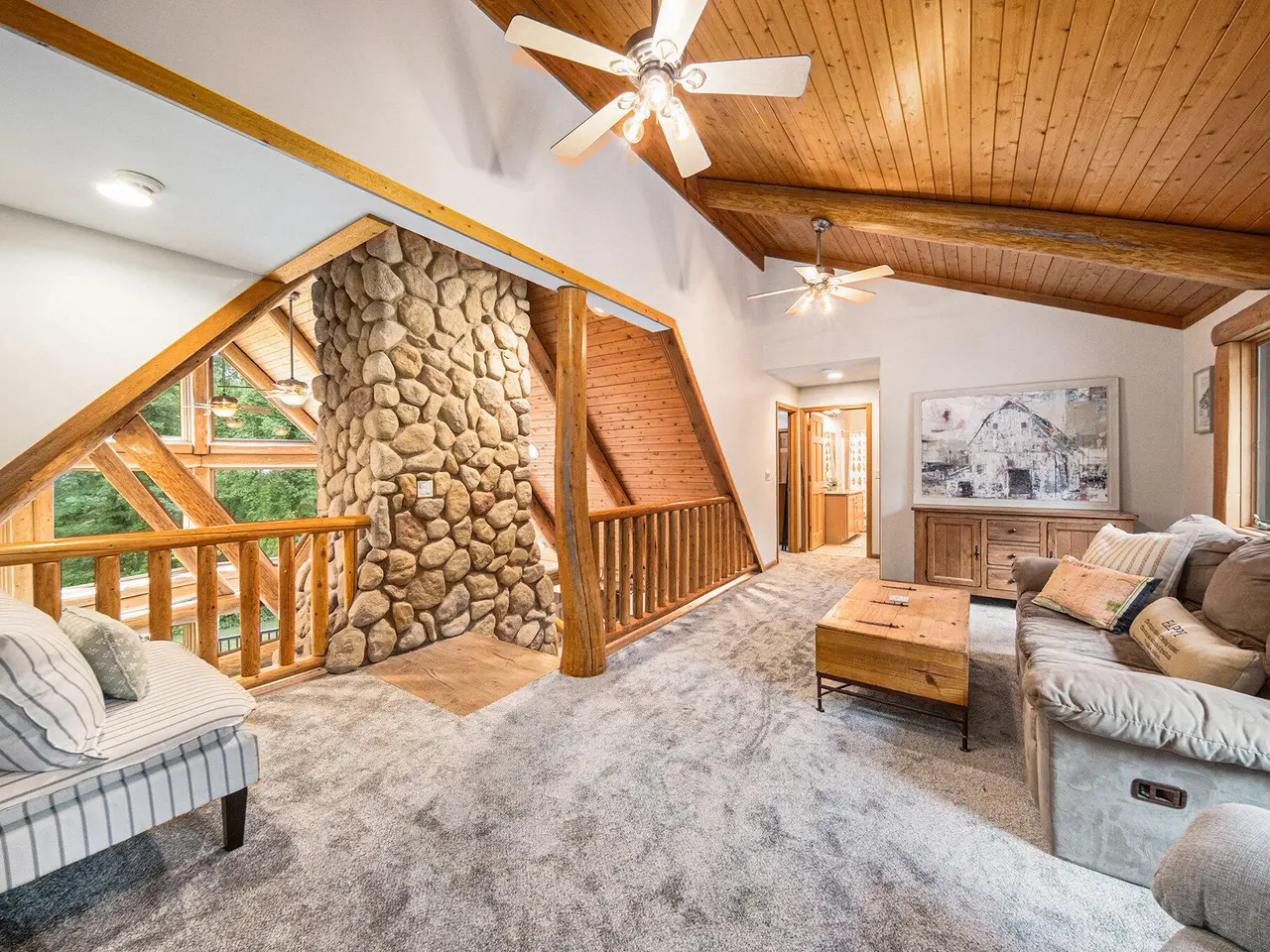 • Stone fireplace