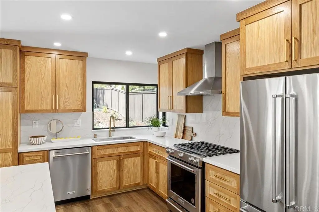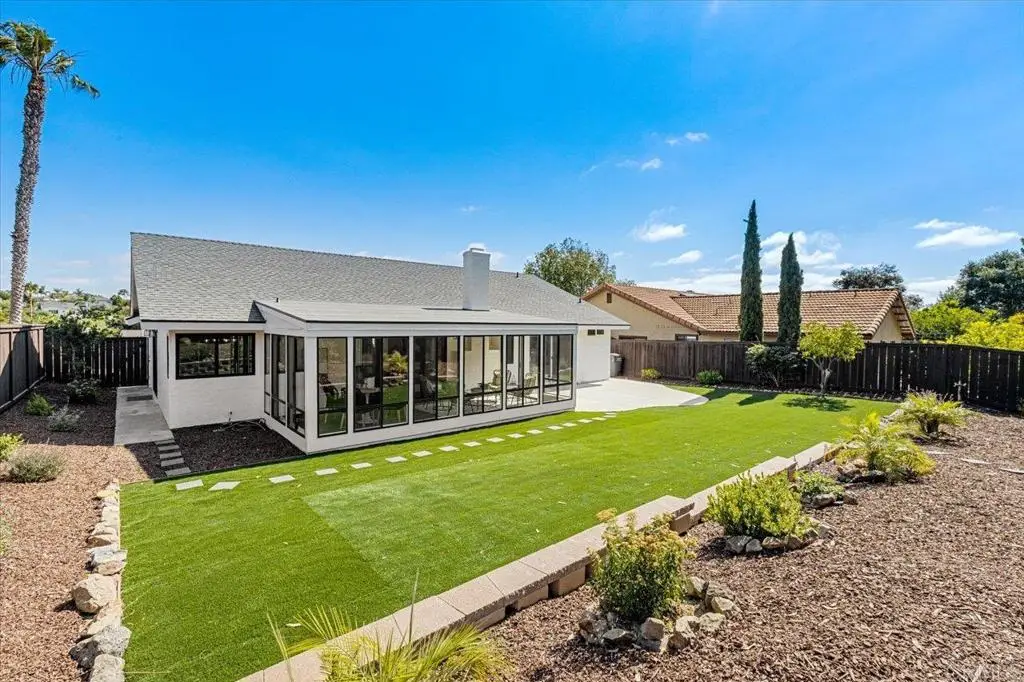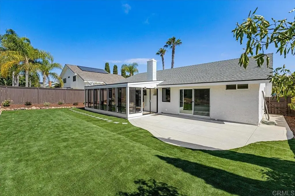 Fall in Love with This Fully Renovated La Costa Dream Home! Welcome to your forever home-a stunning single-level sanctuary nestled in one of La Costa's most desirable cul-de-sacs! This light-filled 3-bedroom, 2-bath beauty offers 1,542 sq ft of thoughtfully designed living space, plus an additional approx. 200 sq ft sunroom, perfect for a home office, playroom, creative studio, or peaceful retreat. Completely renovated from top to bottom, this home shines with fresh modern charm. From the moment you arrive, you'll notice the brand-new roof and newly painted exterior with updated siding, setting the tone for the style and quality found throughout. Inside, the open-concept layout is ideal for everyday living and effortless entertaining. The custom cabinetry and quartz countertops bring a sleek, upscale feel to the kitchen, while the cozy gas fireplace adds warmth and character to the living space. New stainless steel appliances, construction-grade windows and doors (both interior and exterior), luxury vinyl plank flooring, smooth coat walls, and designer paint choices throughout create a truly move-in-ready experience. Step outside into a generously sized backyard designed for both relaxation and fun, complete with low-maintenance artificial turf and plenty of room to add a pool, garden, or custom outdoor retreat. Ideally located within walking distance to La Costa Meadows Elementary and just minutes from The Forum, Equinox, world-class golf, beautiful beaches, and top dining and shopping, this home offers the perfect blend of comfort, convenience, and California living. This isn't just a renovation-it's a full lifestyle upgrade. Don't miss the chance to make this La Costa gem your own!