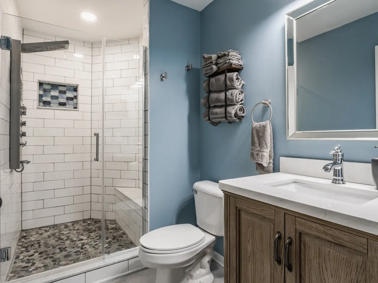 Stunning Carmel home with high-end renovations and water views! Welcome to this beautifully updated brick two-story home in the highly sought-after Carmel Clay Schools district. Designed with comfort and luxury in mind, this home blends timeless craftsmanship with modern upgrades throughout. The main level features solid oak hardwood floors and a primary suite with a completely renovated spa-like bathroom, including dual marble-topped vanities, a freestanding soaking tub, and a spacious walk-in shower. The chef's kitchen, fully renovated down to the studs in 2023, boasts custom Amish-made maple cabinetry, Quartzite countertops, a 48" commercial-grade gas range, under-cabinet lighting, and a custom butler's pantry with beverage station. A walk-in pantry provides abundant storage and organization space. Upstairs, you'll find new carpet, generous bedrooms, a large full bath, and a huge bedroom over the garage with custom built-in bunk beds (XL twins over queens) and an ensuite bathroom with walk-in shower, perfect for guests or a private retreat. The finished basement is an entertainer's dream, offering a custom home theater, 13-foot bar with dishwasher and beverage station, custom wine cellar with tasting area, game room, expansive workout room with rubber flooring & mirrored wall, 6th bedroom with egress window, and a luxury bathroom featuring a walk-in shower (with body jets). Outside, enjoy a pond lot with water views, an expansive patio with custom pergola, and an irrigation system to keep your landscaping lush. The three-car finished garage provides plenty of room for vehicles and storage. Updates include new roof & gutters (2017), upgraded attic insulation (2023), low-E glass windows, Bryant furnace/AC & whole house air filtration system, whole house water filtration system (2025), reverse osmosis system (2025), and new sump pump with backup (2025). This home offers a perfect blend of elegance, functionality & modern living all in a prime location!