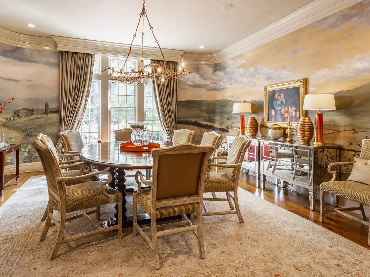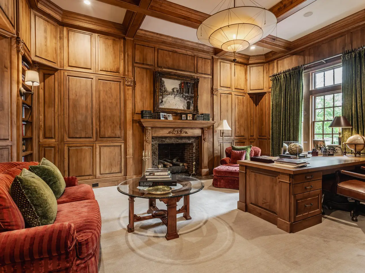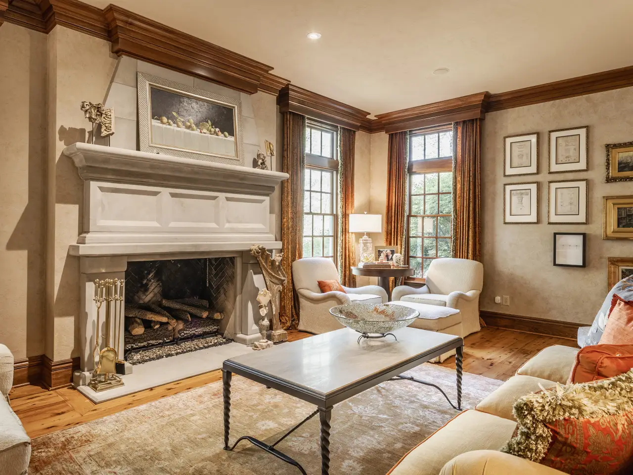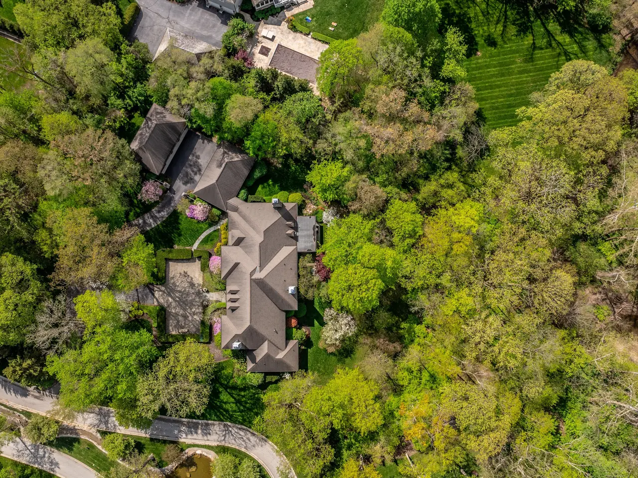 Exquisite custom-built estate on 1.84 acres of lushly landscaped grounds in the prestigious gated community of Springwood, overlooking the serene Nature Conservancy. This breathtaking home features both a 3-car attached garage and a 3-car detached garage. Inside, the grand great room welcomes you with a limestone fireplace and soaring windows that frame the park-like backyard. The formal dining room impresses with elaborate custom moldings and a hand-painted mural, while the main-level den offers a carved marble fireplace, custom built-ins, and TV niche. The main-floor primary suite is a private retreat, complete with a spa-inspired bath featuring a soaking tub, dual vanities, expansive walk-in shower, and an exceptional two-sided walk-in closet. The chef's kitchen, completely remodeled just two years ago, is a culinary masterpiece, boasting a butler's pantry, quartzite countertops, coffee bar, Wolf appliances, 6-burner gas range, built-in fridge/freezer, dual dishwashers, and additional refrigerator drawers. It flows seamlessly into the family room, featuring a limestone fireplace, custom seating, exposed truss ceiling, and stunning views of the backyard. The home also offers two washers and dryers, adding convenience to everyday living. Upstairs, discover four ensuite bedrooms, an office, and a playroom. The finished lower level offers a rec/theatre room, wine cellar, exercise room, and abundant storage. Additional highlights include an elevator and unmatched craftsmanship throughout. This one-of-a-kind estate is the epitome of sophisticated Carmel living, combining luxury, functionality, and timeless elegance.