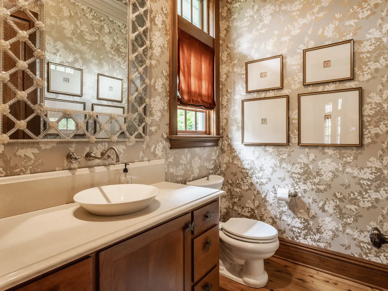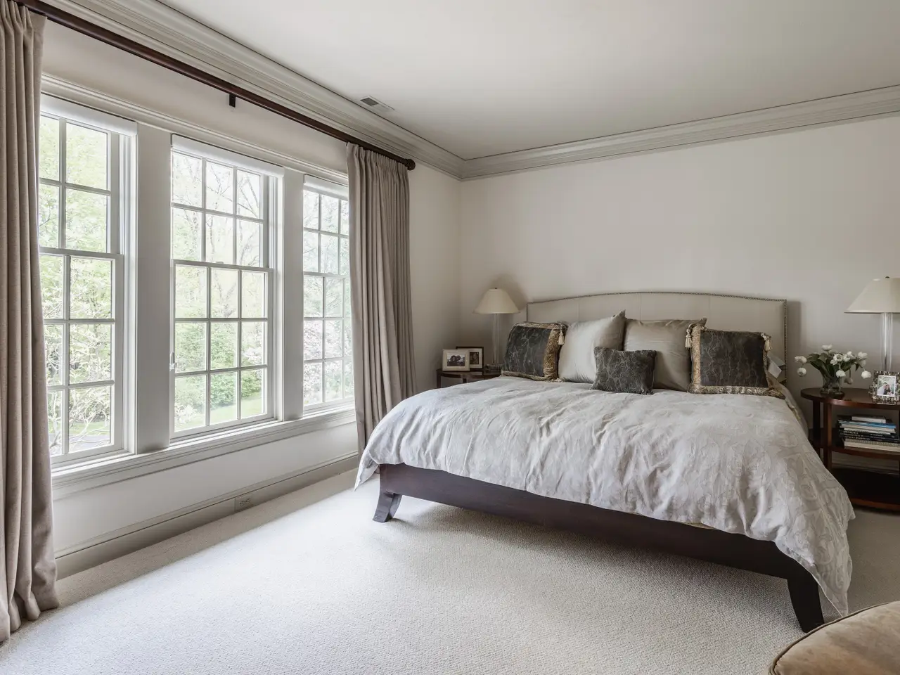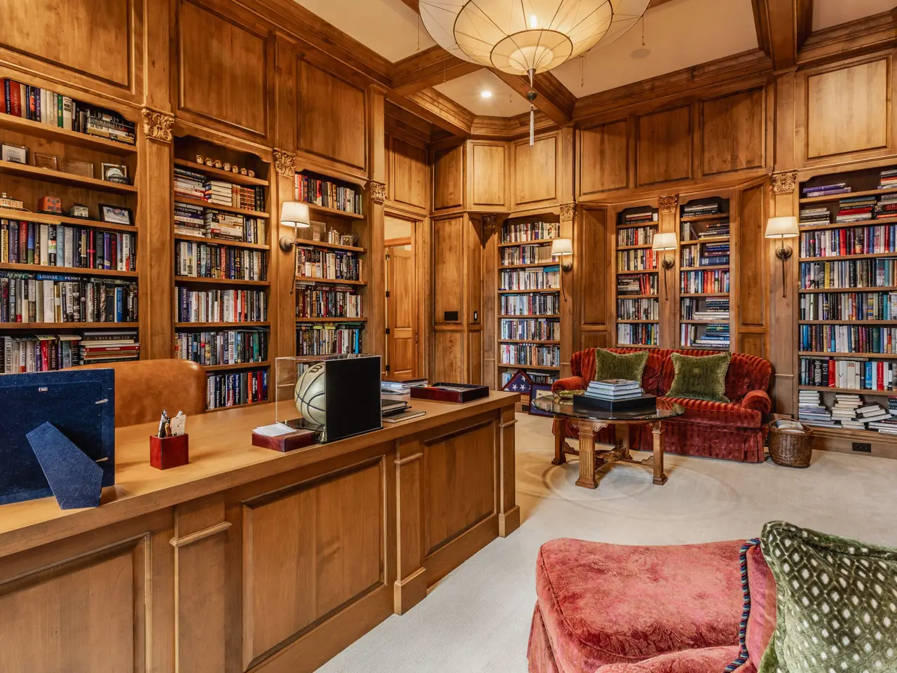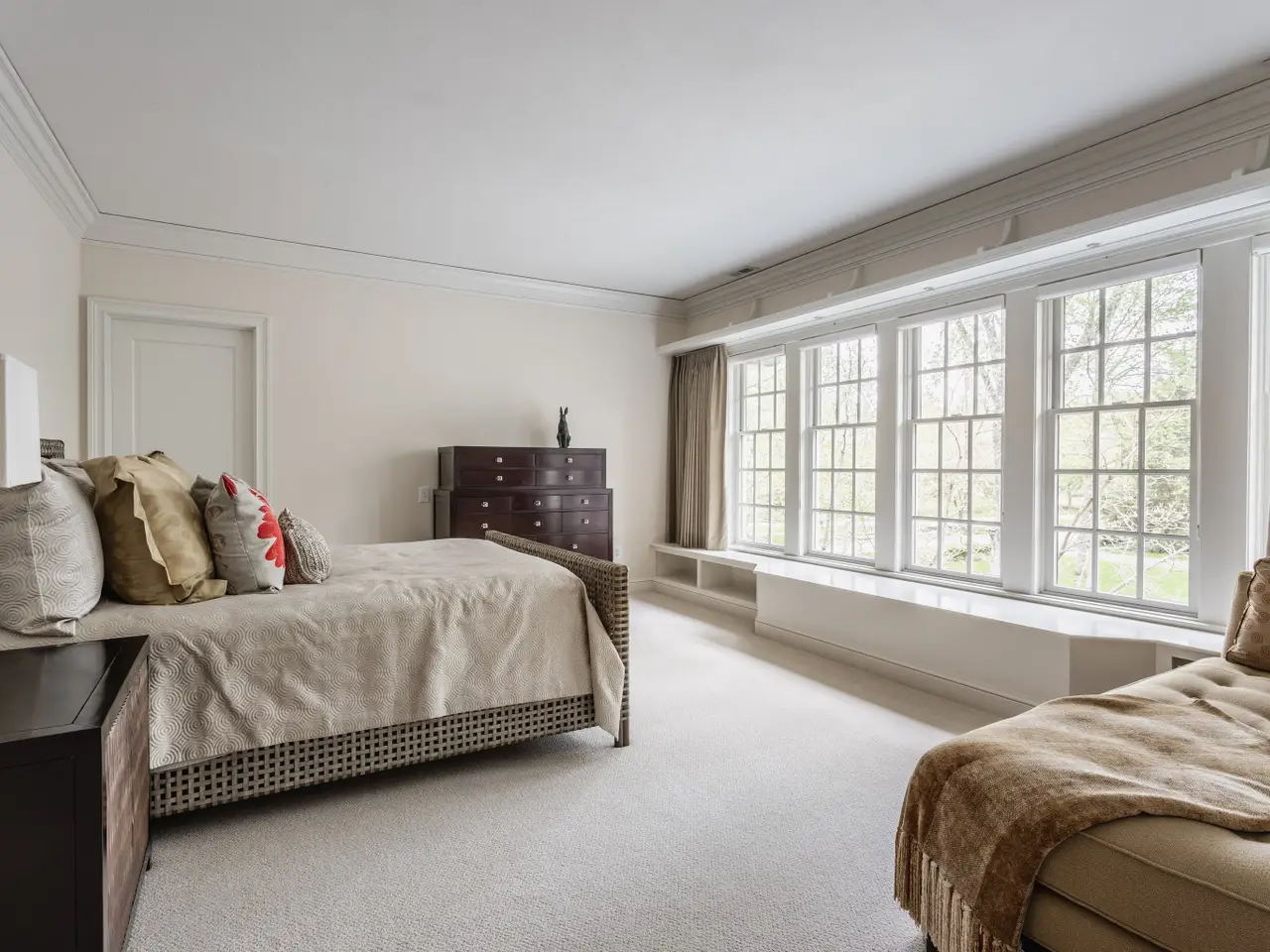 Exquisite custom-built estate on 1.84 acres of lushly landscaped grounds in the prestigious gated community of Springwood, overlooking the serene Nature Conservancy. This breathtaking home features both a 3-car attached garage and a 3-car detached garage. Inside, the grand great room welcomes you with a limestone fireplace and soaring windows that frame the park-like backyard. The formal dining room impresses with elaborate custom moldings and a hand-painted mural, while the main-level den offers a carved marble fireplace, custom built-ins, and TV niche. The main-floor primary suite is a private retreat, complete with a spa-inspired bath featuring a soaking tub, dual vanities, expansive walk-in shower, and an exceptional two-sided walk-in closet. The chef's kitchen, completely remodeled just two years ago, is a culinary masterpiece, boasting a butler's pantry, quartzite countertops, coffee bar, Wolf appliances, 6-burner gas range, built-in fridge/freezer, dual dishwashers, and additional refrigerator drawers. It flows seamlessly into the family room, featuring a limestone fireplace, custom seating, exposed truss ceiling, and stunning views of the backyard. The home also offers two washers and dryers, adding convenience to everyday living. Upstairs, discover four ensuite bedrooms, an office, and a playroom. The finished lower level offers a rec/theatre room, wine cellar, exercise room, and abundant storage. Additional highlights include an elevator and unmatched craftsmanship throughout. This one-of-a-kind estate is the epitome of sophisticated Carmel living, combining luxury, functionality, and timeless elegance.